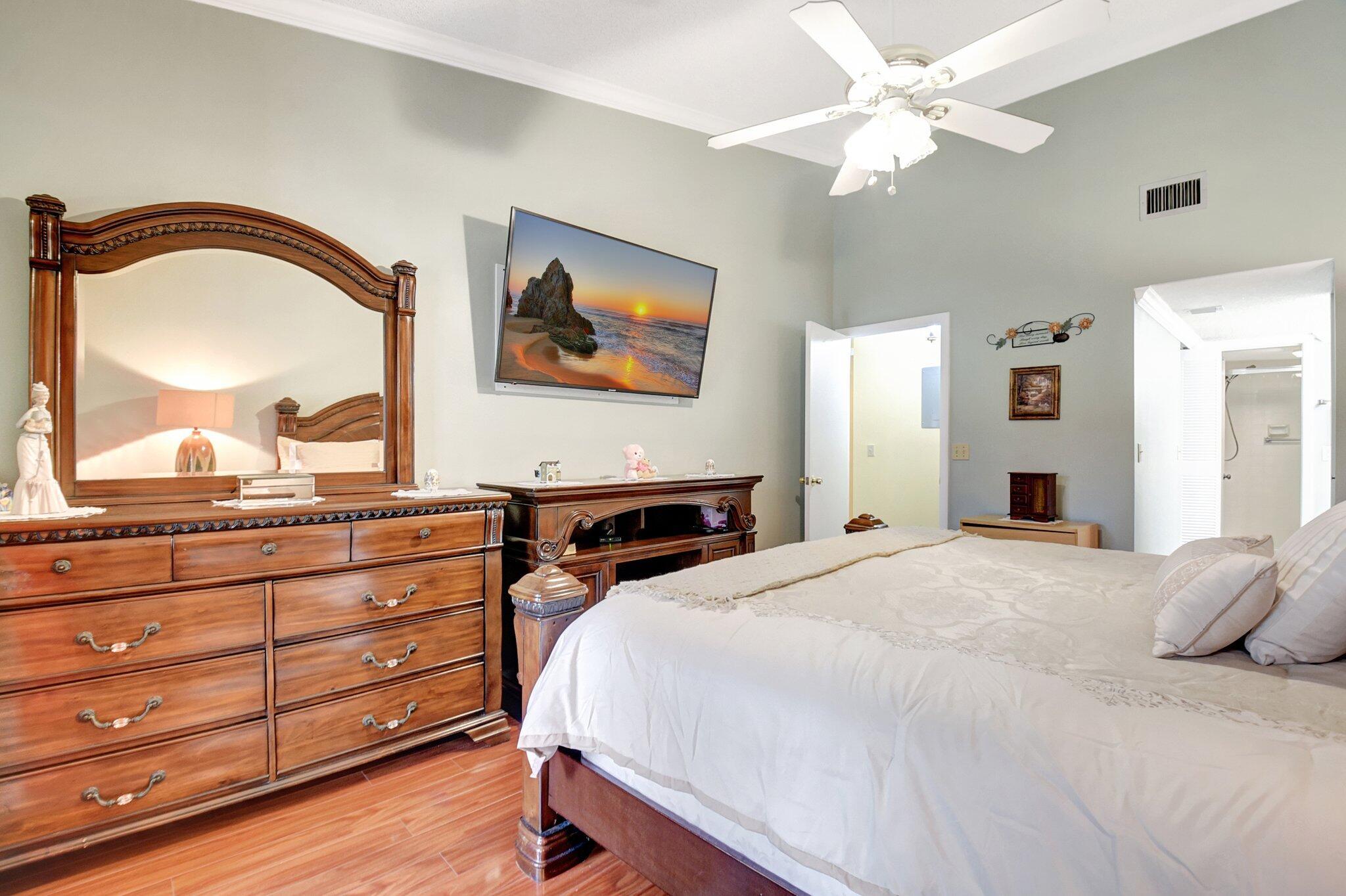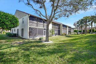 Welcome to this stunning second-floor condo in a highly sought-after 55+ community in Lake Worth! This spacious 2-bedroom, 2-bath home features an open floor plan, tall ceilings, gorgeous wood laminae floors and crown molding throughout. The eat-in kitchen is perfect for casual dining, while the screened-in lanai offers a serene spot to relax and enjoy the Florida sunshine.Both bedrooms boast walk-in closets and separate baths, providing comfort and privacy. The convenience of an new in-unit washer and dryer adds to the efficiency.Enjoy an active lifestyle with access to two clubhouses, heated pools, a fitness center, tennis, pickleball, bocce ball, shuffleboard, and more! Located just east of the Turnpike, this condo is minutes from shopping centers, restaurants, and airports making it ideal for year-round living or a seasonal retreat. The pet-friendly community offers peace of mind with an HOA fee covering water, cable, and exterior maintenance. Entry light fixture does not convey This condo is clean as a whistle and move-in ready. Don't miss out. Call today to schedule a showing!