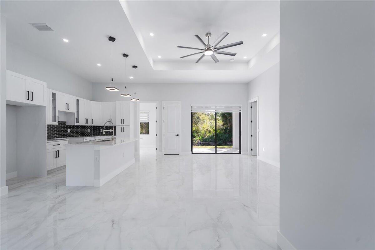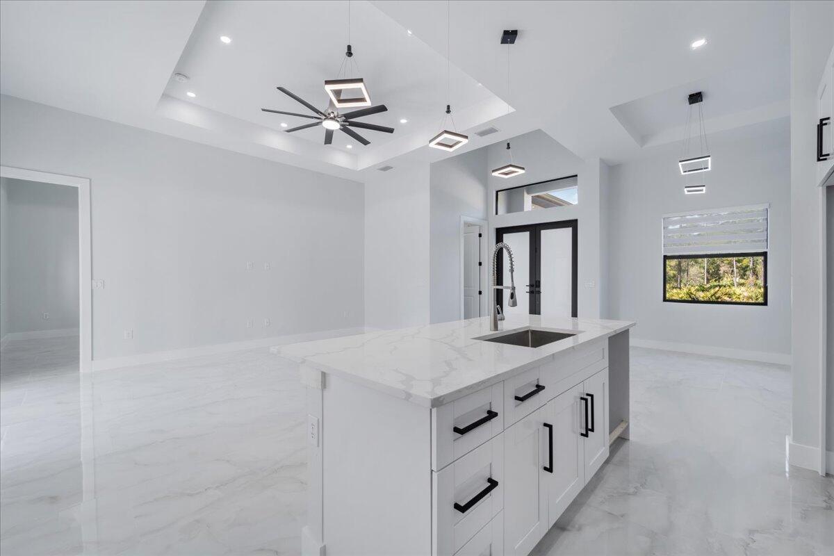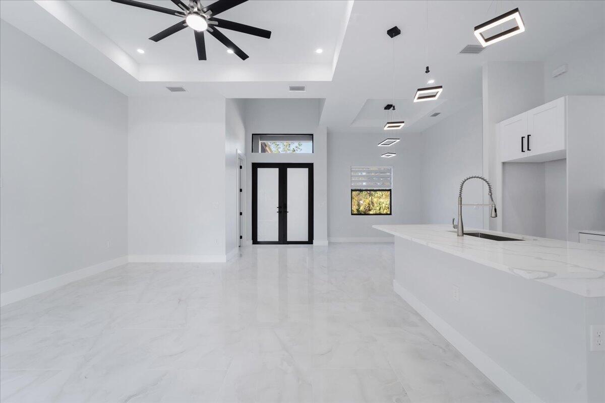 This stunning single-family home boasts 3 bedrooms, 2.5 bathrooms, and a 2-car garage, providing ample space for you and your family. The open concept living area is perfect for entertaining guests, with tile flooring, tray ceilings, and modern fixtures throughout. Impact windows and doors provide security and energy efficiency, while LED lighting and modern window blinds add a touch of elegance. The paver driveway adds curb appeal, and the large laundry room with a sink makes chores a breeze. Don't miss out on this opportunity to own a truly luxurious home in a desirable neighborhood. Make an appointment to see it today before it's gone!