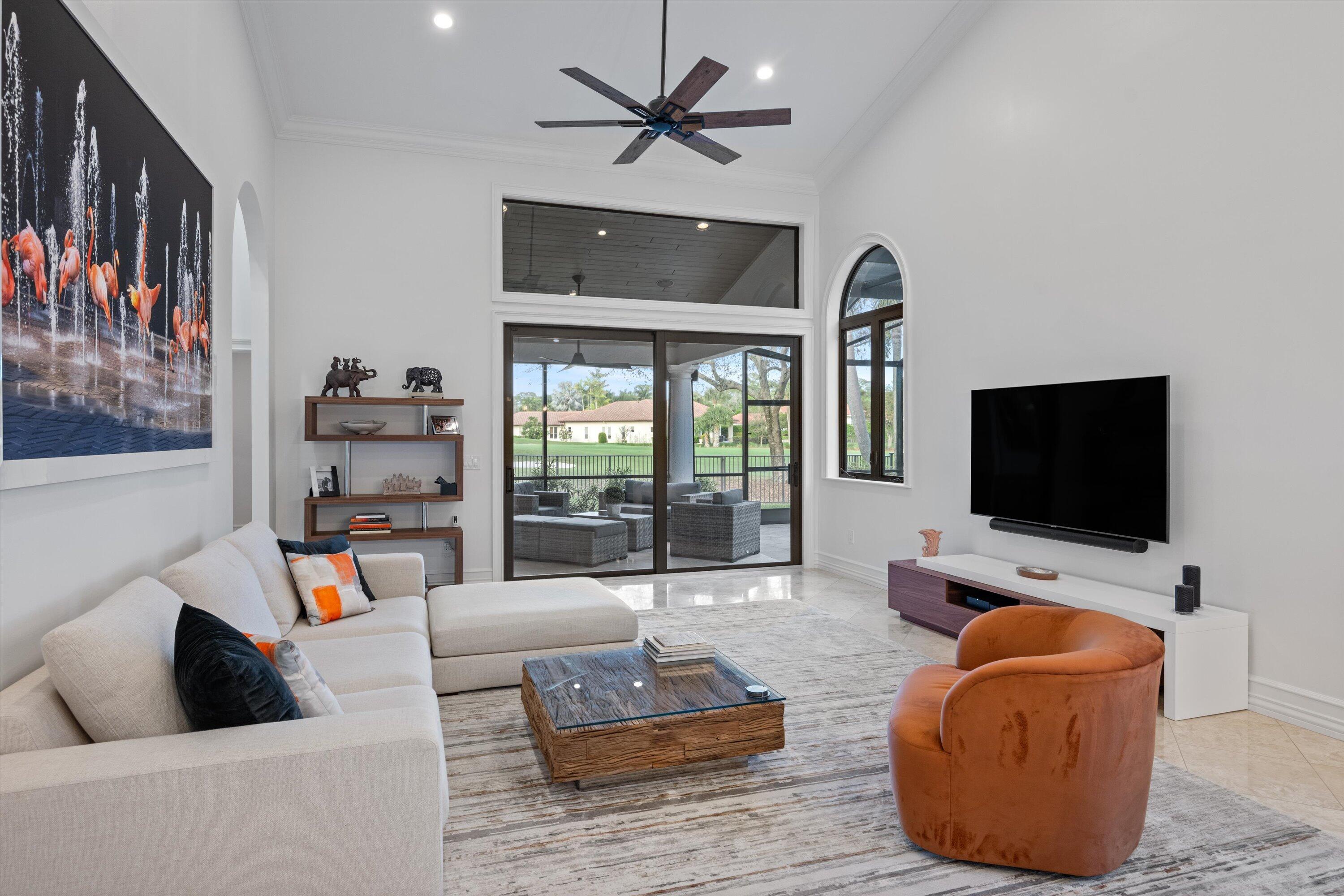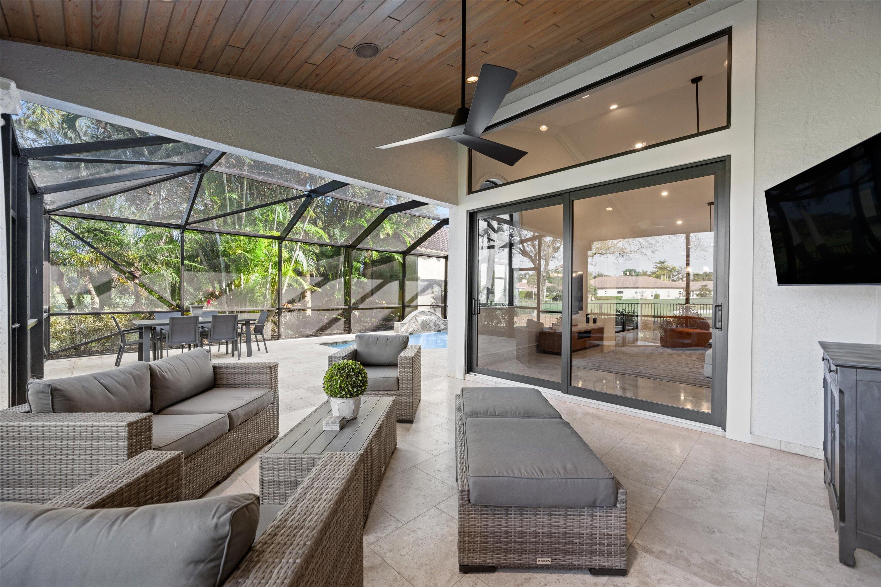 Perfect golfer's get-away! Located in the sought-after neighborhood of Fairway Villas in Breakers West, this elegant home boasts 3 Bedrooms, 3 Full Baths and 2-car garage with sweeping fairway views of Breakers West Rees Jones Course. Open Great Room floor plan has vaulted ceilings, marble flooring thru-out, solid wood custom cabinetry and granite counters in kitchen and all baths. This elevated yet comfortable home has an inviting outdoor patio with a screen enclosed heated pool/spa and marble deck; roofed loggia with wood ceiling. Additional upldates include hurricane impact windows/doors thru-out, freshly painted interior & exterior, new interior lighting, new Sonos sound system and new landscaping highlighted by new landscape lighting. The pool has been updated with new equipmentand new pool heater in 2024. Roof replaced in 2009 and AC replaced 2023. Conveniently located near all Breakers West Club amenities--golf, tennis, pool, gym and club dining. Breakers West is unique because club memberships are not mandatory; however, club memberships for golf or sport/social are available if you choose to join at either Breakers West (which includes use of The Breakers Resort golf, tennis and beach beach amenities in summer months) or at the Mayacoo Lakes CC.