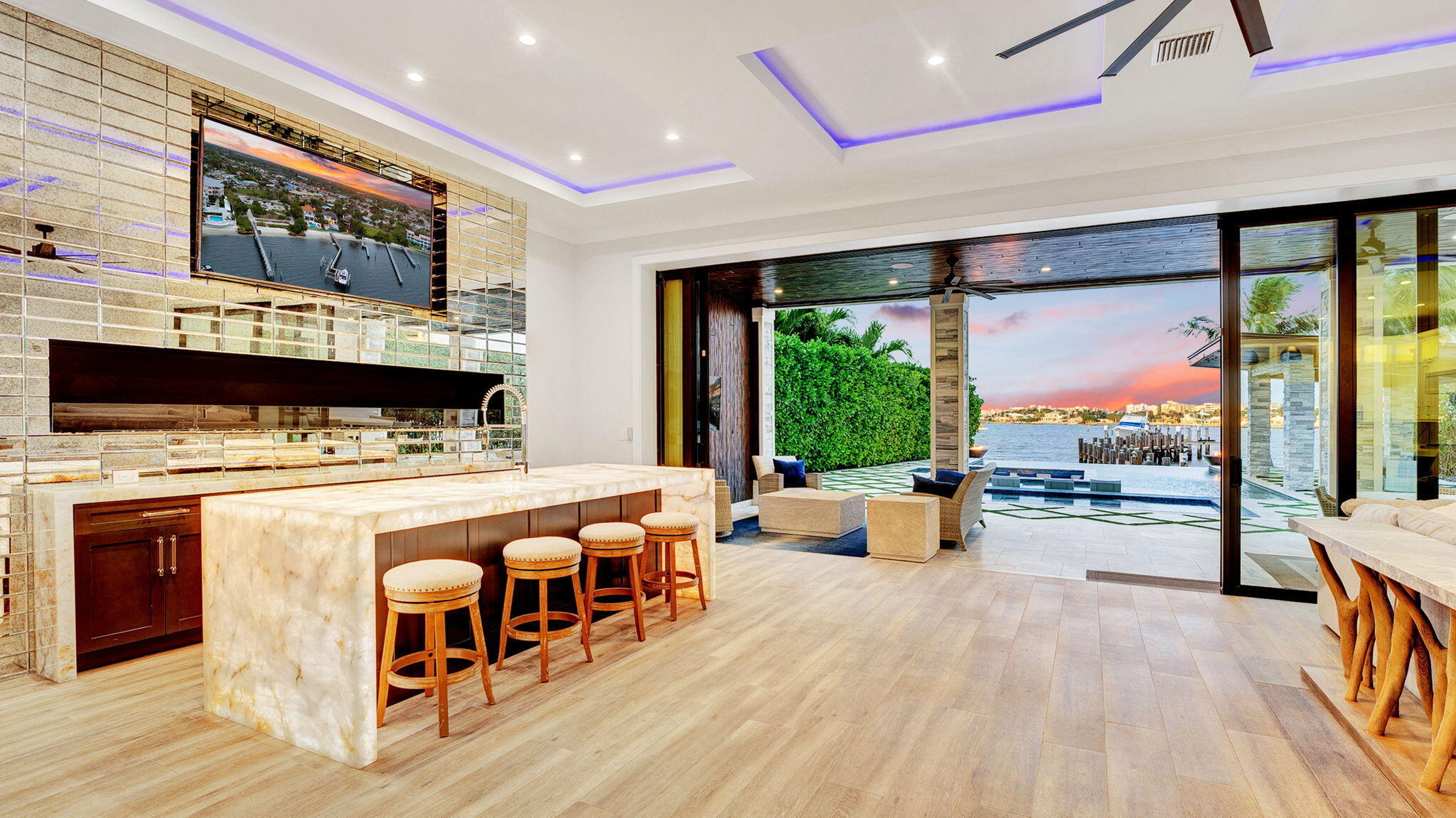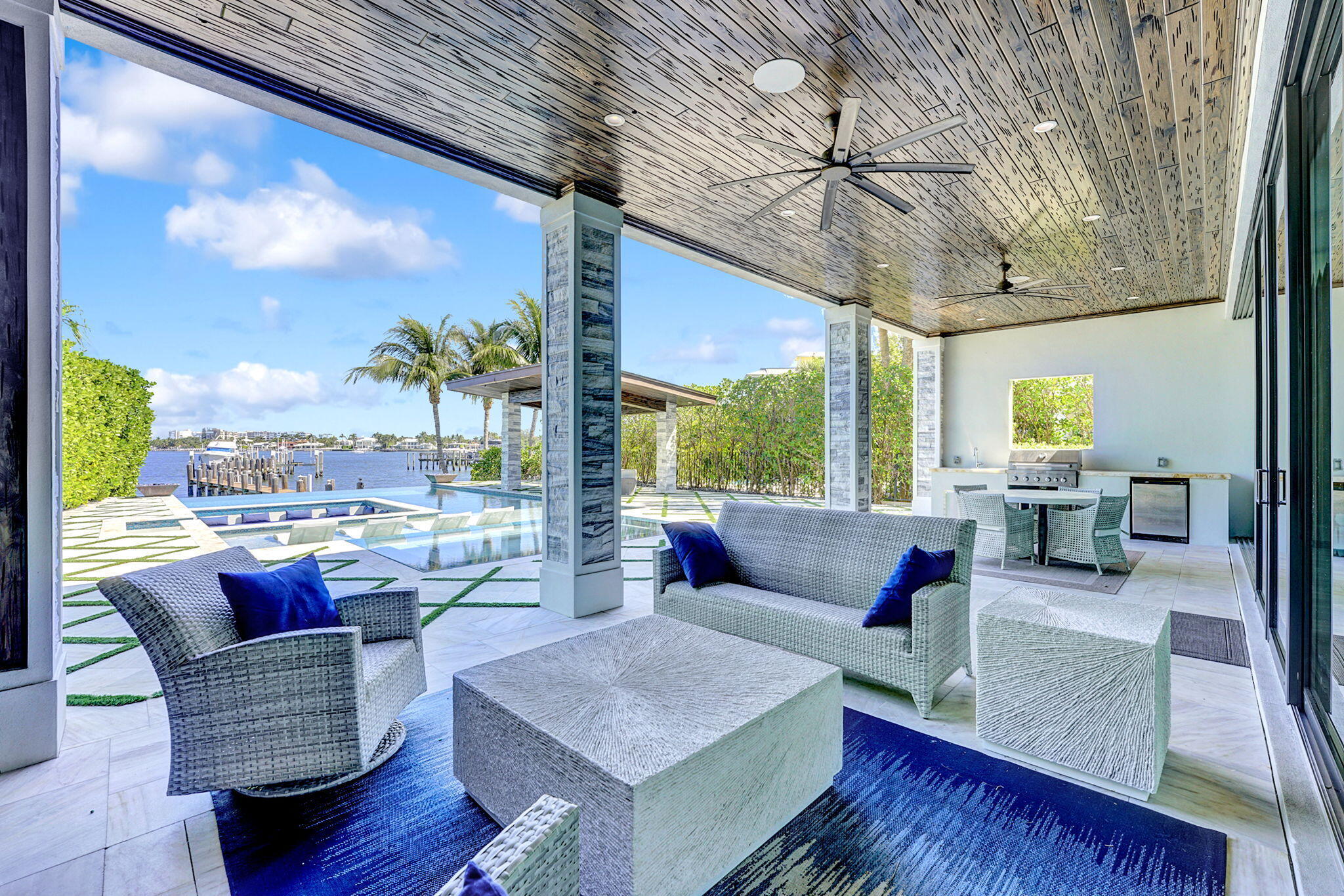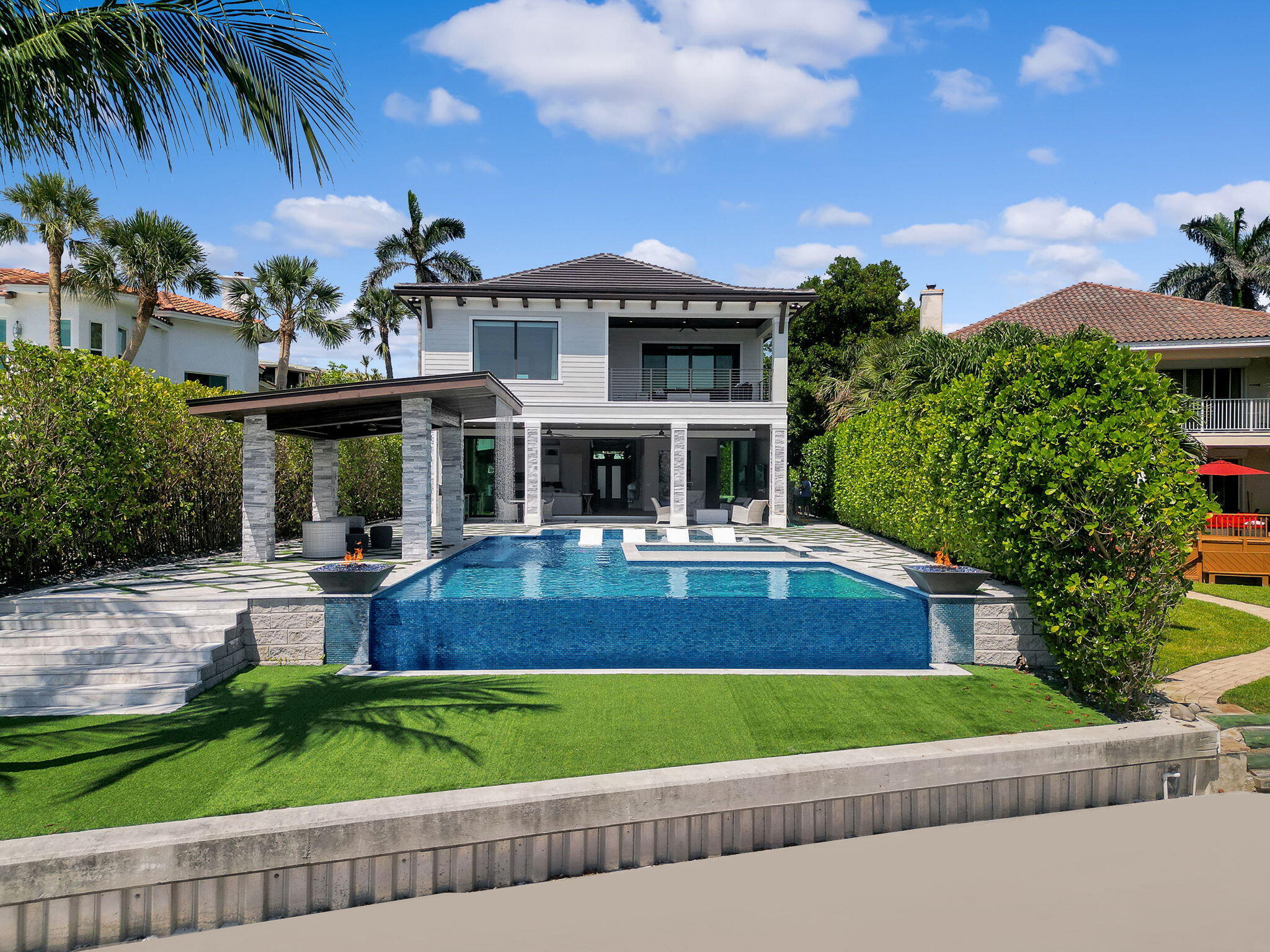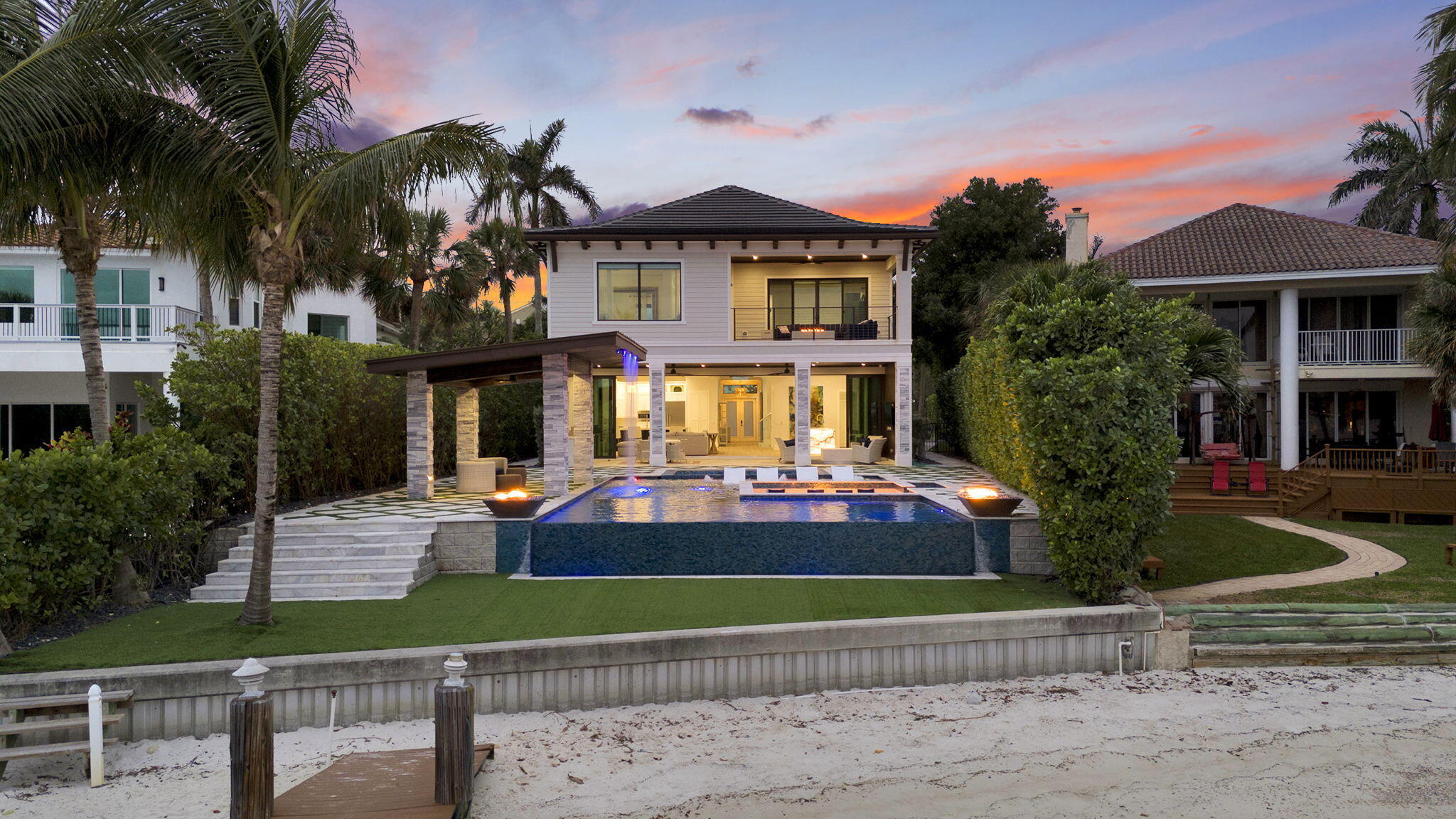 Luxury Waterfront Oasis - An Entertainer's Dream HomeExperience the pinnacle of coastal luxury in this magnificent five-bedroom, five-bathroom estate, perfectly positioned along the Intracoastal Waterway with breathtaking views of the ocean and Palm Beach Island. Designed for those who appreciate impeccable craftsmanship and top-tier amenities, this home offers the ultimate entertainer's paradise.Unrivaled Outdoor LivingInfinity-edge pool & spa overlooking the IntracoastalSunken fire pit with built-in seating for intimate waterfront gatheringsPrivate sandy beach--your own personal waterfront escapeCustom waterfall feature enhancing the tropical ambiancePrivate boat dock with 25,000-lb boat lift, perfect for yacht enthusiastsBuilt to Endure & Impress " Solid CBS construction with poured concrete floors between levels " Impact-resistant windows & doors for ultimate storm protection " Soaring ceilings and expansive glass doors maximize natural light and water views Refined Interiors & Smart Home Integration " Chef's kitchen featuring high-end appliances and custom cabinetry " Luxurious master suite with spa-like bath and private balcony " High-end finishes throughout, blending modern sophistication with timeless elegance " Private elevator for seamless access between floors " Complete home automation systemcontrol lighting, security, pool, and spa from your phone Prime Location " 10 minutes to Palm Beach & world-class shopping, dining, and cultural attractions " 15 minutes to Delray Beach, known for its vibrant downtown and pristine beaches With its unparalleled waterfront setting, superior construction, and resort-style amenities, this home is truly a one-of-a-kind retreat for those seeking the best in luxury, privacy, and entertainment. Schedule your private showing today and step into the coastal lifestyle of your dreams!