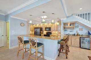 Renovated waterfront townhome with dock access - 2470 Harbour Cove Drive, Hutchinson IslandThis 3-bedroom, 2.5-bathroom, 2-car garage townhome offers breathtaking views of the Intracoastal Waterway and has been completely renovated. Upgrades include a new roof, impact glass throughout, and hurricane-rated doors and garage doors for peace of mind.The open-concept living space features a gourmet kitchen with custom hickory wood cabinetry, granite countertops, and stainless steel appliances. The spacious dining area is surrounded by large windows with plantation shutters, allowing for natural light and serene water views. A wet bar with built-in shelving adds to the home's functionality, perfect for entertaining.The primary suite offers a private balcony with expansive water views, an en-suite bath with a walk-in shower, dual vanities, and a soaking tub. The additional bedrooms are generously sized, featuring large windows, ceiling fans, and ample closet space. The updated bathrooms include hickory cabinetry, granite countertops, and tiled walk-in showers. Outdoor living is a highlight of this home, with a spacious screened-in porch overlooking the water, perfect for relaxing or dining al fresco. The attached garage provides ample storage, while the community dock offers easy water access. Located just minutes from pristine beaches, dining, and shopping, this home is a perfect blend of luxury and convenience. Schedule your private showing today!