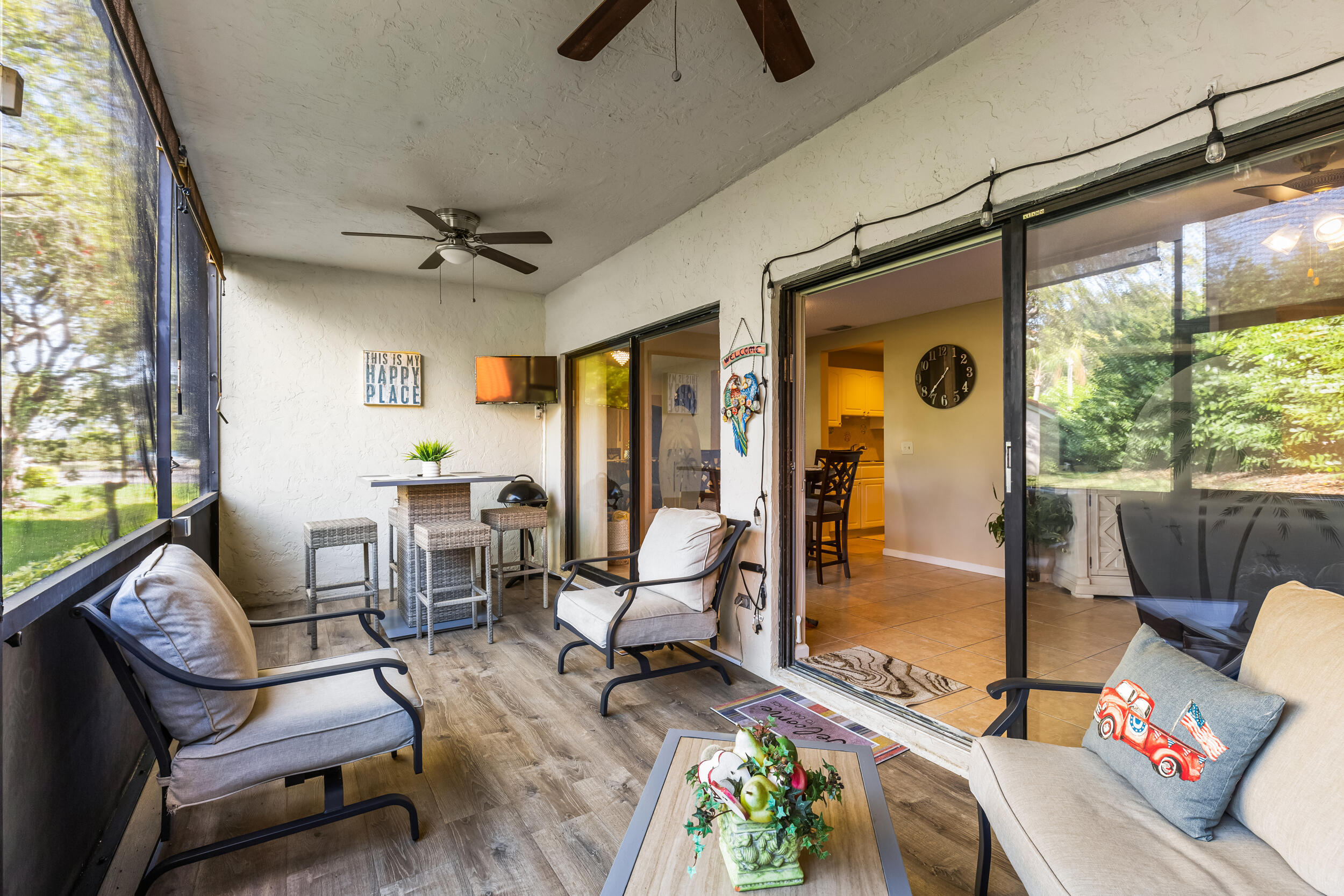 Welcome to this charming first-floor condo located in the highly sought-after PGA National! This home features an updated kitchen with stainless steel appliances, granite countertops, a stylish backsplash, and a beautiful island perfect for entertaining. Beautiful porcelain tile flows throughout, and the one-car attached garage with storage area. A private entrance leads into an open dining/living area, and the two bedrooms are split for privacy. Enjoy the screened-in, covered patio for outdoor relaxation. Community pool is located only a few steps away from the house.Maintenance fees include all building maintenance including the roof, landscaping, insurance, water/sewer, and cable. As a resident,you'll have access to optional club amenities, including tennis, golf, pool, restaurants, and a world-class spa. The Lexington subdivision also boasts its own private pool. Just a short walk to serene parks, trails, and the community pool. PGA Park is right next door, with major highways offering easy access to the airport and all of South Florida's attractions. Club membership is available but not required. Only 20 minutes to Palm Beach International Airport, 10 minutes to The Gardens Mall, and 15 minutes to the beach. Make prestigious PGA National your home today!