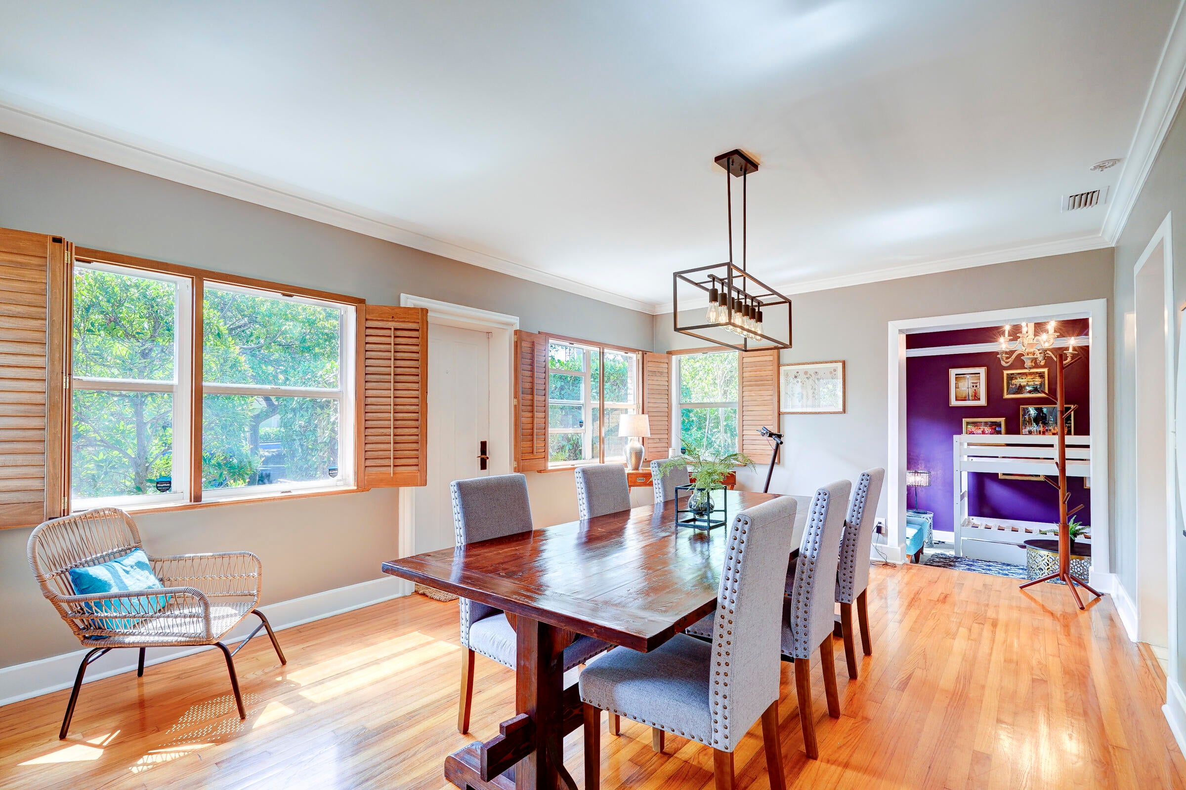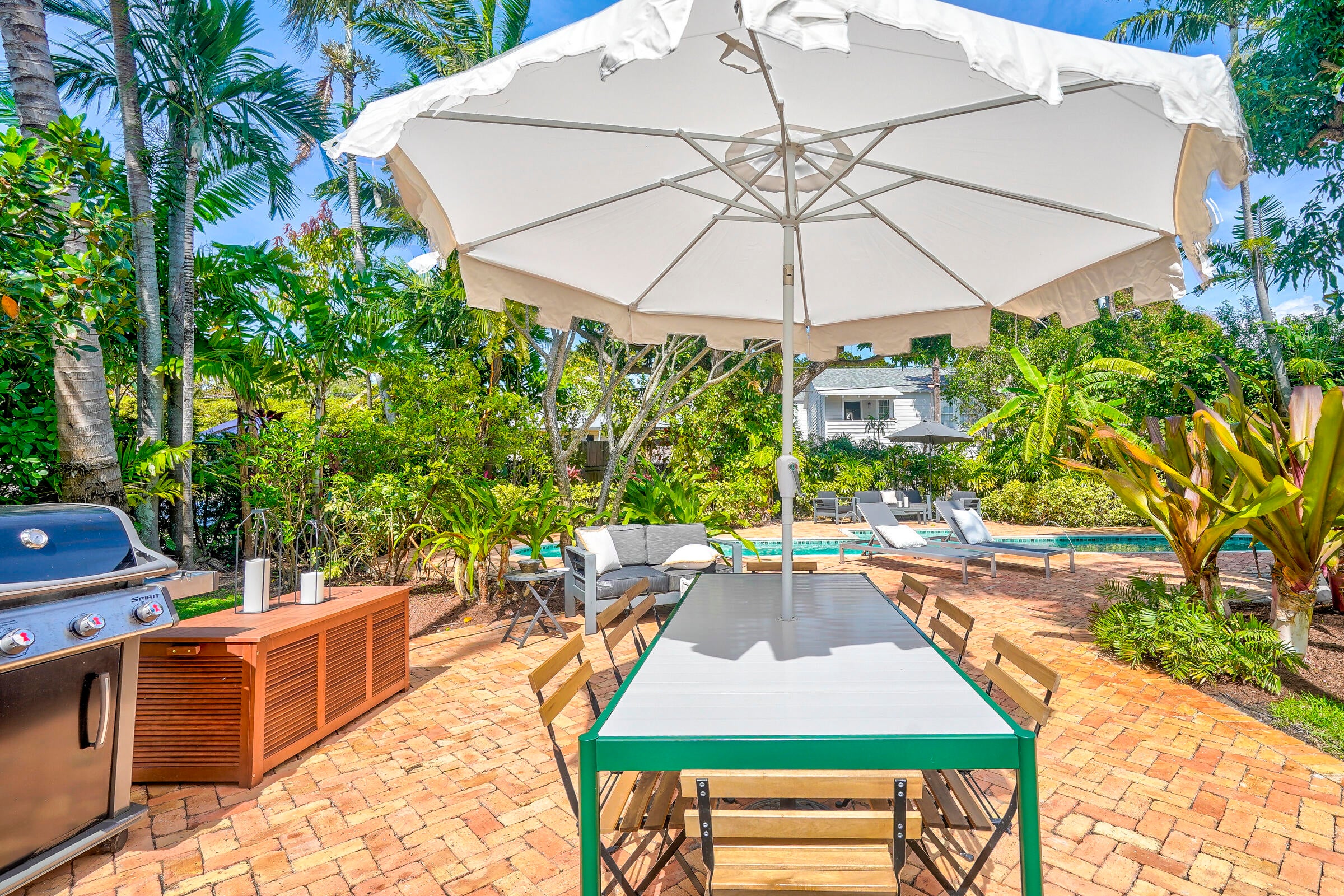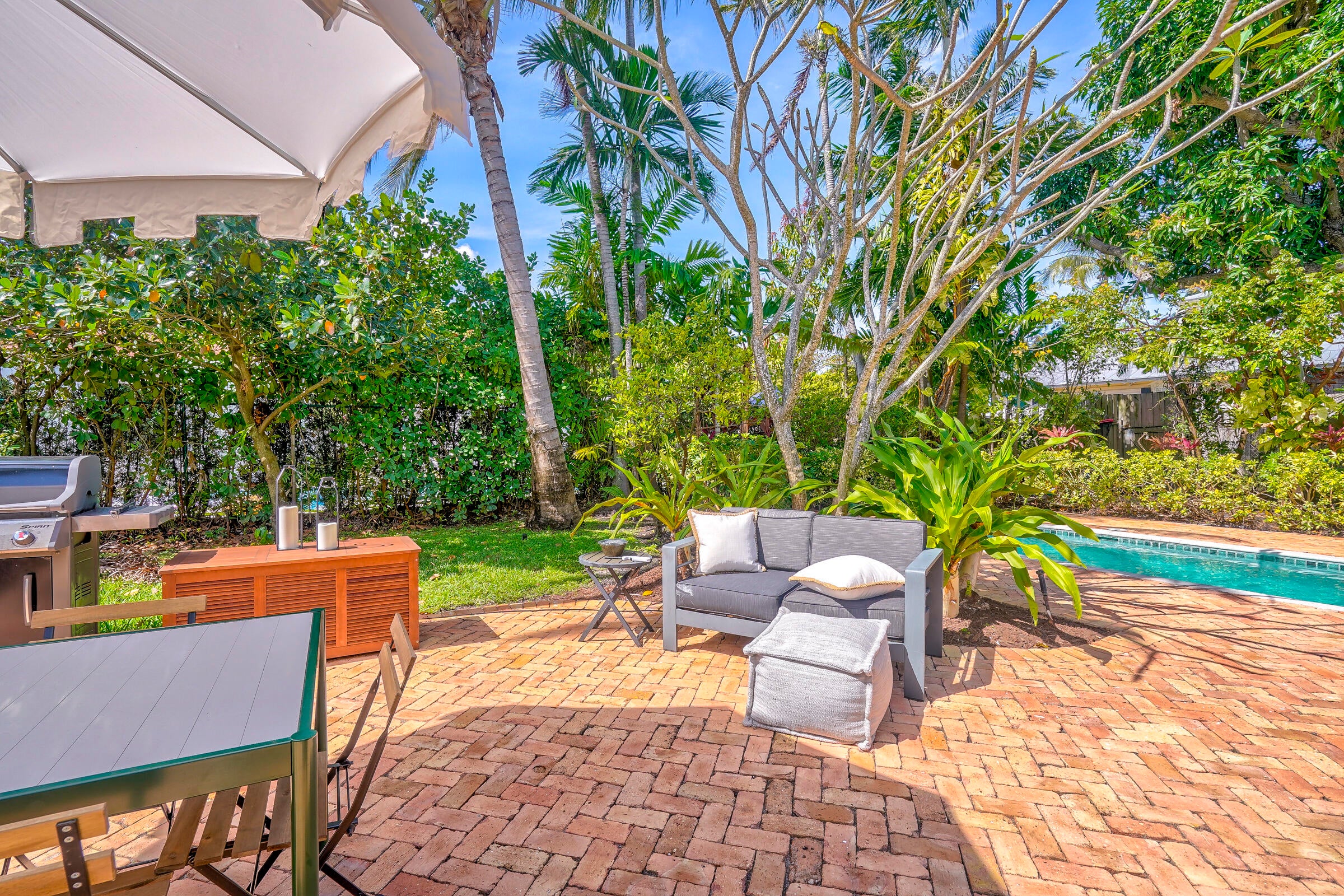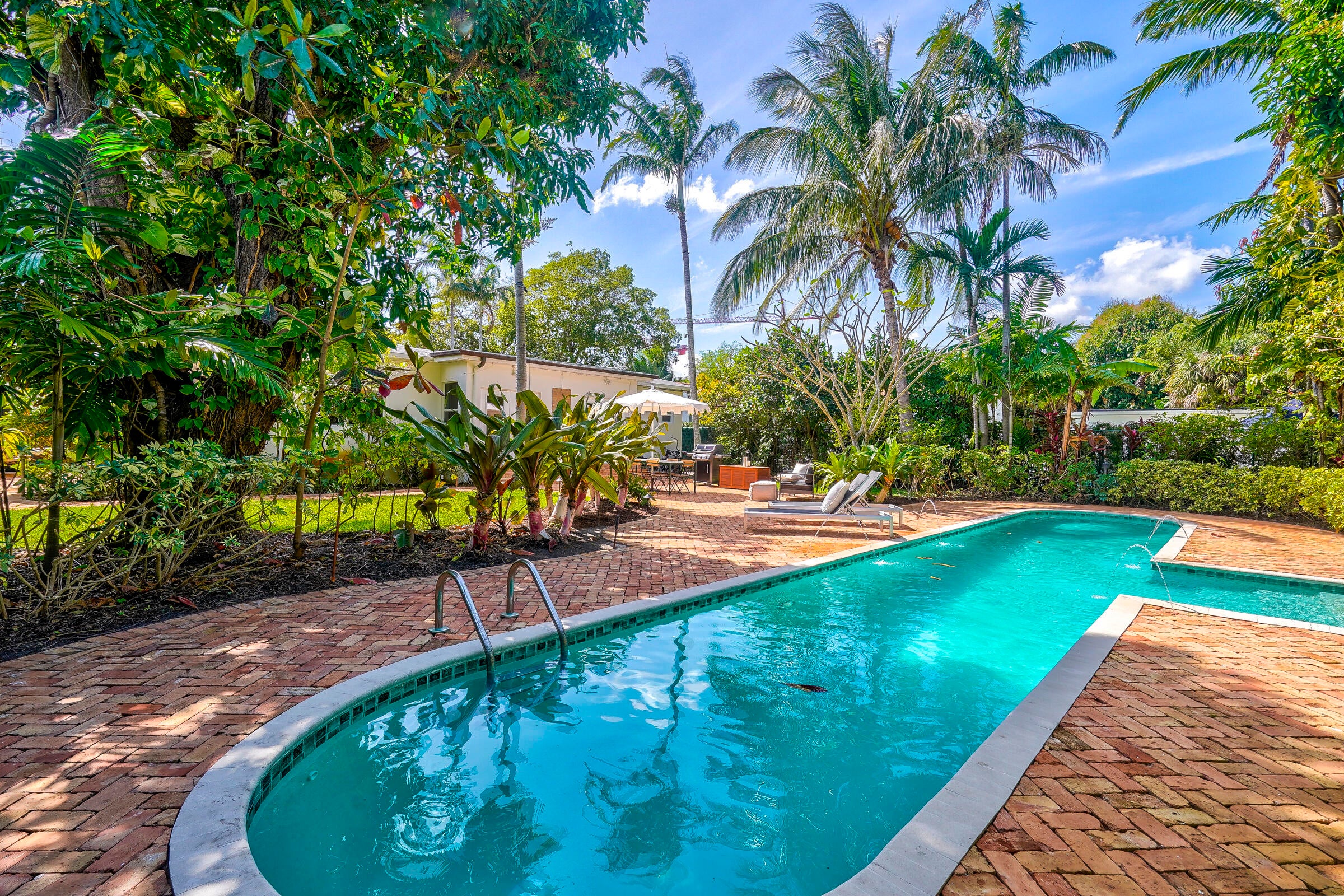 Furnished! Move-in ready in this tropical oasis in Northwood. Charming house that is much larger than appears with beautiful garden backyard and pool. Less than 5 minutes from Downtown West Palm.Key Features:Bedrooms and Bathrooms: This spacious home boasts three generously sized bedrooms, each featuring an en-suite bathroom for ultimate privacy and convenience. Additionally, there's a versatile den that can easily serve as a fourth bedroom or home office, complemented by a half bath accessible from the pool area.Interior: Step inside to discover a thoughtfully designed floor plan with a four-way split layout, ensuring ample space and privacy for all occupants. Annual Rent $6,950 per month. Short term Rental $8,750 Per month