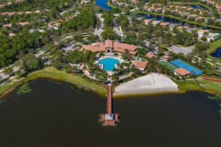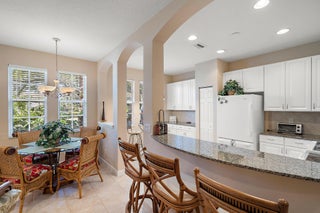 Stunning lakeview townhouse on extra large corner lot with master on first floor. Beautifully furnished & accessorized townhome available for Season 2026 beginning November 2025! Furbaby Friendly! Spacious eat-in kitchen w/ granite countertops, high-end appliances, and a breakfast bar. Tile throughout living areas. This is an exceptional corner unit with expansive lake views. Gorgeous front porch sitting area to look at the lake across the street while enjoying favorite beverage.. Evergrene is popular for it's active 12,0000 sq. ft. clubhouse, large resort-style pool & water park, tiki bar that serves food and beverages, exercise and fitness facilities, teen & children play areas, basketball, bocce ball, putting green, and beach volleyball.