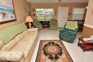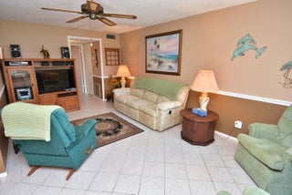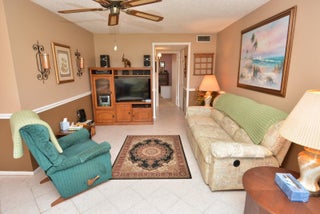 Outstanding Opportunity for this 55+ condo with a new price for a new year! This first floor one bedroom, corner location with one and a half baths is waiting for you to make it your own! The oversized bedroom features a full wall of closets and private full ensuite with step-in shower. Then step out to your Florida room with floor-to-ceiling windows for relaxing and enjoying the beautiful view of the lake and fountain. Also has a walk-in closet for extra storage. Updated features include flooring throughout, both bathrooms have updates, fully updated kitchen and appliances, A/C and HWH too. This is an Active 55+ community in the Stuart/Jensen Beach area. Adjacent to North River Shores public golf course. Convenient location close to Treasure Coast Mall, restaurants, entertainment, etc. TThis is a beautiful, well-maintained community with lush landscape, walking paths, lakes, pool, clubhouse, library and so much more. No trucks, motorcycles or commercial vehicles. Must own for 2 years before renting.