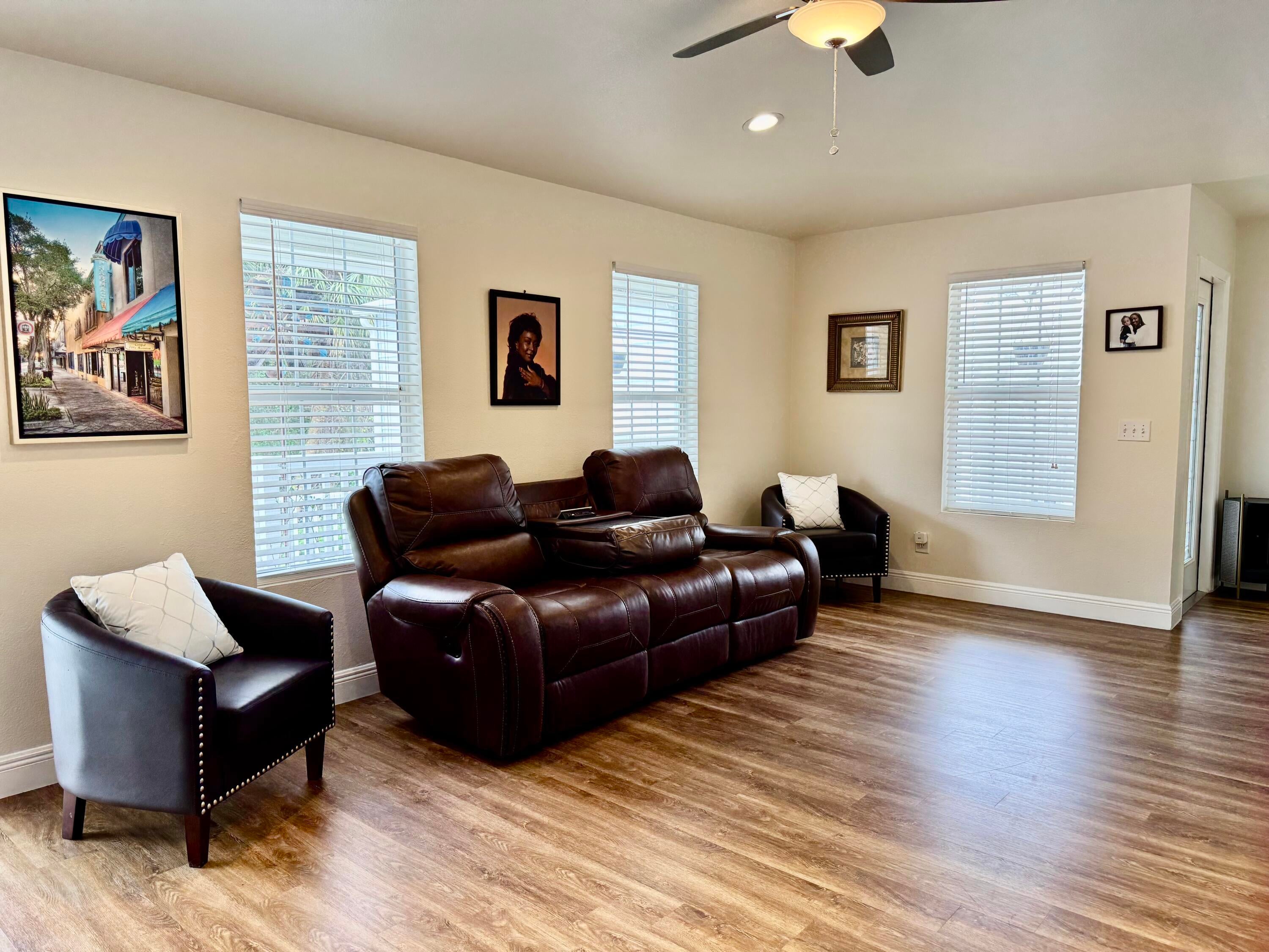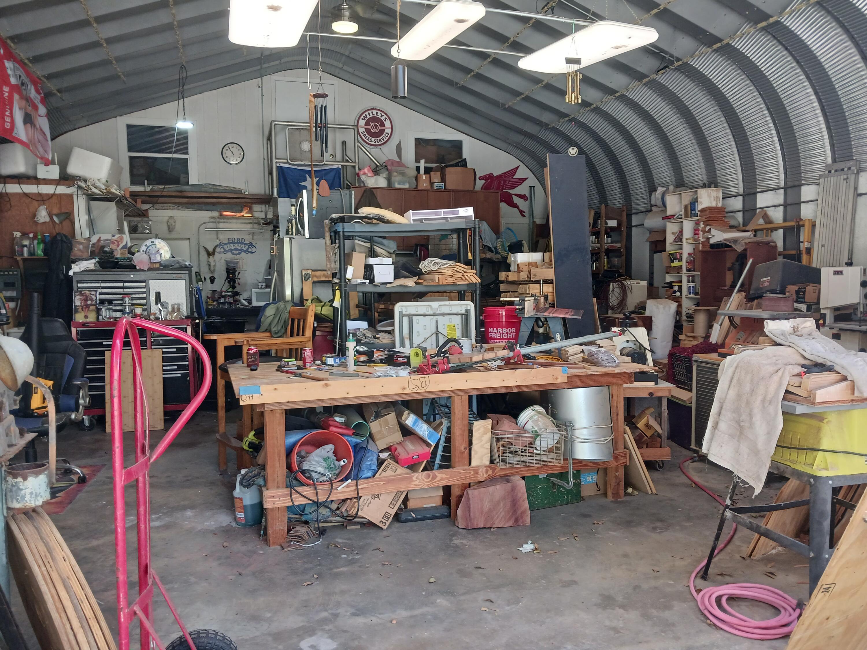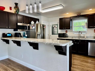 THIS HOME has it ALL! Grand front entry. Beautiful 2006 -2 Bd/ 2 Ba home, plus an efficiency apt. In the detached 48x30 metal building and a 16x29 up stairs room. Also a 20x20 detached garage w/ AC. Home is open concept with lovely entry room. Freshly painted interior-polished to perfection! Kitchen has bkfast bar, two pantries and newer SS appliances. Spacious tiered party deck with fire pit in back fenced yard. Polished landscaping with concrete curbing. 2020 AC, 2023 metal roof and gutters. EXCEPTIONAL! Dreams do come TRUE!Dimensions are approximate, must measure for exact