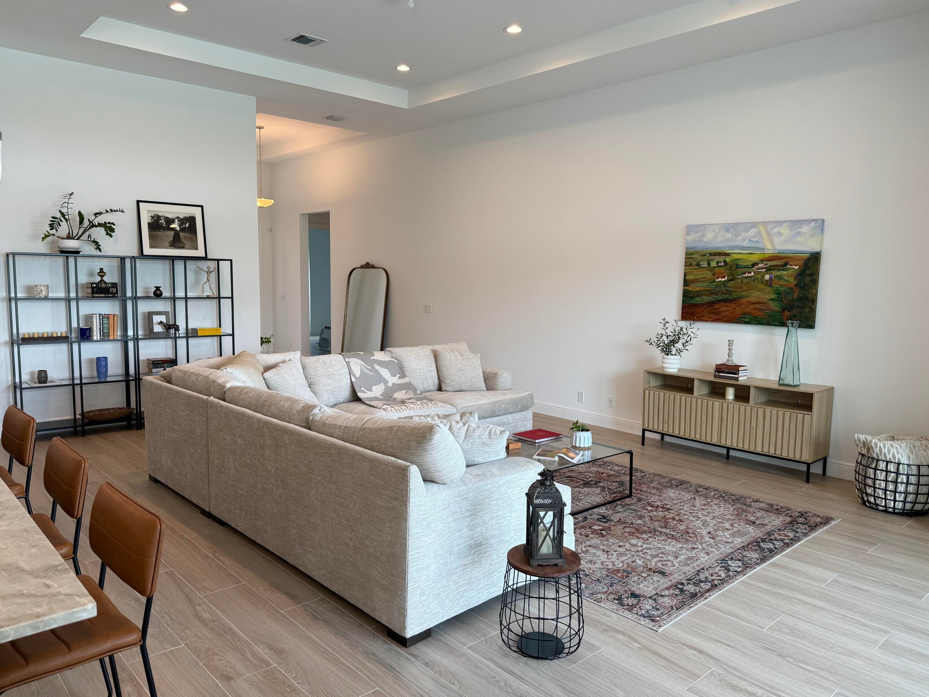 Welcome to this incredible opportunity to purchase a BRAND NEW HOME WITH OUT all the waiting time for a new build. Move in ready and NEVER LIVED IN 4 bedroom 3 full bath with on beautiful lot with BREATHTAKING long Lake views in the exclusive community of REGENCY AT AVENIR. GATED 55 plus neighborhood with an incredible private clubhouse offering a lifestyle dreams are made of. Resort style amenities including golf simulator, fitness center, pickle ball, tennis, firepit, card rooms, and art room all in a tropical resort setting. The Salerno model offers an open floor plan featuring a gorgeous kitchen with huge center island, dining nook, beautiful primary suite, inviting foyer and side load garage. Custom pool and patio overlooking lake with long unobstructed view