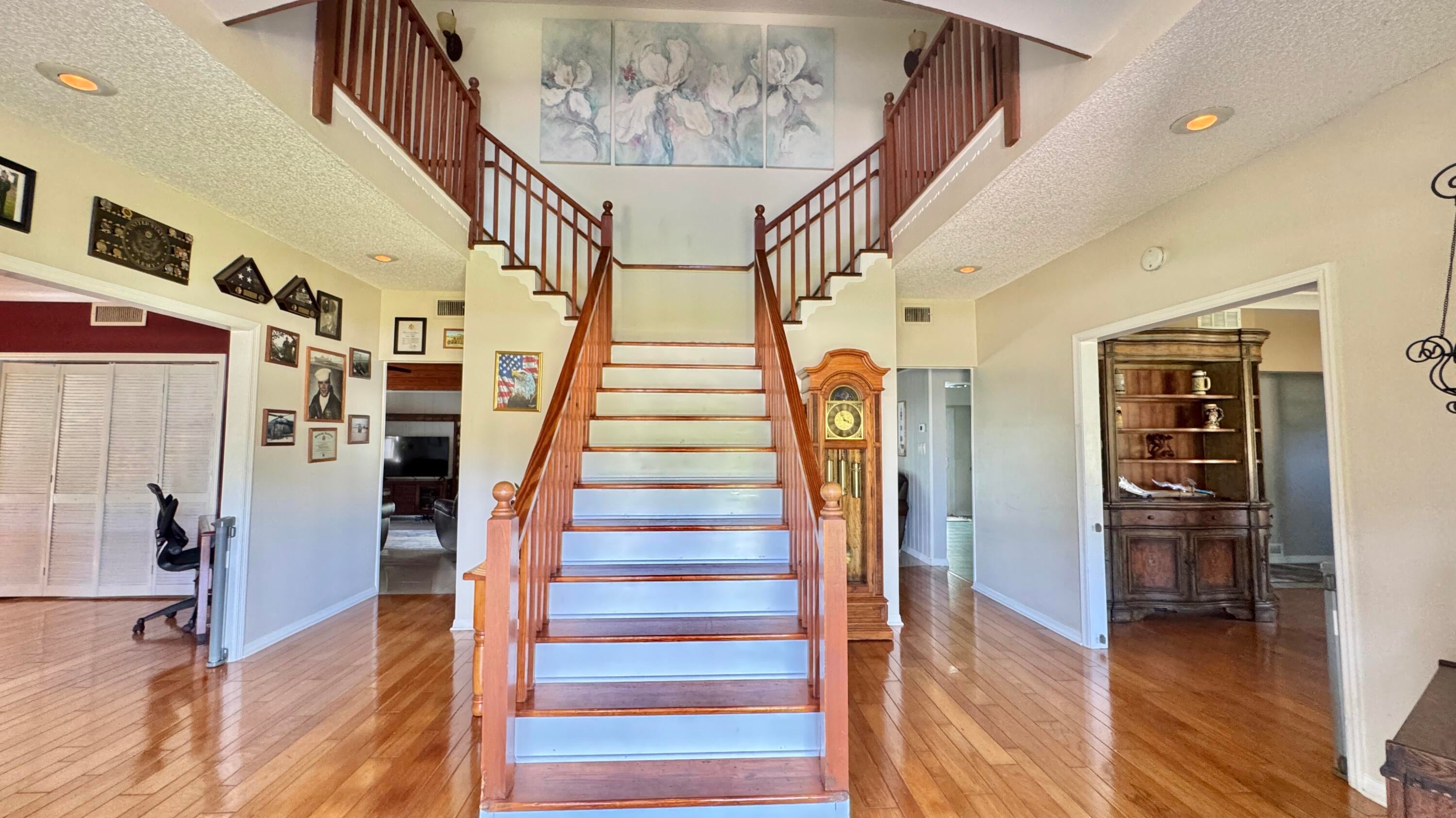 Where Timeless Charm Meets Modern Comfort!Discover this captivating Colonial farmhouse on nearly an acre of fenced land, offering the perfect blend of country warmth and refined elegance. The first floor features a welcoming country kitchen, formal dining room, billiards room, and living room with a wood-burning fireplace. Upstairs boasts two master suites--one with a stunning walk-in closet--plus two additional bedrooms and an indoor balcony retreat. Enjoy a screened patio, heated pool, and guest-ready bonus room, all designed for year-round entertaining. This is more than a home--it's a private sanctuary.