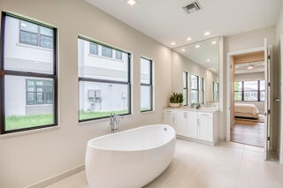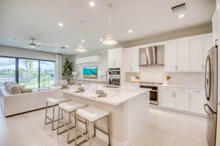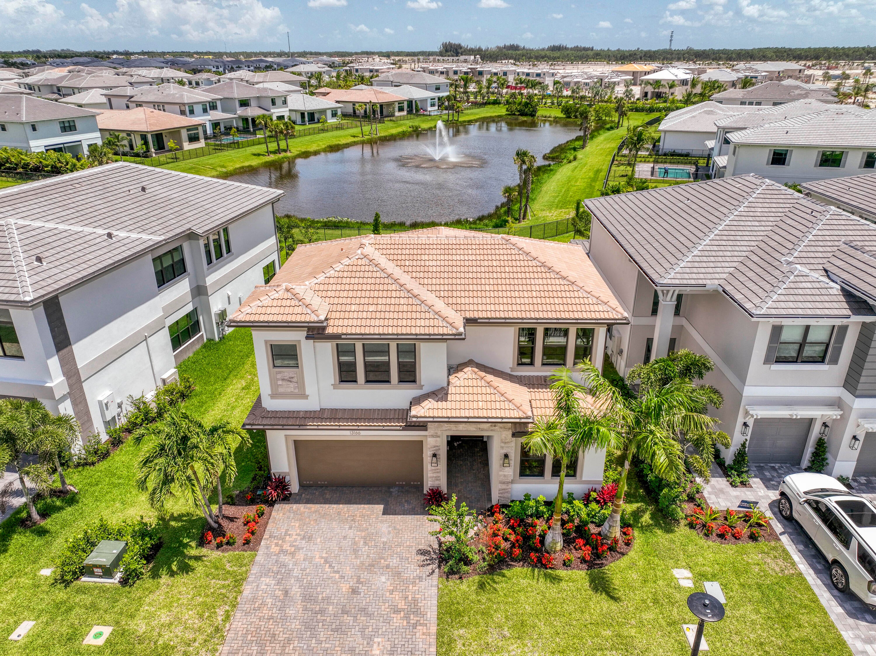 Luxury living in the new resort-style community of Apex at Avenir. Highly desired Pegasus model from award winning builder GL Homes. Located on a premium lakefront homesite, this two-story floor plan offers 4 bedrooms (primary bedroom on the 1st floor), 4 full baths PLUS a loft, a 2 car garage. Absolutely stunning finishes run throughout the home including hardwood & porcelain tile flooring, quartz countertops, and upgraded solid wood cabinetry. Live comfortably in this energy efficient home with CBS construction, impact glass windows, and natural gas. Entertain friends and family in the open concept great room with volume ceilings and large sliding glass doors offering lovely views of the lake. The gourmet kitchen is the heart of the home and features a large quartz centerisland, stainless steel appliances, wall oven, gas cooktop. The primary retreat is on the first floor along with one full bath, and an additional bedroom. Upstairs is a large loft area and 2 bedrooms & 2 baths. One of the bedrooms has an en-suite bath. Rest peacefully in the primary boasting a tray ceiling and 2 spacious walk-in closets. Luxuriate in the spa-like primary bath with dual vanities, a soaking tub, and a walk-in shower. Relish the sunsets and lake views from the spacious covered patio. The resident-exclusive clubhouse and amenities will include an exceptional lifestyle for all ages with a recreational site spanning more than 13 acres boasting a spectacular resort-style swimming pool with waterfalls and spa, an expansive pool deck with seating areas, poolside bar, poolside cabanas and pavilions, and a multiple lane lap pool. Serve up a few games on the 9 tennis or 12 pickleball courts or enjoy fun times with the little ones at the tot lot or the kids zone/splash pad. Work up a sweat at the fitness center with a group fitness studio and find relaxation and zen in the massage rooms and sauna. There will be a teen center and indoor sports complex. Grab a meal with friends and neighbors at the restaurant & bar. The card salon will be a fun gathering place as well. This all-inclusive resort style community has a vibrant social scene with something for everyone. Also planned for Avenir is a Town Center with restaurants & shops, a 20 acre working garden/farm and a dog park. The convenient location offers access to arts & entertainment, beaches, nature preserves and parks, walking & bike trails, dining, shopping and golf. Live your best life here! Photos are of a model home. Expected delivery of the home April/May 2025.
