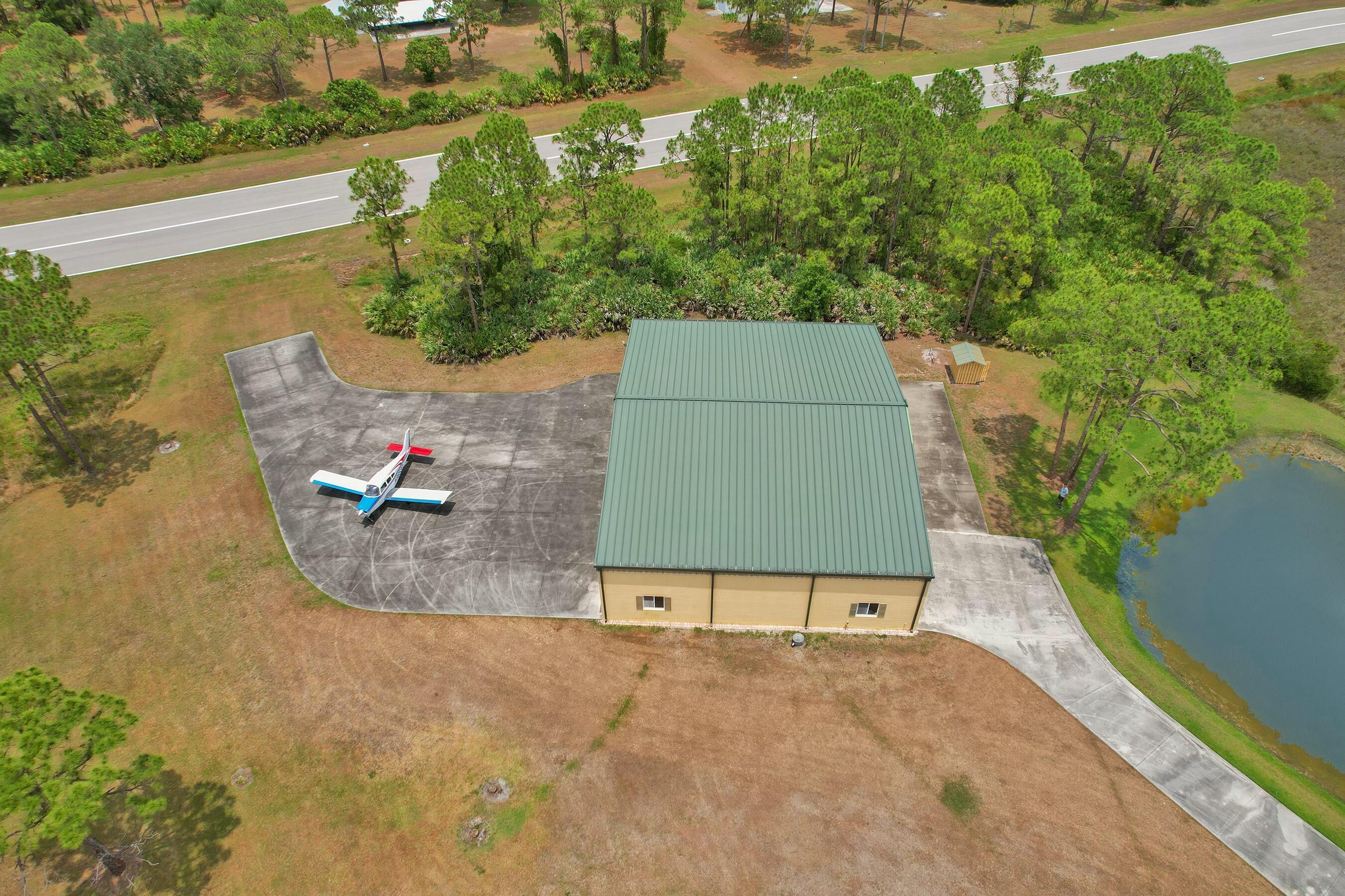 Welcome to an extraordinary aviation estate at 15350 Skyking Dr, located in the prestigious Treasure Coast Airpark (FL37) in Port Saint Lucie, FL. This remarkable property offers aviation enthusiasts direct access to a 4,067' x 48' paved and lighted runway (10-28), perfectly situated halfway down the runway for unparalleled views of aircraft taking off and landing. Property Highlights: Residence: - Spacious Living: 4 bedrooms and 3 baths, plus an outdoor cabana bath with a toilet and shower. - Expansive Grounds: 14.65 acres across 2 lots, providing ample privacy and room for outdoor activities. - Gourmet Kitchen: Featuring Slate countertops from Maine, a Miele oven, and an expansive walk-in pantry with abundant storage.- Elegant Interiors: Australian cypress floors on the main level and recessed lighting in both the downstairs and upstairs master suites. - Luxurious Bathrooms: Downstairs and upstairs master baths with rain head, body spray, hand shower, and a waterfall bathtub. - Storage Solutions: Air-conditioned attic with 4 inches of insulation, offering extensive storage space, plus multiple large hidden storage areas throughout the house. - Efficient Water Heating: On-demand hot water for a small bathroom and dual 50-gallon hot water heaters controlled by phone. - Dual Master Suites: Master bedrooms located on both floors, each with identical, luxurious bathrooms. Modern HVAC: 3 AC units, all replaced within the last 3 years. Modern Convenience: Central vacuum system throughout the home. - Dependable Water Supply: Two wells, each 110 feet deep. Emergency Readiness: Equipped with a fire hose, nozzle, and a propane whole-house generator (Onan RS 200000) with a recently replaced battery. - Reliable Energy: Interconnected 250 & 500 gallon propane gas submerged tanks which powers whole house generator, pool & spa heater and stove. - Security Features: Integrated alarm system with the garage. - Ample Parking: Attached 3-car garage with a full attic and easy access stairs. - Safety Measures: Hurricane screens for added protection. - Outdoor Living: Heated hot tub and pool powered by propane in a large screened-in patio perfect for entertaining. - Convenient Outlets: Floor outlets in the living room and office for easy access to power. Hangar: Dimensions: 4,800' square foot concrete block hangar (60' D x 80' W) Full Bathroom: Complete with a toilet, sink and shower for convenience after working on projects. - Hydraulic Door: HydroSwing hydraulic door that opens to a horizontal position providing a 16' H x 60' wide opening for large aircraft. - Compressed Air System: Installed throughout the hangar. - Overhead Hoist System: Facilitates easy lifting and storage. Property Highlights: Multiple Lots: This offering is of home and hangar that is situated on two lots. Potential Expansion: Cleared private area ideal for a guest house, storage shed, or entertainment space that cannot be seen from main home. Peaceful Pond: A large serene pond is located right by the front porch. A relaxing way to enjoy nature's beauty and unwind. Natural Preserves: Natural preserves located on either end of the property ensures the privacy of your property. Premier Airpark Community: Newly Paved Runway: Paved in 2023 the 4,067 ft x 48 ft asphalt runway with runway edge lighting accommodates almost all light aircraft ( up to12,500 lbs). East-West Runway (10-28): Directly accessible from your hangar. Minimal obstructions at either end of runway. Open Skies Above: Situation in the heart of the Sunshine State with year round pleasant flying, FL37 is located in class G airspace under the class E shelf. Prime Location: - Countryside Charm / Modern Conveniences : Nestled in the beautiful Treasure Coast near Port Saint Lucie's newly built Traditions town square, which has modern shopping, dining, and entertainment district for your everyday and special needs. - Central Convenience: Within a 2-hour drive to 5 major cities and international airports including Orlando, Melbourne, West Palm Beach, Fort Lauderdale, and Miami. - Outdoor Adventures: In addition to having a runway in your backyard, you are close to many of Florida's greatest outdoor activities including boating, fishing, water sports, hiking, ATV trails, shooting sports, horseback riding, and more. This aviation estate offers the perfect blend of luxury and convenience, set within a peaceful and serene homestead overlooking a beautiful pond and runway . Enjoy the unique lifestyle of having direct runway access for your aircraft, plus the thrill of watching planes take off and land from the comfort of your own home. 15350 Skyking Dr is truly a one-of-a-kind property for those who appreciate aviation and upscale living.