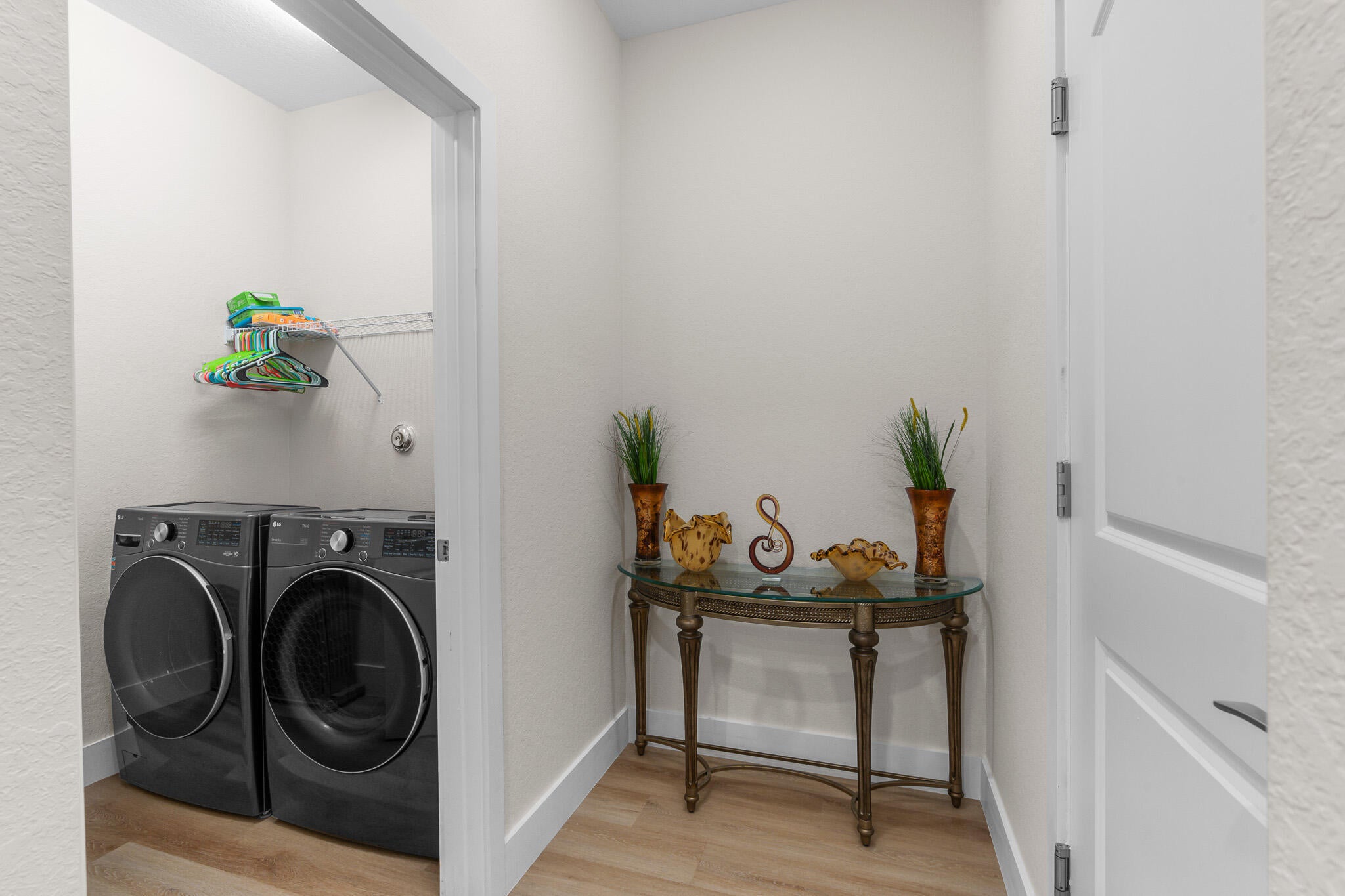 Newly built in 2022 and recently upgraded by the current owner, this 4 bedroom/ 2 bathroom / oversized 2 car garage gorgeous home is located in the gated & family-friendly community of The Fields. Brand-new just finished upgrades include: large-format plank flooring throughout, new countertops in the gourmet chef's kitchen on an expanded island with thick mitered edges and deep sink, kitchen backsplash and modern baseboards & door trim.Fire up the gas range and enjoy peaceful lake views from the screened-in lanai or take advantage of the spacious backyard with plenty of room for a pool (ask for the renderings). complete hurricane impact windows and doors as well. Enjoy the spacious primary suite with large walk-in shower and enough closet space to make anyone happy!Residents have access to two clubhouses with pools, gyms, and entertainment areas, as well as a community BBQ area, pickleball & tennis courts and a playground. This is an incredible opportunity to own a stylish, move-in-ready home in a fantastic location with great schools and close to tons of shopping.