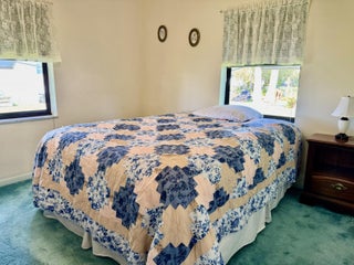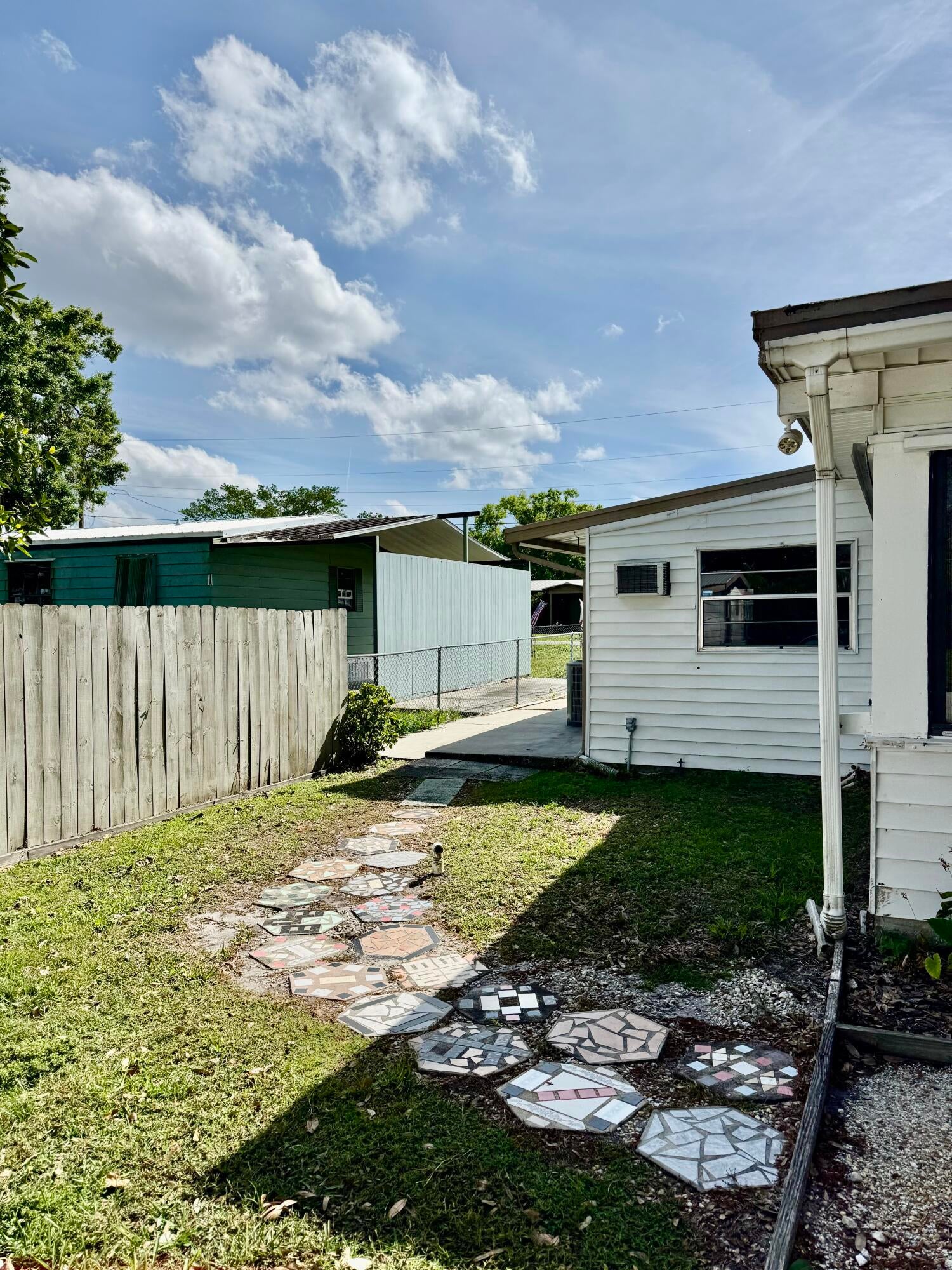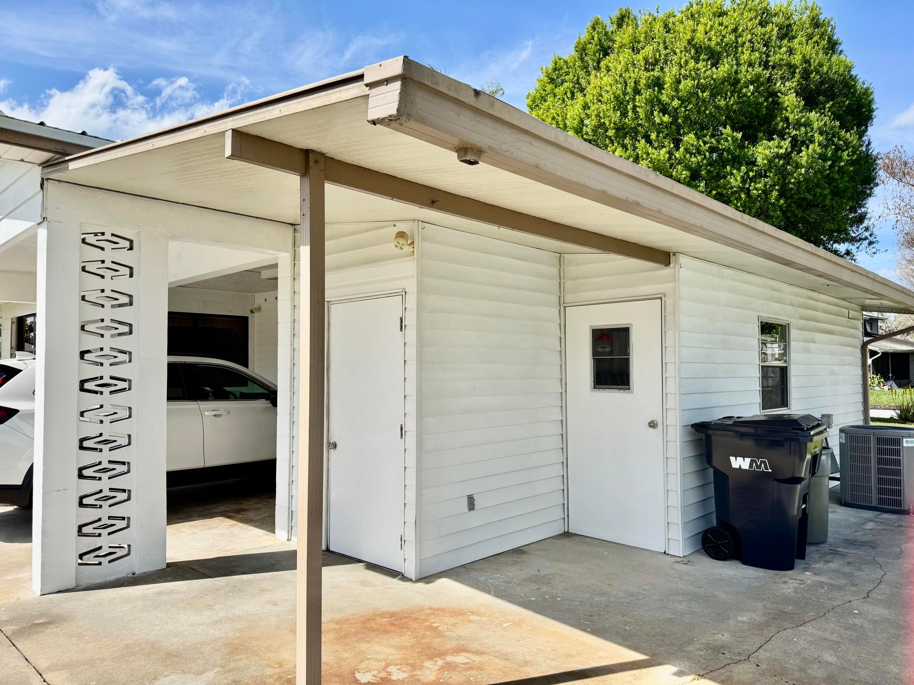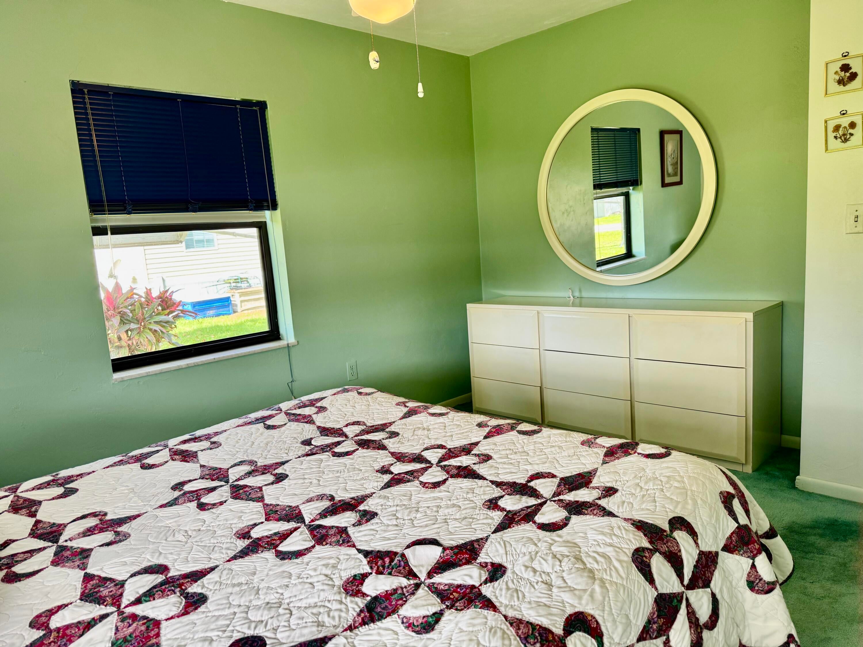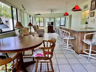SERENITY with TAYLOR CREEK and Lake ''O''access! CBS home. Bright and cheery 2 Bd/ 2 Ba/ double carport and exceptional storage. Beautiful tongue and groove pine accent walls. Open concept, newer kitchen, corian counters, library pantry, built in desk. New wall oven and DW. This home is made for entertaining with the 14x32 Florida room with built in bar w/ seating for 5-6 w/ panoramic view of the water. Water softener. Bocce Ball court. (What FUN!) 19x10 covered party dock. Solid seawall. Metal roof 2023, AC 2017. Beautifully maintained! DON'T LET THIS ONE GET AWAY! Dimensions are approximate, must measure for exact.