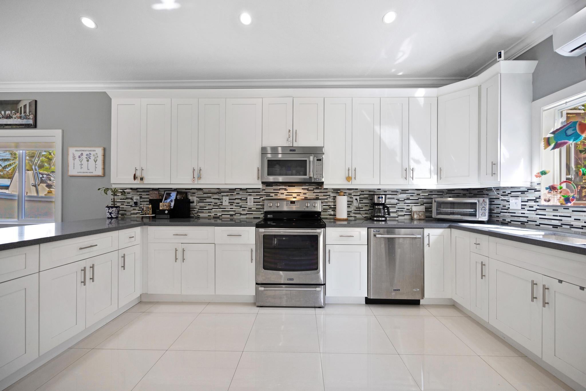 This beautifully maintained 3-bedroom, 2-bathroom CBS home in Key Largo offers luxury, comfort, and convenience. Owned by the original owners, this home features a metal roof, impact windows and doors, and is in the desirable X flood zone (no flood insurance required). Inside, you'll find elegant, easy-to-clean porcelain floors, high ceilings, and an open-concept living area. The stylish kitchen boasts modern quartz countertops with a countertop overhang and seating, a tiled backsplash, and stainless-steel appliances. It's truly a chef's delight. The primary suite sits off the kitchen and boasts an ensuite 5-piece bath with a separate sizable closet. The split bedroom floorplan offers privacy, separating the primary suite from the other bedrooms, which can function perfectlyas guest rooms or a home office. This home is perfectly equipped with a 2022 Titan on demand water heater, and central AC/Heat ensuring year-round comfort. Step outside, to enjoy the front porch or the privacy of the back terrace- where a gardener's paradise awaits with ample shade, vibrant flowers, and a cozy pergola(16'x13') perfect for reading, sitting or entertaining. Enjoy a private oasis within the confines of the wood-fenced yard, offering secure storage for your boat and other recreational toys. A 10'x6' storage shed provides ample space for fishing gear and more, while the convenient outdoor sink simplifies cleanup after gardening or a day on the water. The thoughtfully designed property features a brick-paved driveway in the front, accommodating multiple vehicles with room for more. This homes ideally situated within a few miles of several boat ramps, shopping, grocery store and a variety of dining options. Additionally, it makes for an easy commute to the mainland for both work and leisure. This exceptional Key Largo opportunity won't last - schedule your private showing today!