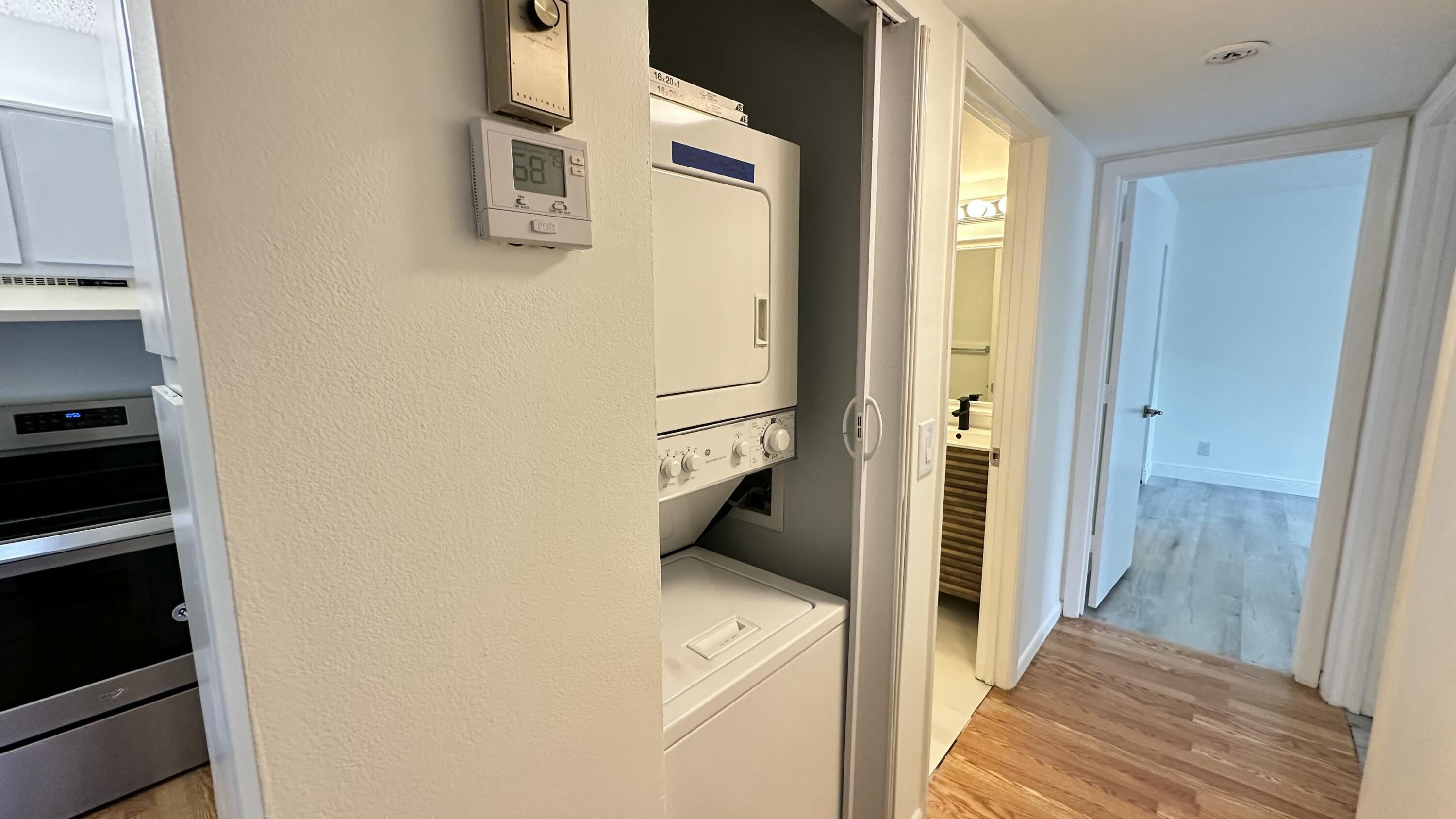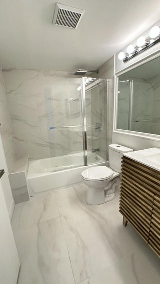Discover this comfortable apartment in a fantastic location, offering a serene canal view. The unit features a well-maintained stove and refrigerator, ensuring a pleasant cooking experience. An in-unit washer and dryer provide added convenience. The apartment boasts two updated bathrooms, each featuring elegant glass-enclosed showers. Water and trash fees are included in the rent, simplifying your monthly expenses. Additional storage is available with a hallway closet. You can move in with just first month, security deposit, and renters insurance. Please note, pets are not permitted in this property.
