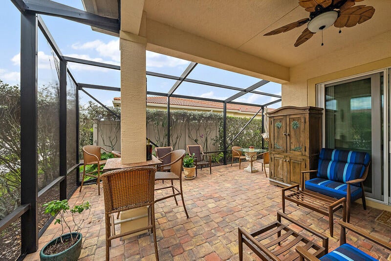 Corner unit on one level-Luxurious 2-Bedroom Villa in PGA Verano - Resort-Style Living Awaits!Discover the perfect blend of elegance and comfort in this meticulously maintained 2-bedroom, 2-bathroom villa with a 2-car garage, ideally situated in the prestigious PGA Verano community. Just a short walk from the vibrant clubhouse, this home offers the ultimate in resort-style living with five-star amenities at your fingertips.Step onto the welcoming front porch, where charming curb appeal sets the tone for the beauty within. The open-concept living space boasts gorgeous neutral tile flooring, impact glass windows and doors, and a seamless flow from the living and dining areas to the extended screened lanai--complete with a new decorative ceiling cover for a serene indoor-outdoor retreat.The chef's kitchen has been thoughtfully updated cabinetry, quartz countertops, and stainless-steel appliances, along with a breakfast barideal for casual dining or entertaining. Unwind in the luxurious primary suite, featuring two oversized closets and an ensuite bathroom designed for relaxation, with dual vanities, a soaking tub, and a separate tiled shower. Living in PGA Verano means access to unparalleled amenities, including a 27-court pickleball facility, indoor & outdoor pools, state-of-the-art fitness centers, scenic walking paths, dog parks, and so much more. Don't miss this opportunity to own a slice of paradise where every day feels like a vacation! Schedule your private tour today!