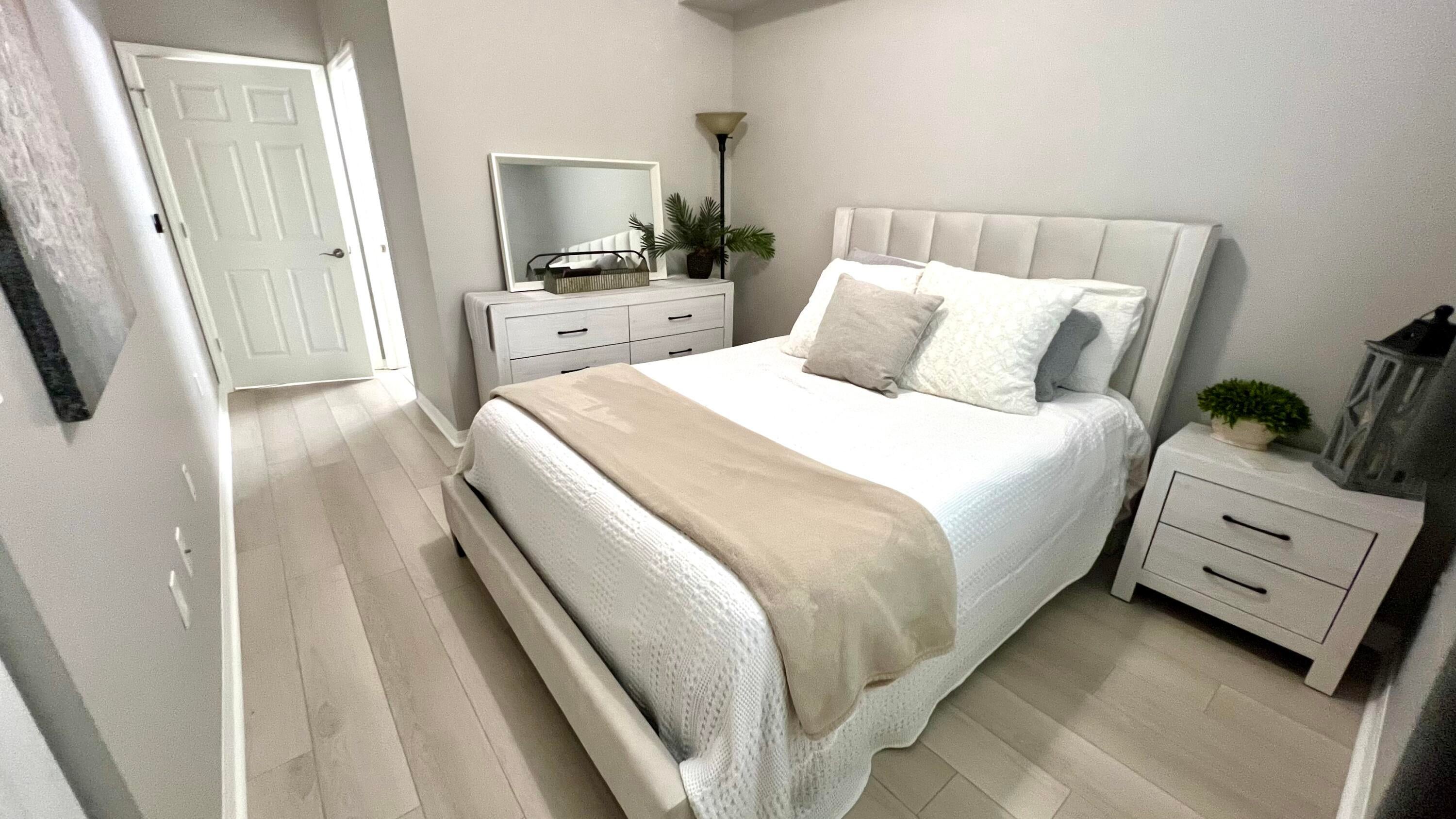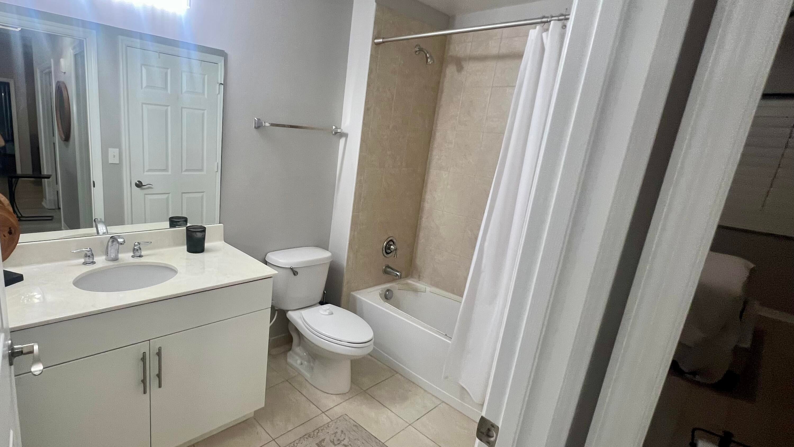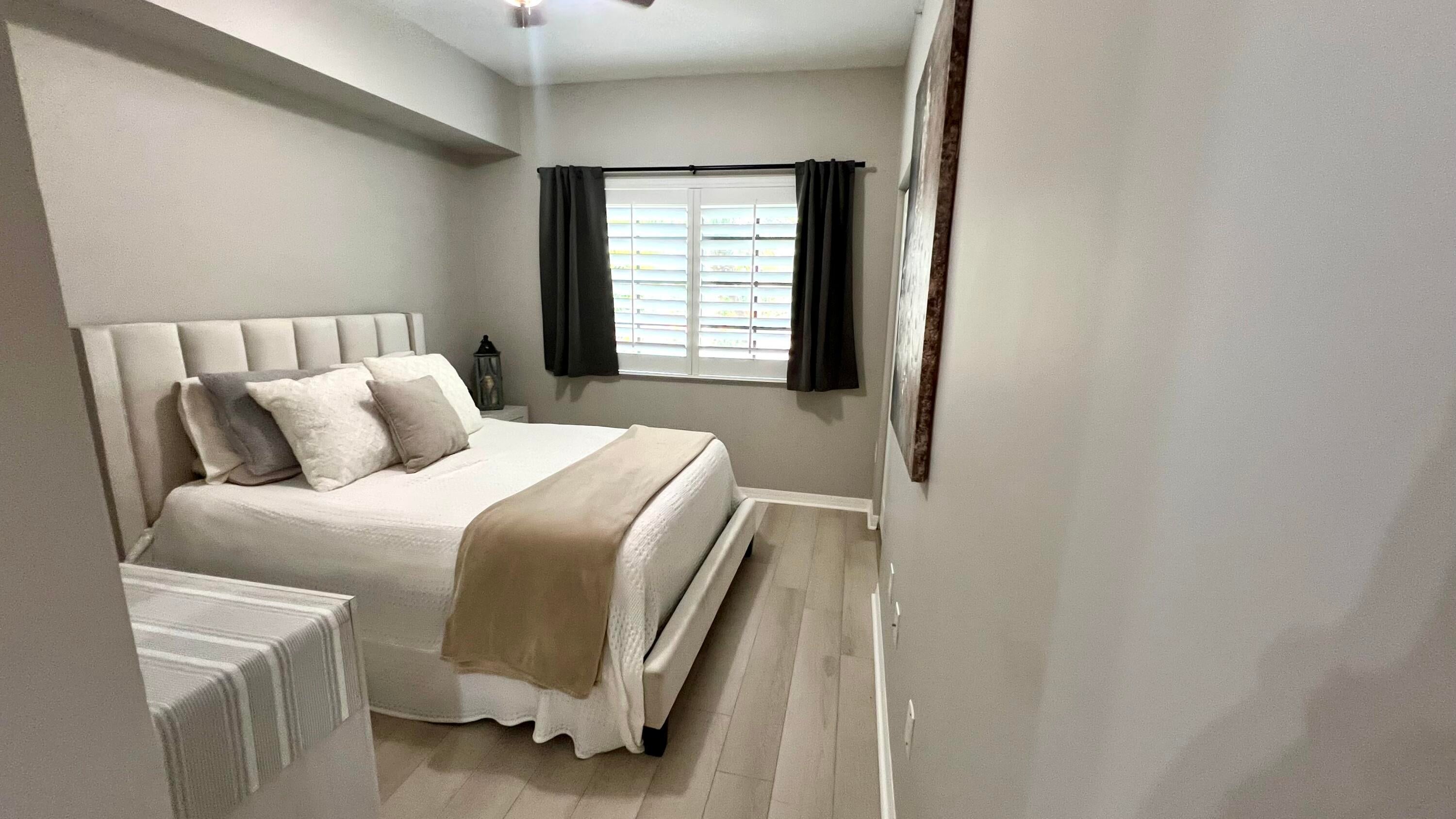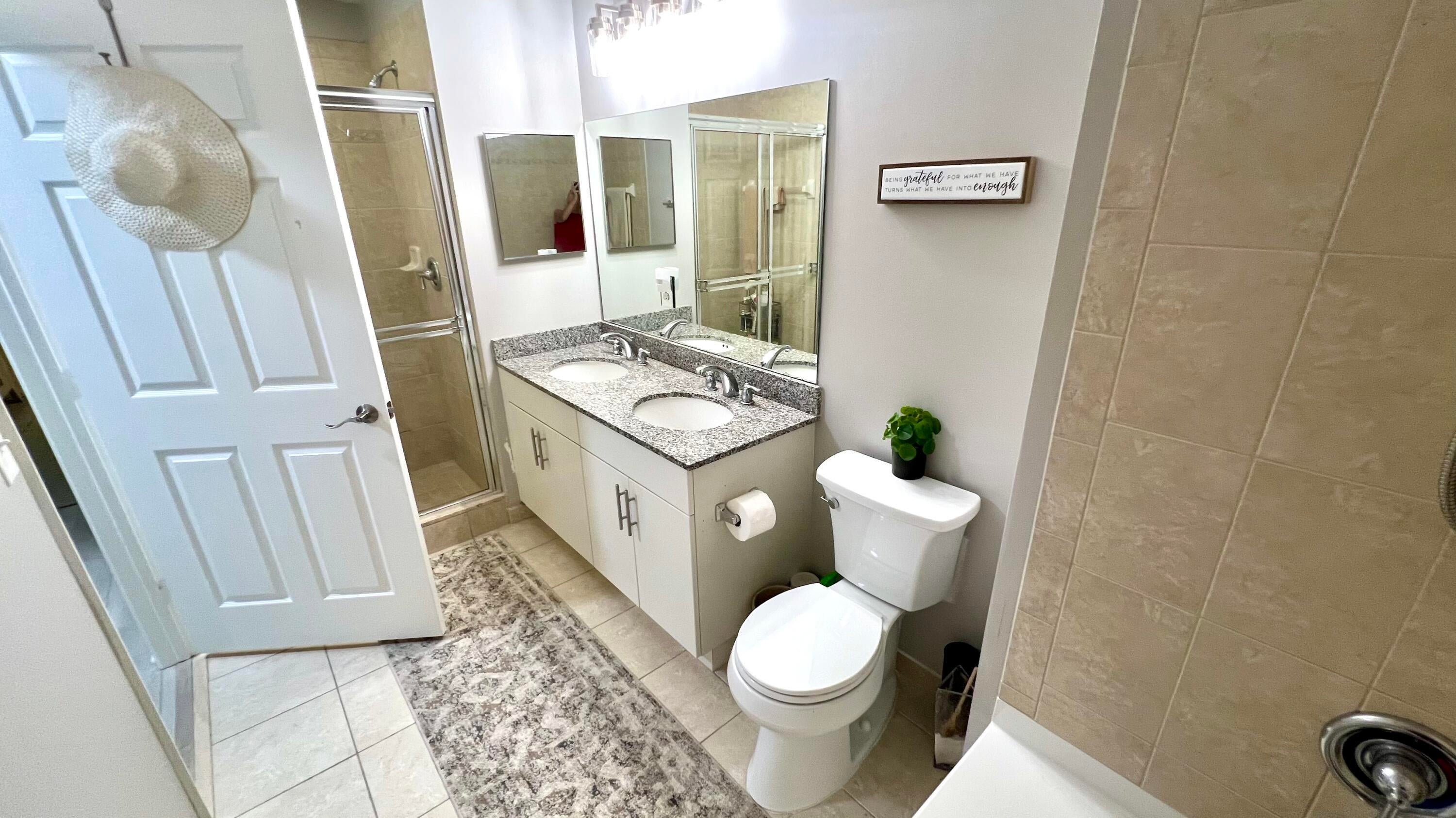 Rarely available 1st floor 3 BEDROOM end unit Move-in Ready with brand new quartz counter tops, kitchen pantry, refrigerator, APEC UV-PH water system, Light fixtures, Fans, HVAC and flooring. NO CARPET! Enjoy easy living lifestyle with your first floor location by skipping the need to take an elevator/stairs and long hallways! This home includes a large covered private patio overlooking lushly landscaped courtyard and 2 garage parking spots. Amenities include gym, clubhouse, pool, spa, tennis and a lakefront dog walk. Water & Sewer included in HOA fee. Impact windows & doors. Short walk to shops, dining, entertainment & Fresh Market. Furniture negotiable. Quick access to Beach, Golf, PGA National resort & I95 *Owner-Agent.