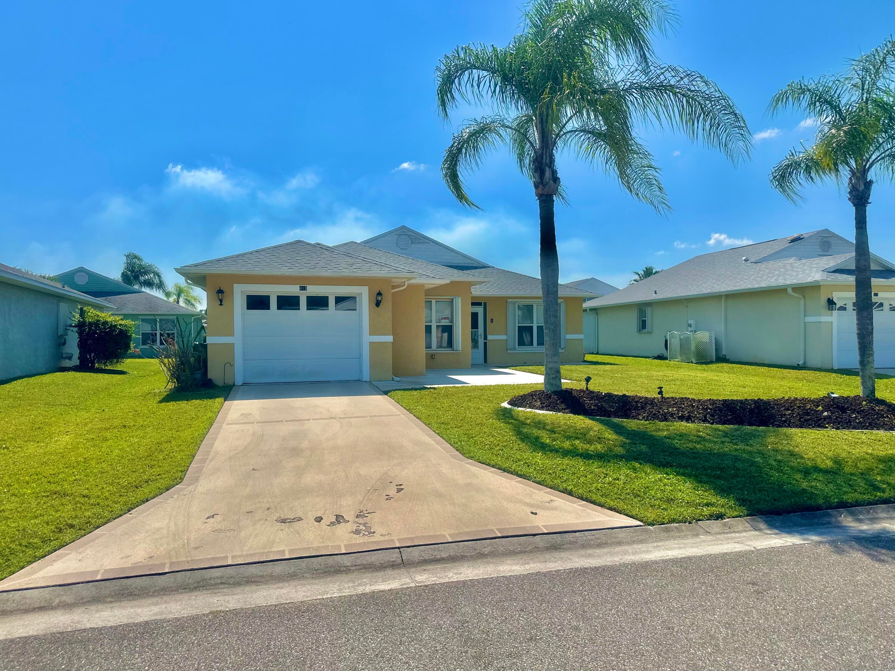 Discover this charming 2-bedroom, 2-bathroom CBS home nestled in the sought-after 55+ gated community of Palm Grove. This residence boasts a newly installed roof, ensuring peace of mind for years to come. The spacious layout includes a covered patio, perfect for enjoying Florida's serene mornings and evenings!Community Highlights: Palm Grove: A well-maintained, active adult community offering a plethora of amenities. Security: Benefit from 24/7 manned gate security, providing residents with a safe and secure environment. Amenities: Enjoy access to a luxurious clubhouse, heated pool, tennis courts, pickleball, bocce ball, shuffleboard, and a variety of social clubs and events. Convenience: Located just minutes from shopping centers, restaurants, hospitals,and beautiful beaches.