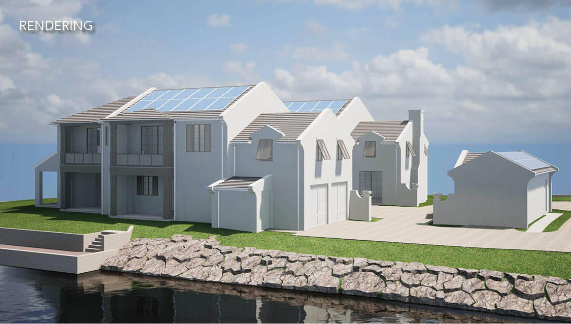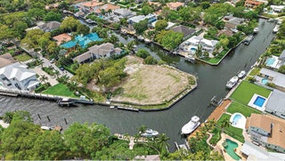 Located just off the Intracoastal this acre + vacant lot offers a safe harbour with 400' of frontage, NEW sea wall, two docks & an 8,000lb boat lift. Build your oversized dream home here, zoning allows for a 20,000 sq ft + estate.Plans available to build home in renderings.