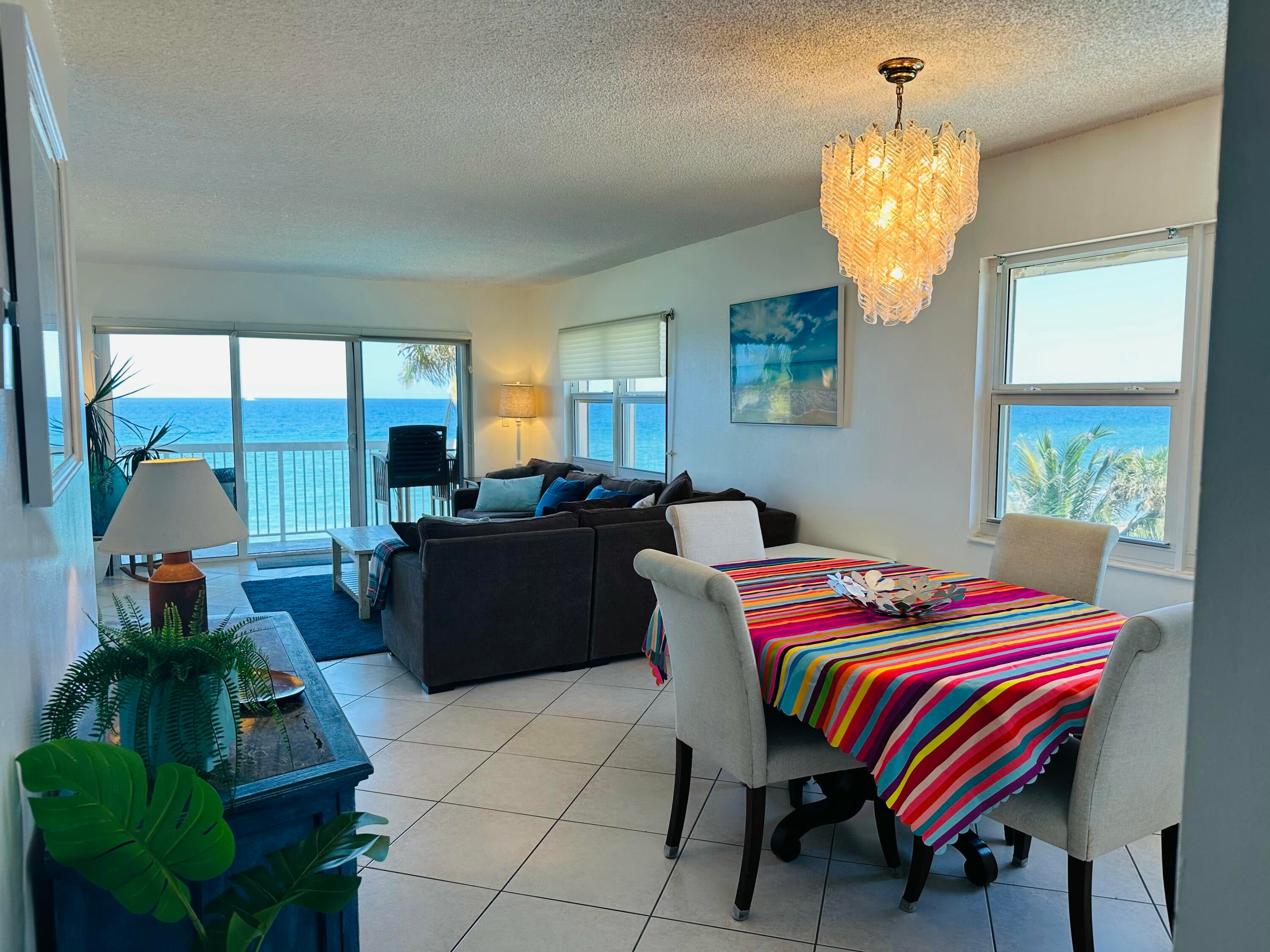 Oceanfront Furnished Seasonal Rental - Directly on the Sand! Experience the ultimate beachfront lifestyle in this stunning 2/2 oceanfront condo. Relax, unwind and enjoy breathtaking ocean views from your private balcony while taking in the sights and sounds of the ocean. Fall asleep to the tranquil sound of the waves from the primary bedroom, which features roll-down electric blackout shutters for complete privacy and restful sleep. This beautifully maintained unit offers tile flooring throughout, and a spacious living area. Simply step outside to enjoy private beach access, or the community pool overlooking the ocean. Conveniently located near the intracostal, dining, shopping, and entertainment this condo provides the perfect mix of tranquilityand convenience. Don't miss this rare seasonal rental opportunityschedule your private viewing today! Available Jan 5 - May/June.
