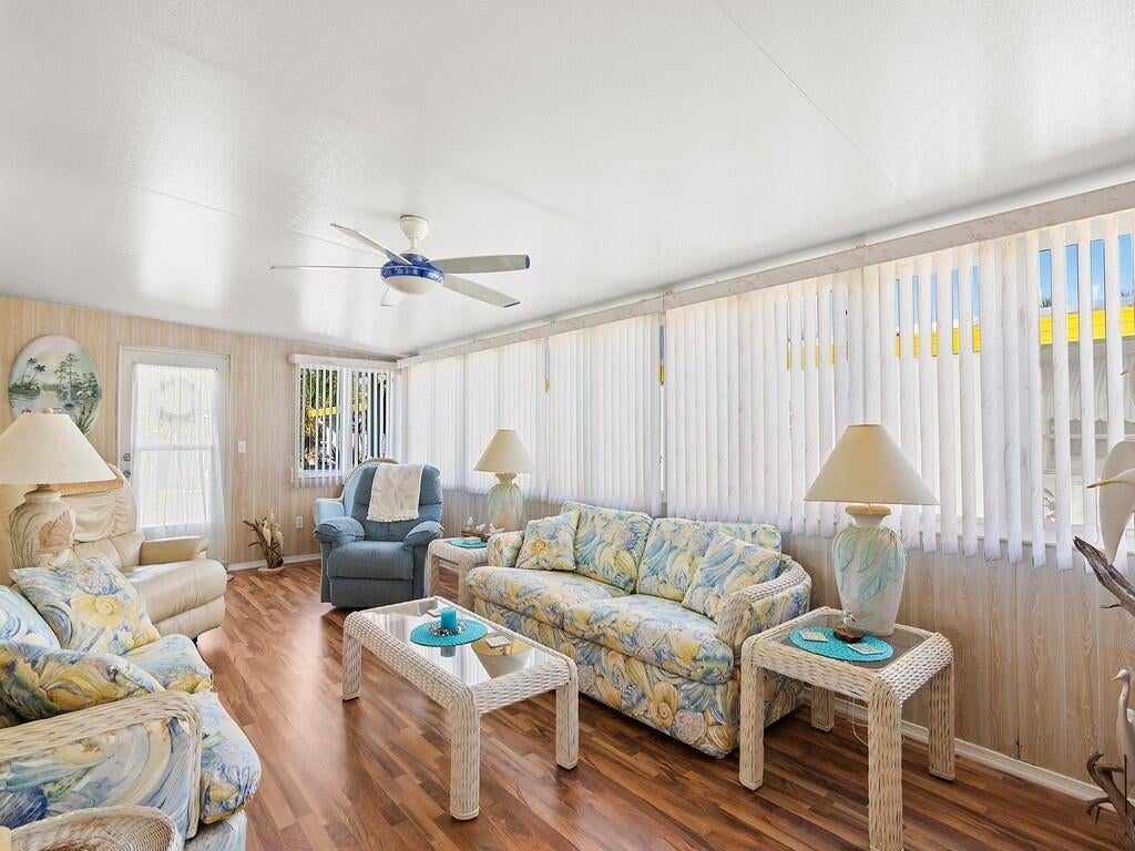 Check out this beauty located just minutes from downtown Jensen Beach. This 2/1.5 mobile home has been completely renovated with new windows, flooring, electrical and the Florida room has been converted to make extra living space. The home comes furnished and is tastefully decorated. This 55+ mobile home park is a hidden gem on the Indian River. HOA is only $305 a month and covers cable, water, lawn maintenance, and all the amenities of the HOA which include heated pool, shuffleboard and a community dock.