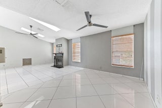 Welcome to this charming 1-story home in the desirable Woods Walk neighborhood, offering canal views and plenty of space to relax and entertain. Boasting 3 bedrooms plus den and 2 bathrooms, this well-maintained home features 2202 sqft of living space, perfect for comfortable family living.As you step inside, you'll be greeted by the cozy entry-level living area, complete with a decorative fireplace that adds warmth and character to the space. The family and dining areas provide an open, inviting environment for gatherings. The spacious kitchen includes ample cabinetry and a convenient bar, making meal prep and entertaining a breeze.Each of the 3 bedrooms offers its closet, ensuring plenty of storage space for everyone. Additional features include accordion shutters, a 2-car attached garage, and a great location within the community. This home has it all. Schedule your showing today!