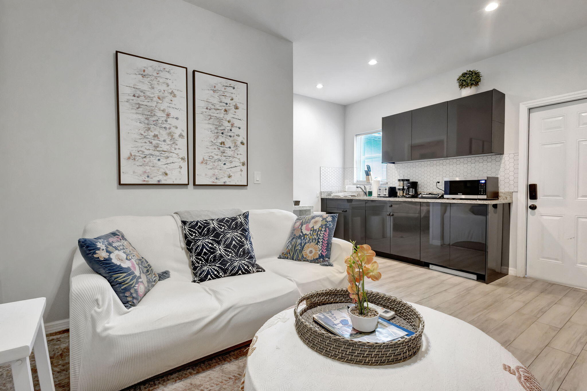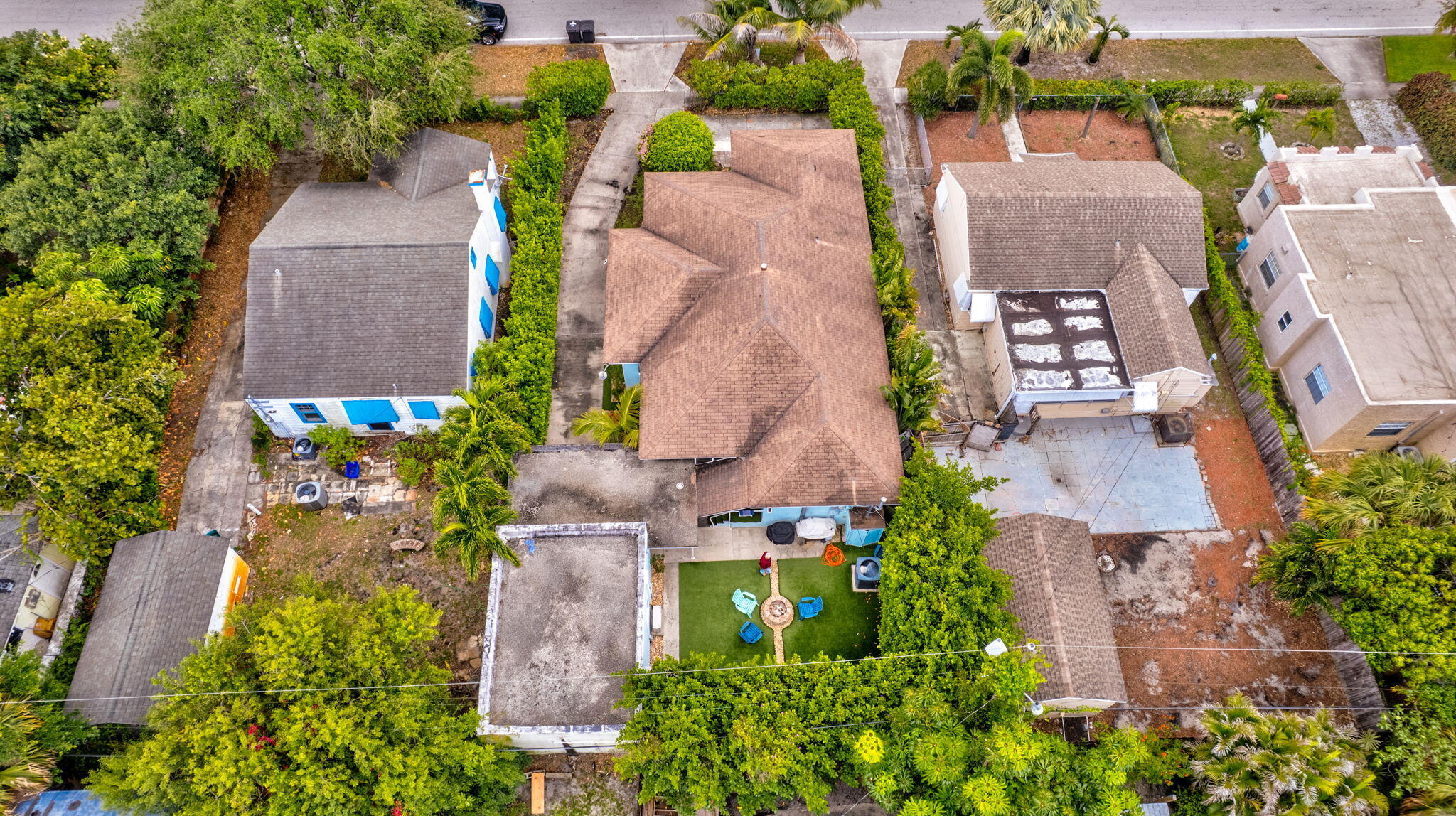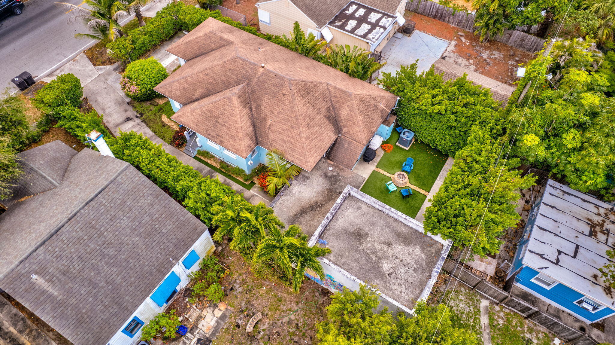 Four bedroom, two bathroom, CBS, single family house, fenced backyard, with an recently renovated one bedroom, one bathroom cottage. House features hard word floors, gas stove, and gas HWH. New 3D composite shingle roof will be installed prior to closing. New Citizens homeowners' quote is $5,100. Room for a pool. The cottage is 391 sqft with kitchen and washer & dryer. Currently tenant occupied with the main home rented for $3,900 monthly w/ end date 05-26-2027 and the back unit rented for $1,850 monthly w/end date of 05-31-2026.Conveniently located in Opportunity Zone one block from the direct Intra-Coastal waterway in trendy, up & coming Northwood. Northwood boasts a quaint Downtown,shops,dining, entertainment, and waterfront parks. GL Homes building 100 new homes from 40th to 45th