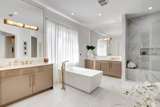 Step into luxury with this extensively remodeled Pamplona model with impeccable craftsmanship & high-end finishes throughout. The fully renovated kitchen features sleek Italian cabinetry & dramatic Michelangelo Calacatta porcelain countertops. The primary suite is a true retreat, boasting a complete bathroom remodel with spa-like elegance & modern flooring in bdrm. Impact windows replace the original glass block. New landscaping & impact front doors & transom add to stunning curb appeal. New window treatments, new a/c, shutters, whole house generator. Valencia Pointe has completed the clubhouse remodel-state of art amenities. This is a rare opportunity to own a meticulously upgraded home in sought-after 55+Valencia Point
