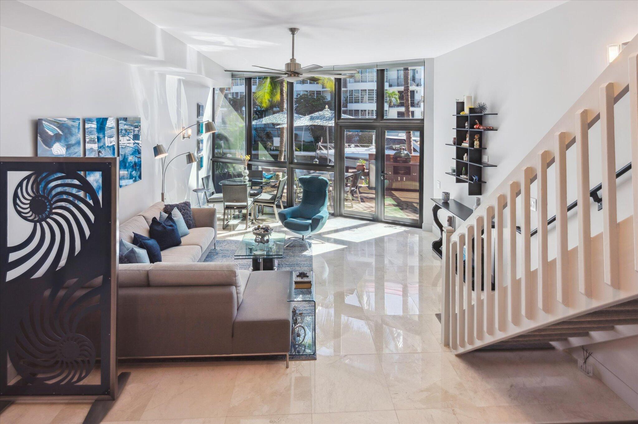 RELAXING & TRANQUIL LIFESTYLE IN A TROPICAL SETTING. Completely Renovated Waterfront Townhome in Exclusive Coral Ridge Country Club Estates 2BR + loft, 2.5BA home offers EXPANSIVE WATER VIEWS & private assigned dock- NO fixed bridges with easy ocean access. Recent upgrades include new roof (2024), all impact windows/doors, hurricane-rated garage door, Weardeck Composite(2022) deck & boat dock (2024). The entire interior is freshly painted (2025) for a modern, move-in-ready feel. Hunter Douglas remote blinds add luxury and convenience. A spacious deck with desirable southern sun exposure is perfect for entertaining or relaxing by the water. Just minutes from Lauderdale-by-the-Sea beaches, fine dining & shopping, this home is ideal for boating enthusiasts and effortless waterfront living