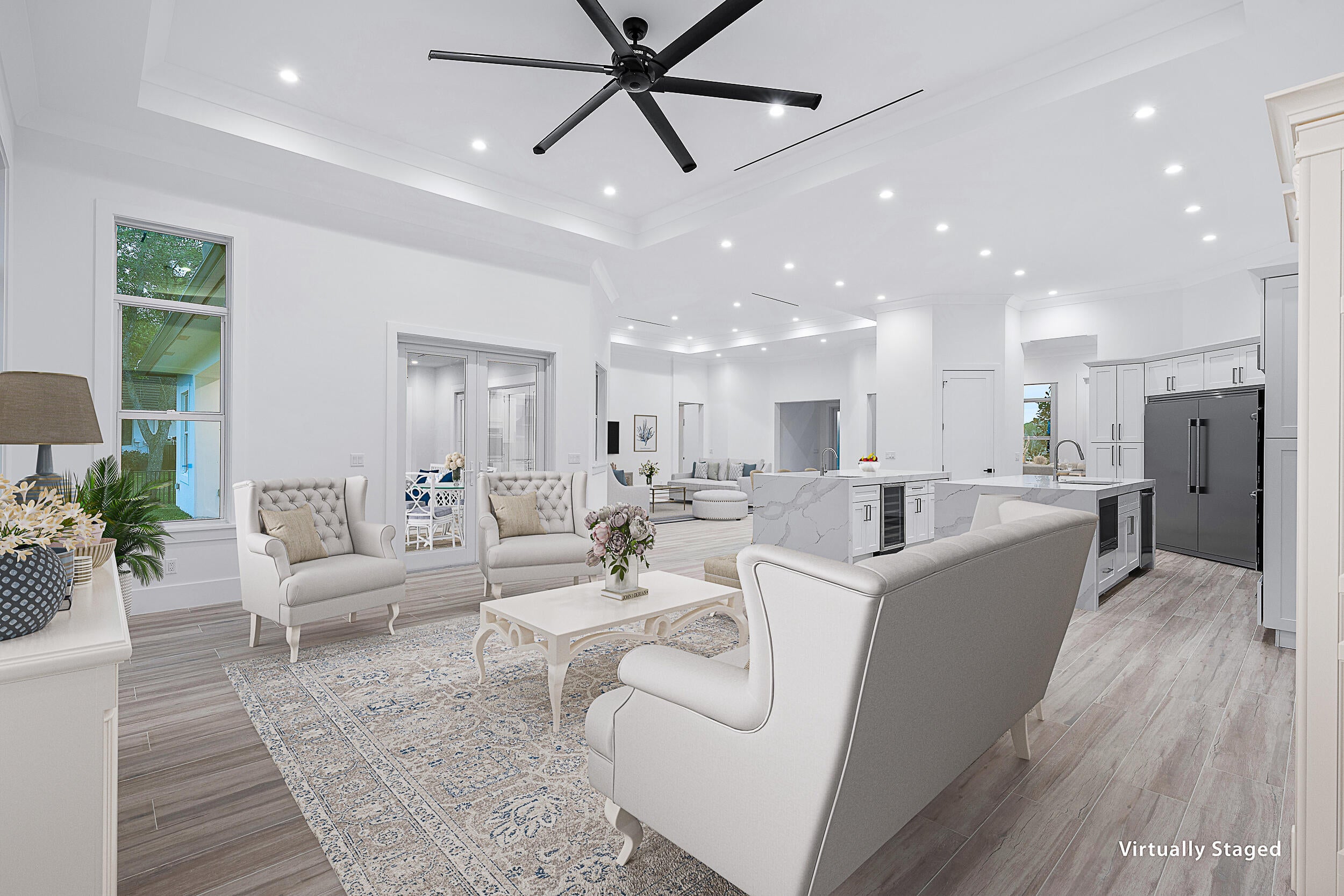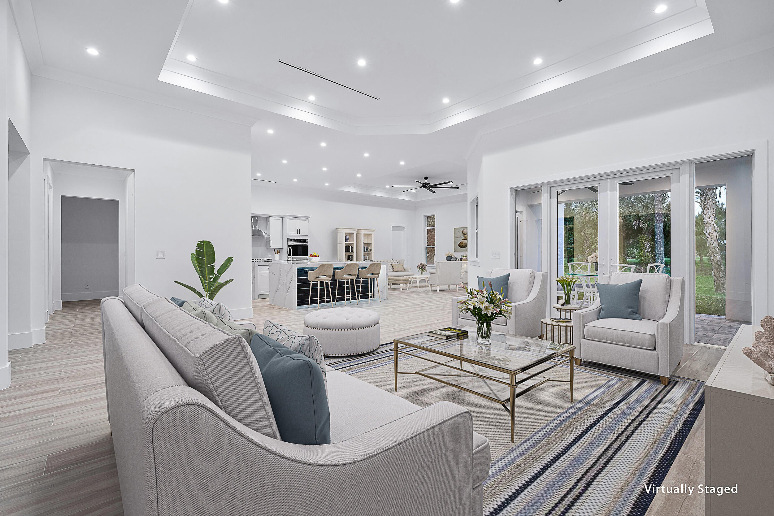 Priced below recent appriasal, this newly built, one-story CBS home offers an exceptional living experience right on the Old Trail golf course. The open floor plan boasts high ceilings and impact windows and doors, blending style with security. The chef-inspired kitchen is a true standout, featuring double islands and stunning waterfall quartz countertopsa"perfect for entertaining. The thoughtful split floor plan provides privacy, with a spacious primary suite that includes two walk-in closets and a luxurious free-standing tub. Additional features include 3 bedrooms, an office, a formal dining room, and a cabana bath. Enjoy the peace of mind provided by a 24-hour secured gate, a low HOA fee, and optional membership opportunities. Short-term, low-interest seller financing available.