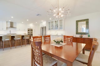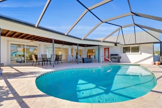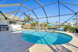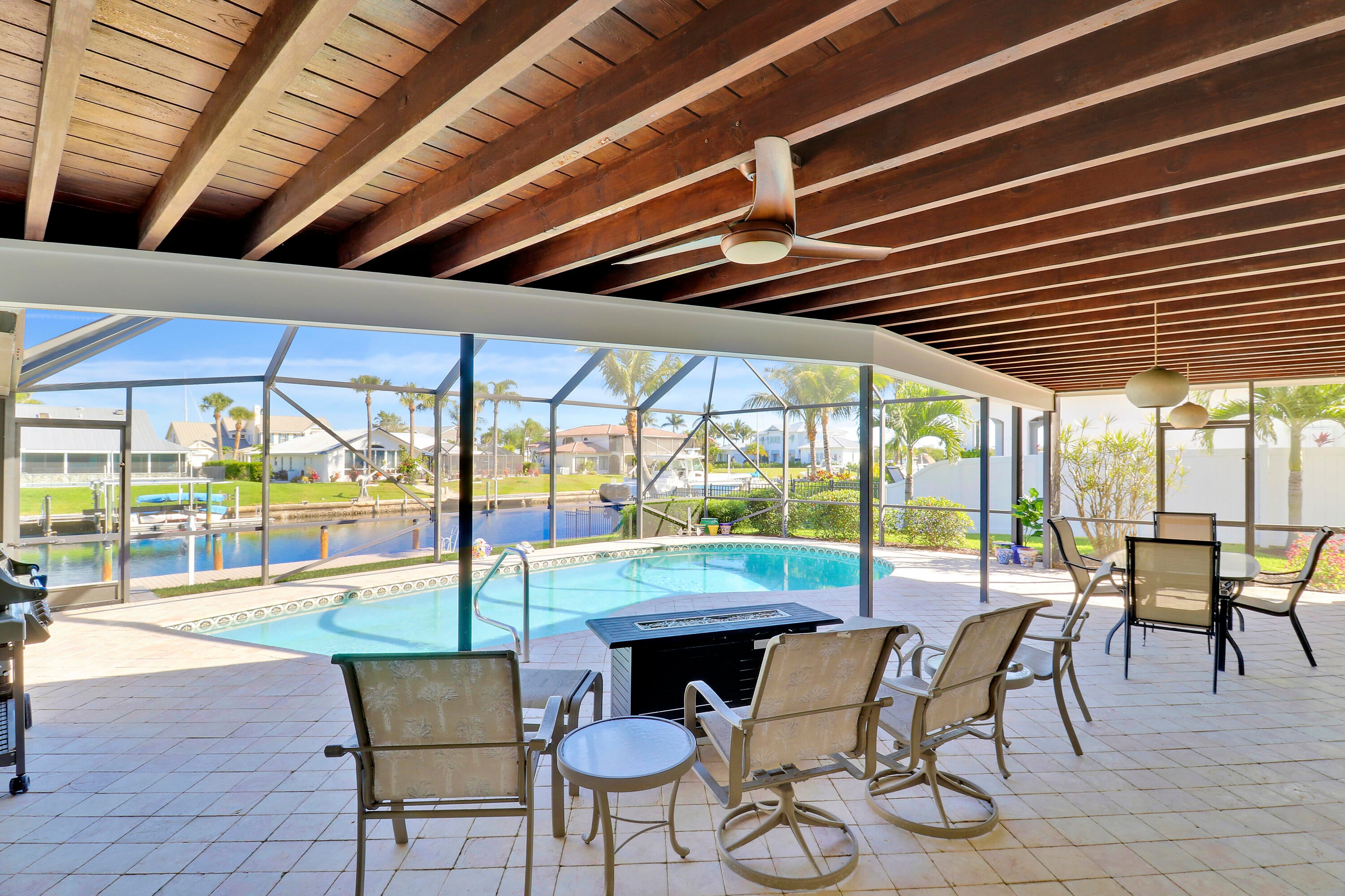 Stunning waterfront home with Florida charm blended with modern updates. Completely renovated in 2021. This 4 Bedroom 3 Bath retreat is located in a highly desirable Treasure Coast waterfront community, 3 homes from the end of a tranquil street off the intracoastal waterway. CBS construction with hurricane impact protection and attached 2 car garage. Enter into an exquisite grand living/family room with breath taking views of the pool and water. The heart of the homes features a chef's kitchen featuring Thermador 6 burner gas range, GE Cafe appliances. Custom white cabinetry, 9' walnut center island with quartzite countertops. Wood plank design tile flooring throughout the home. Waterfront features a 60'x8' composite deck with 16k lb boat lift on a 100ft wide canal. No fixed bridgeDirect ocean access to Jupiter or Stuart Inlets. 100ft seawall installed in 2007. Additional home renovation features include- whole house Generac 22 KW propane generator with inground tank and automatic transfer panel, 3 zone split A/C with new A/C ducting, Leaf whole house water softening/carbon filtration system. Solid wood interior doors, closet built-ins and central vacuum system. Interior laundry room with dedicated wash vanity, Raypac 119 BTU electric pool heater and pool filtration system. Approx. 1360 sqft screened patio with marble tile and free formed pool. New Square D 200-amp electric panel with 60-amp, 240-volt EV charging station. Lawn irrigation system, exterior landscape lighting. Underground utilities. Hobe Sound is known for its pristine beaches, scenic nature preserves, world class golf courses, fine restaurants and boutique shops. Enjoy the small-town charm while being minutes from Johnathan Dickinson State Park or the new pickle ball courts at nearby Meyers Park. Enjoy the Banyan Tree lined drive to Jupiter Island and beautiful Hobe Sound beaches.