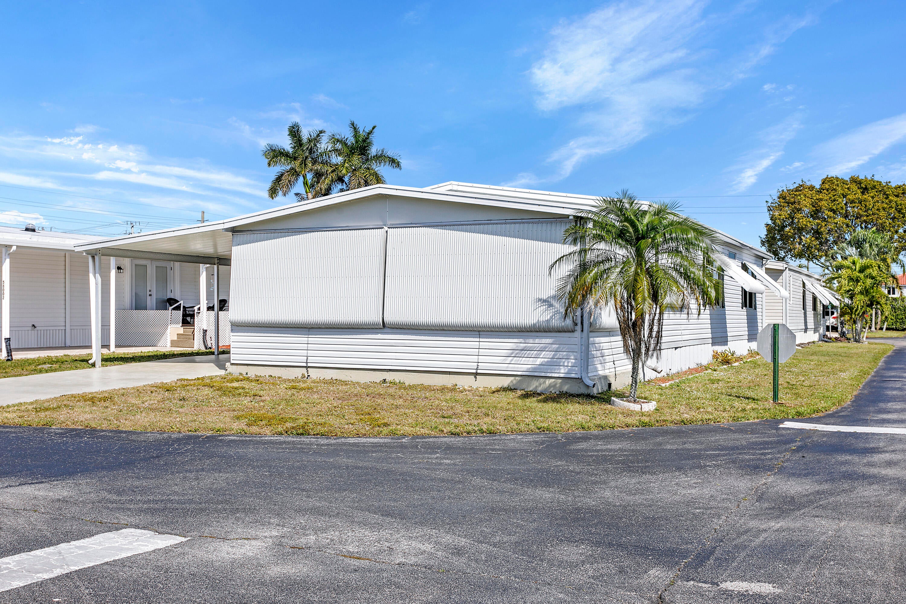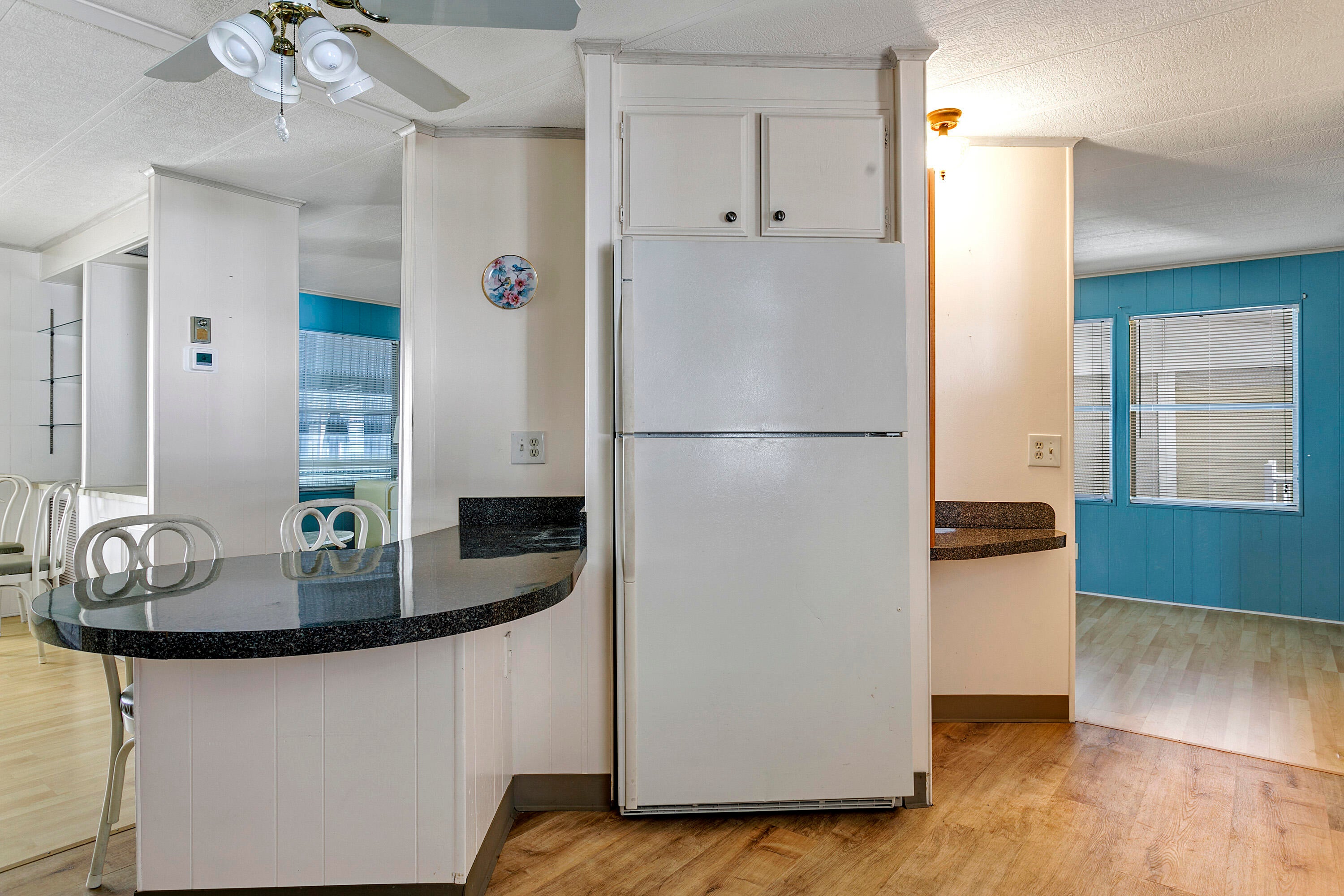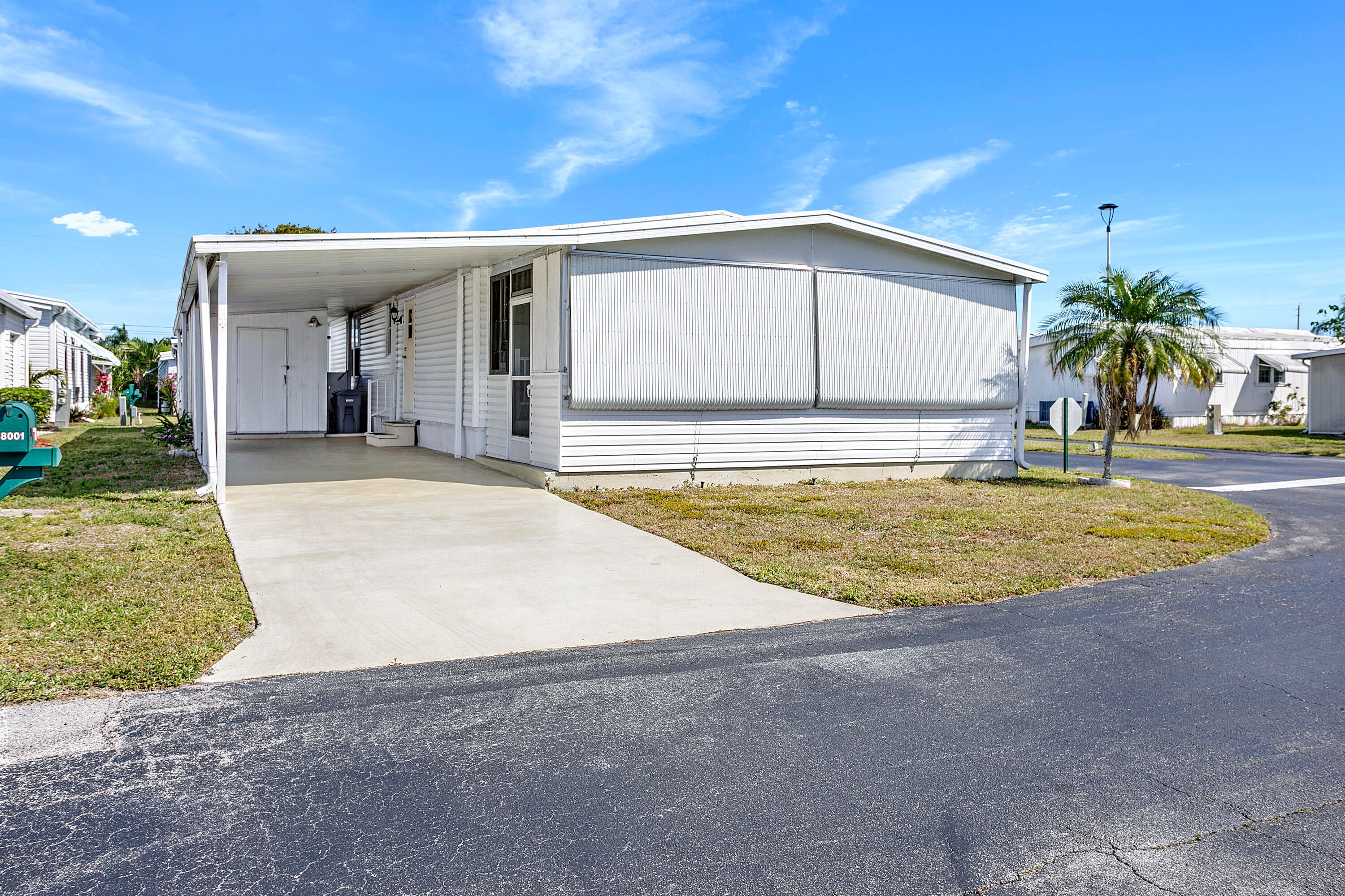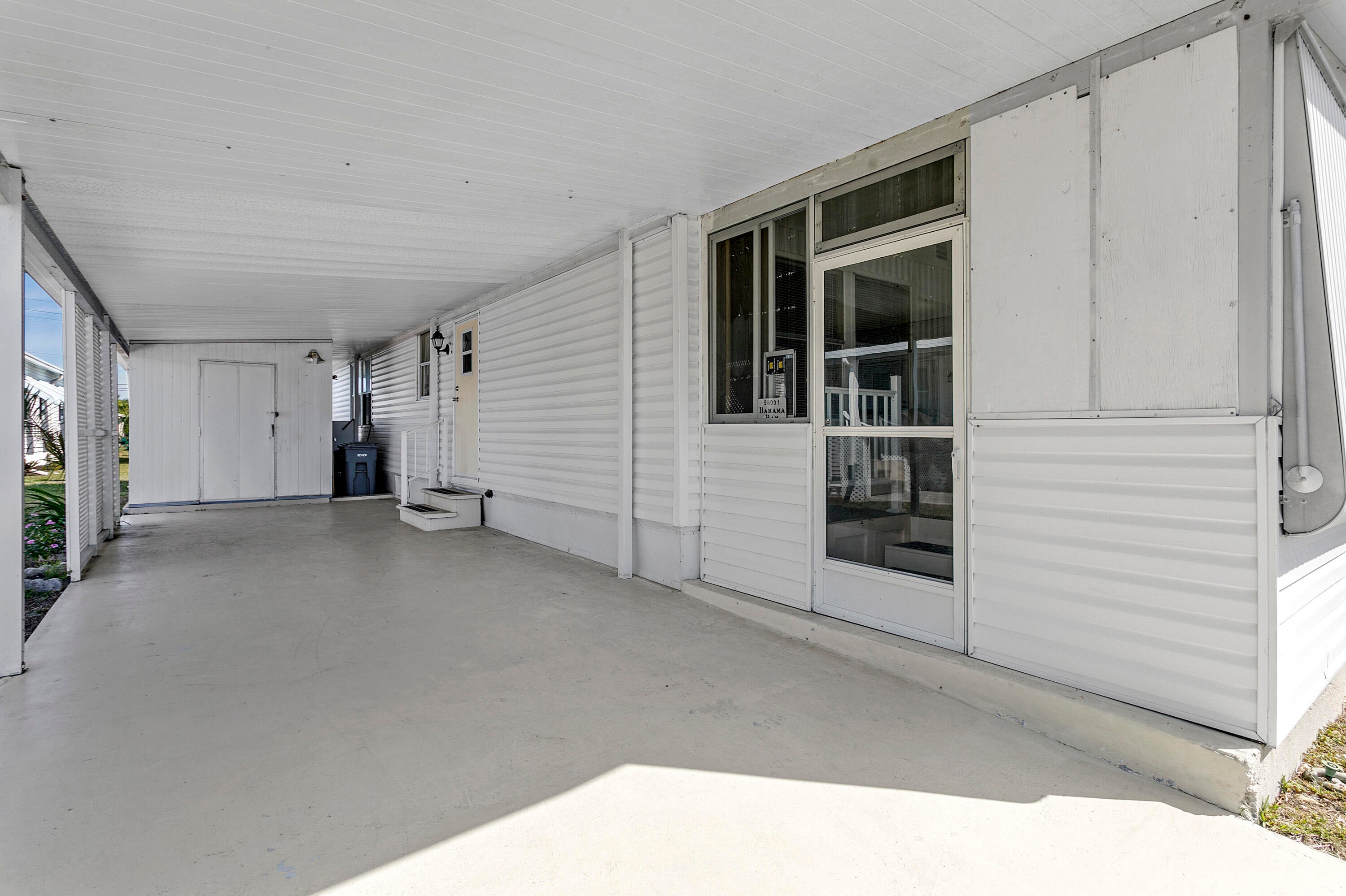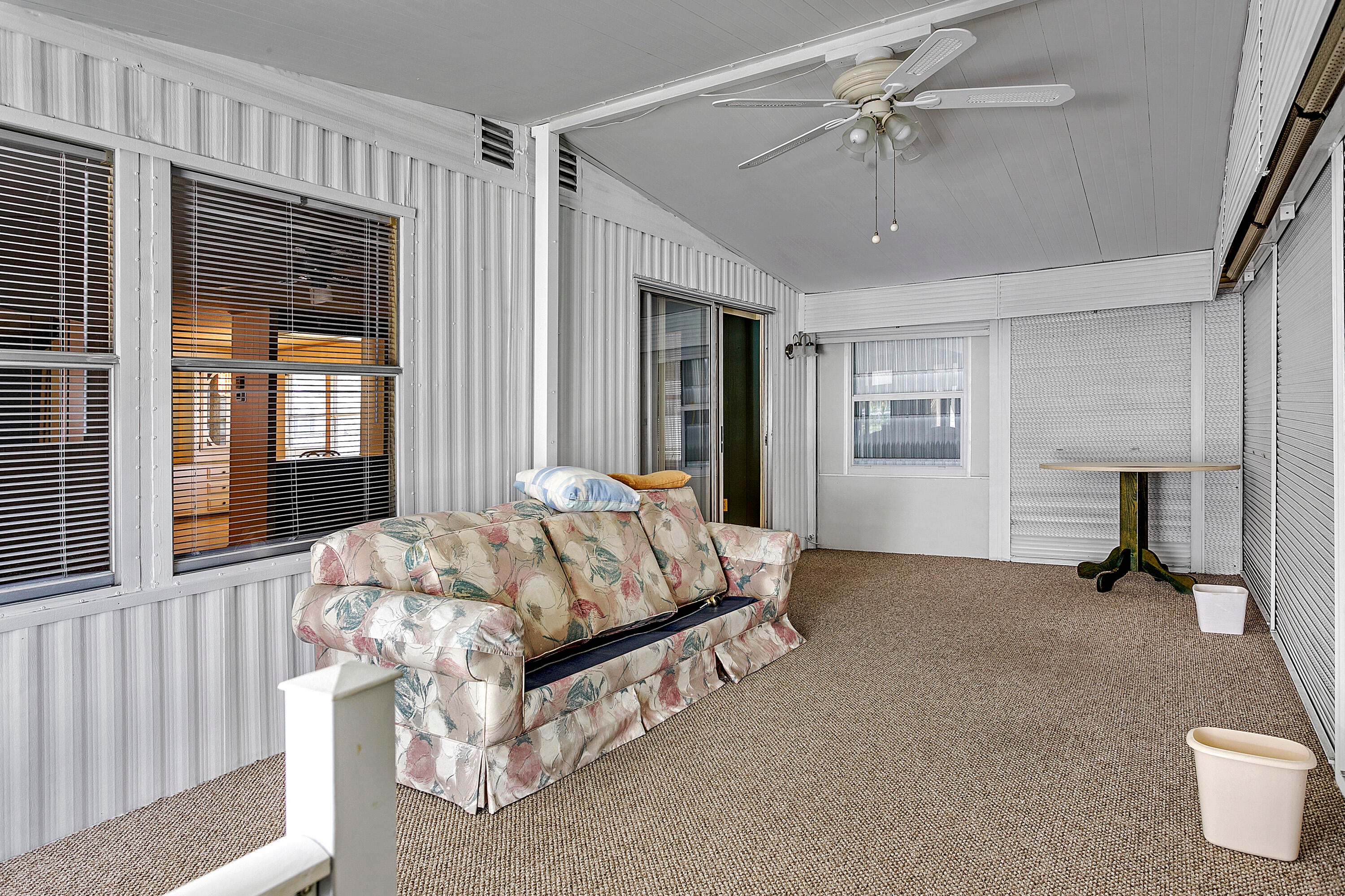 This charming 2-bedroom, 2-bathroom home is located in a desirable Active Adult community with a 24-hour manned gate for added security. The kitchen features beautiful wood cabinets, granite countertops, and a convenient breakfast bar. Wood laminate flooring runs throughout the home, with cozy carpet in the bedrooms. Enjoy a formal dining room with a built-in buffet and a spacious living room filled with natural light. The enclosed Florida room offers additional living space. Newer AC. The master bedroom boasts a walk-in closet, an updated vanity, and a step-in shower. The second bedroom provides ample closet space, and the remodeled guest bathroom. A large double shed offers plenty of extra storage. Community is located close to plenty of dining, shopping and the local Beaches.