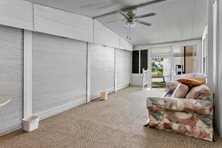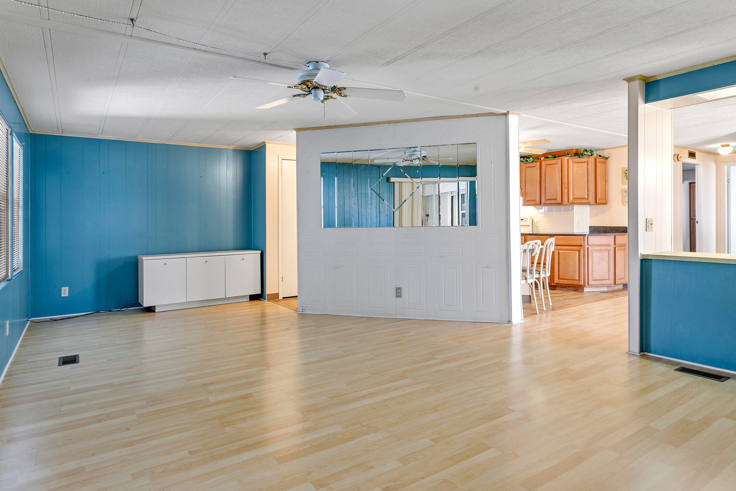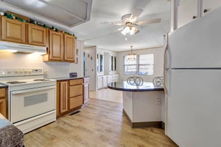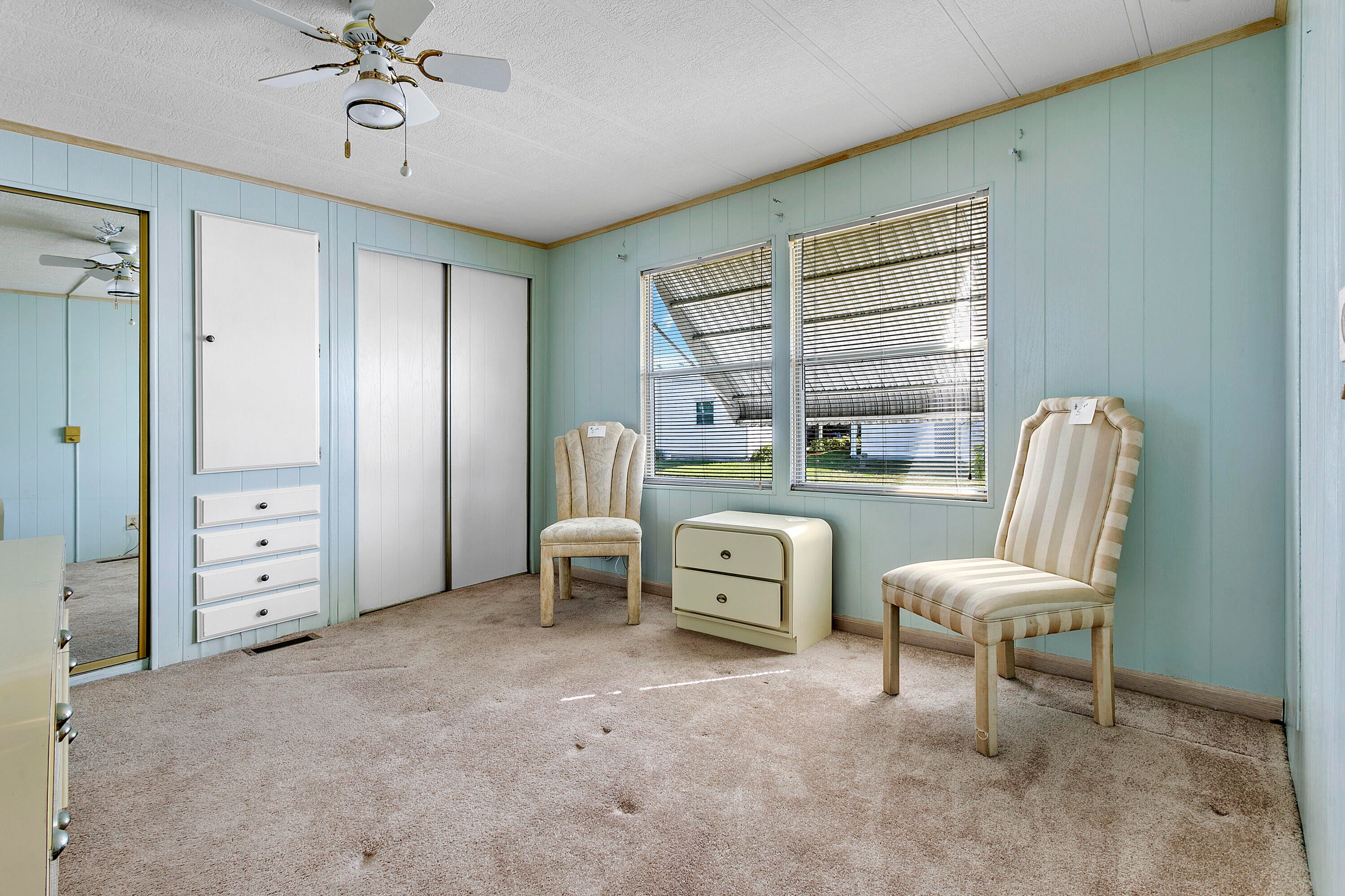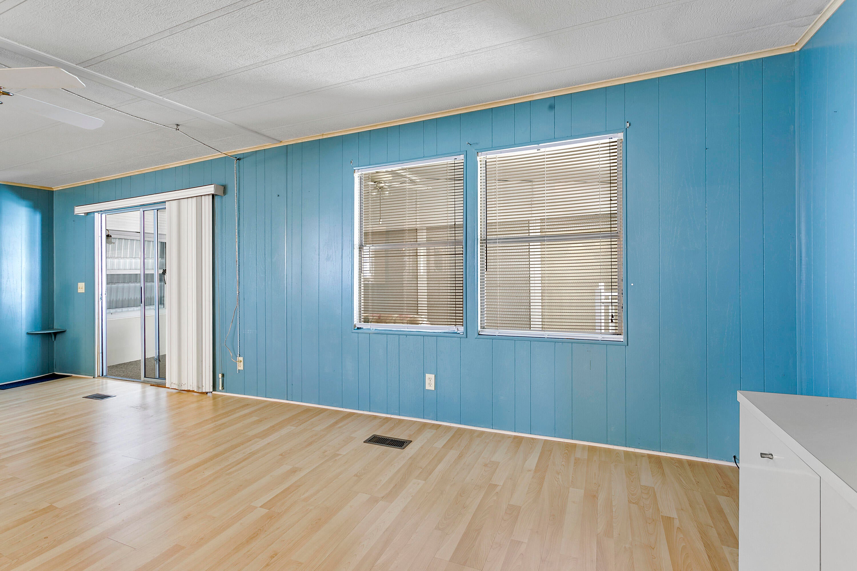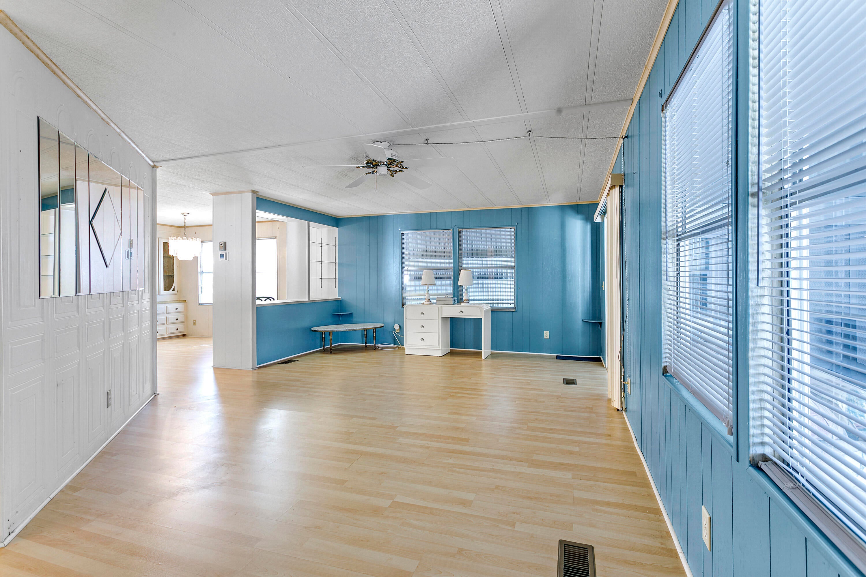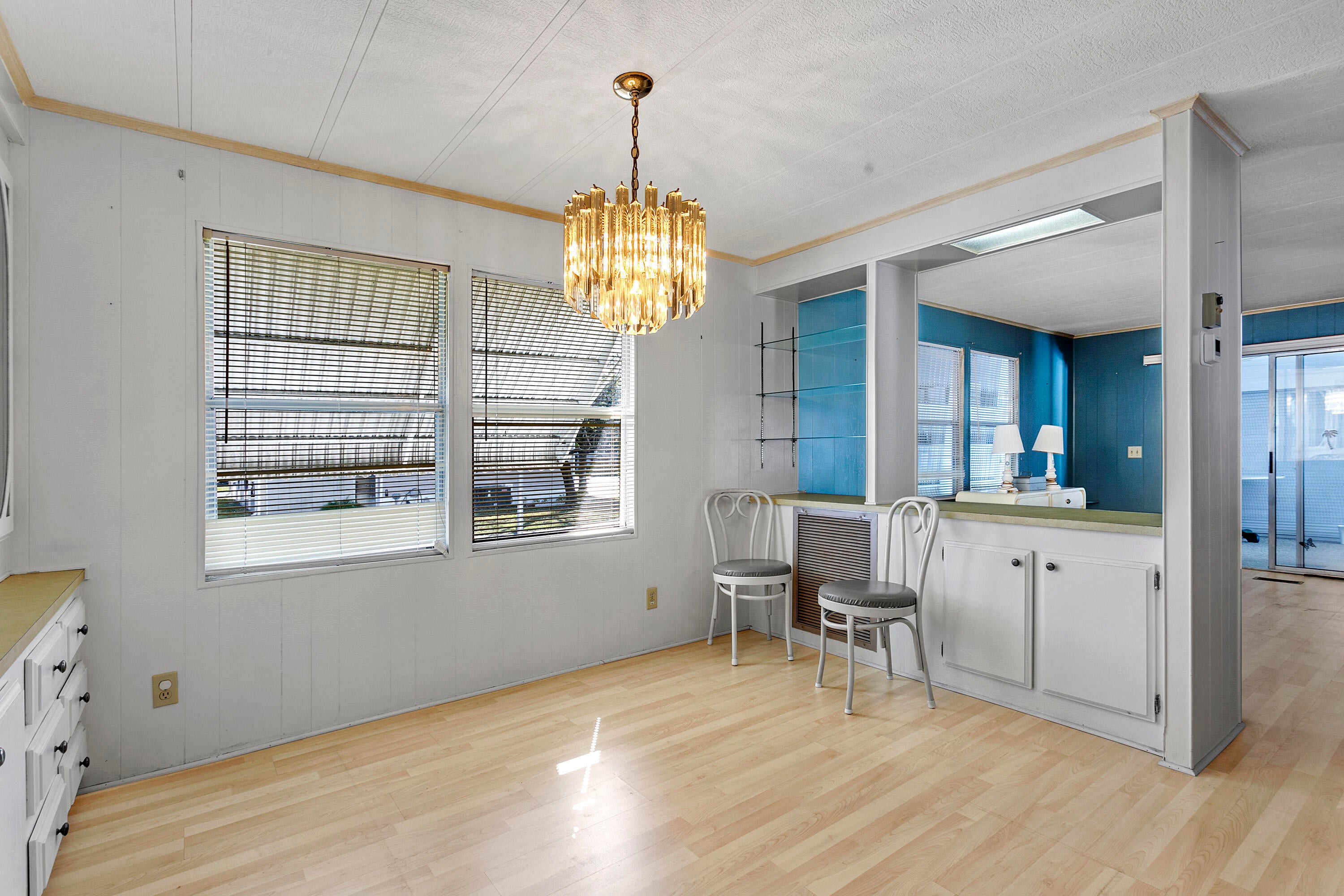 This charming 2-bedroom, 2-bathroom home is located in a desirable Active Adult community with a 24-hour manned gate for added security. The kitchen features beautiful wood cabinets, granite countertops, and a convenient breakfast bar. Wood laminate flooring runs throughout the home, with cozy carpet in the bedrooms. Enjoy a formal dining room with a built-in buffet and a spacious living room filled with natural light. The enclosed Florida room offers additional living space. Newer AC. The master bedroom boasts a walk-in closet, an updated vanity, and a step-in shower. The second bedroom provides ample closet space, and the remodeled guest bathroom. A large double shed offers plenty of extra storage. Community is located close to plenty of dining, shopping and the local Beaches.