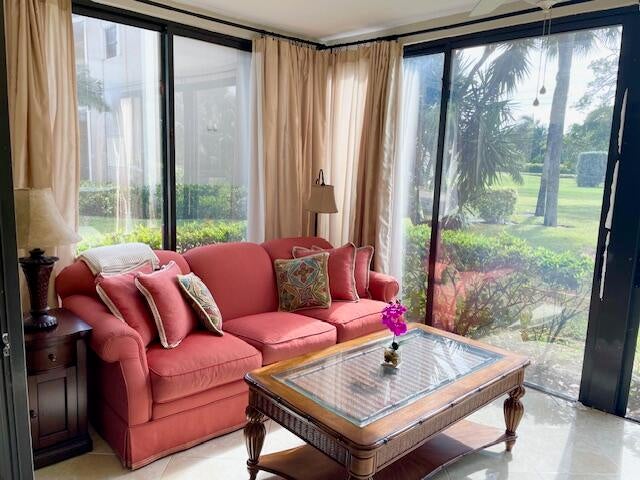 Available 2025 Off-Season May 1-Nov 30 @ $2,600/mo & 2026 Season Dec 1-April 30, 2026 @ $6,800/mo. Walk to the turquoise waters of Jupiter Beach from this 1st floor, 2 bed, 2 bath golf-front residence at the Jupiter Dunes. Relax on the large lanai overlooking the golf course & enjoy the ocean breezes from this great location. This light & bright condo was recently updated and fully equipped for a great vacation get-away in Jupiter; granite kitchen & baths, crown molding; 2 glass enclosed/screened porches; Primary bedroom w/king bed, walk-in closet, ensuite bath & access to lanai overlooking the golf course; guest bedroom w/queen bed; 3 flat screen TV's & full sized washer & dryer. Walk to the beach, golf, shops & numerous waterfront restaurants. A perfect beach retreat!