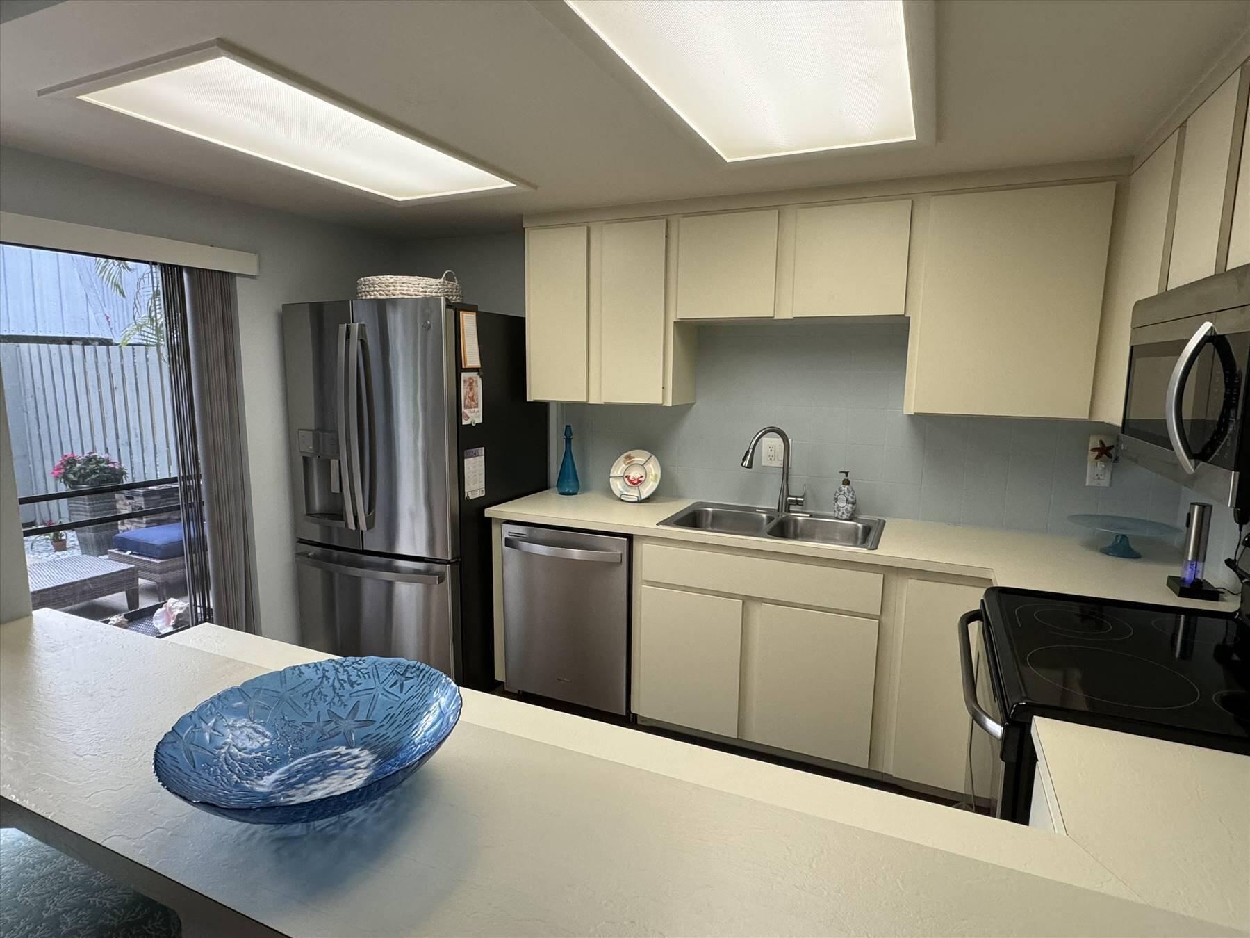 Enjoy this tranquil 3/2 unit townhome community. HOMEOWNERS INSURANCE INCLUDED!! Move in ready, featuring an open kitchen with breakfast bar and all new stainless steel appliances. Living area is light and bright and has a convenient first floor half bath and laundry. Upstairs, there's two oversized masters with updated ensuites. Private fenced courtyard adds to expand your living experience. You will feel like you are on vacation as you enjoy the heated community pool and cabana. Maintenance fee's include cable, lawn and grounds care, pool and termite service, roof maintenance, homeowners insurance, and property management. Ideally located near medical, highways, golf, beaches, boating and marinas, Sandsprit park and downtown Stuart.