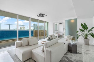 Discover the epitome of opulent living in this palatial 6,854 sq ft condo, offering breathtaking water views from every angle. This modern gem features 5 bedrooms and 5.5 bathrooms and Sub-Zero and Wolf appliances ideal for entertainment. Enjoy seamless indoor-outdoor living with expansive balcony and patio areas, complete with an upper deck boasting your own private pool. The condo is complemented by state-of-the-art building amenities including a poolside Bar & Bistro, poolside cabanas, private cinema and game room, spa & fitness center, hotel-style guest suites, and a Kids Club, to name a few.