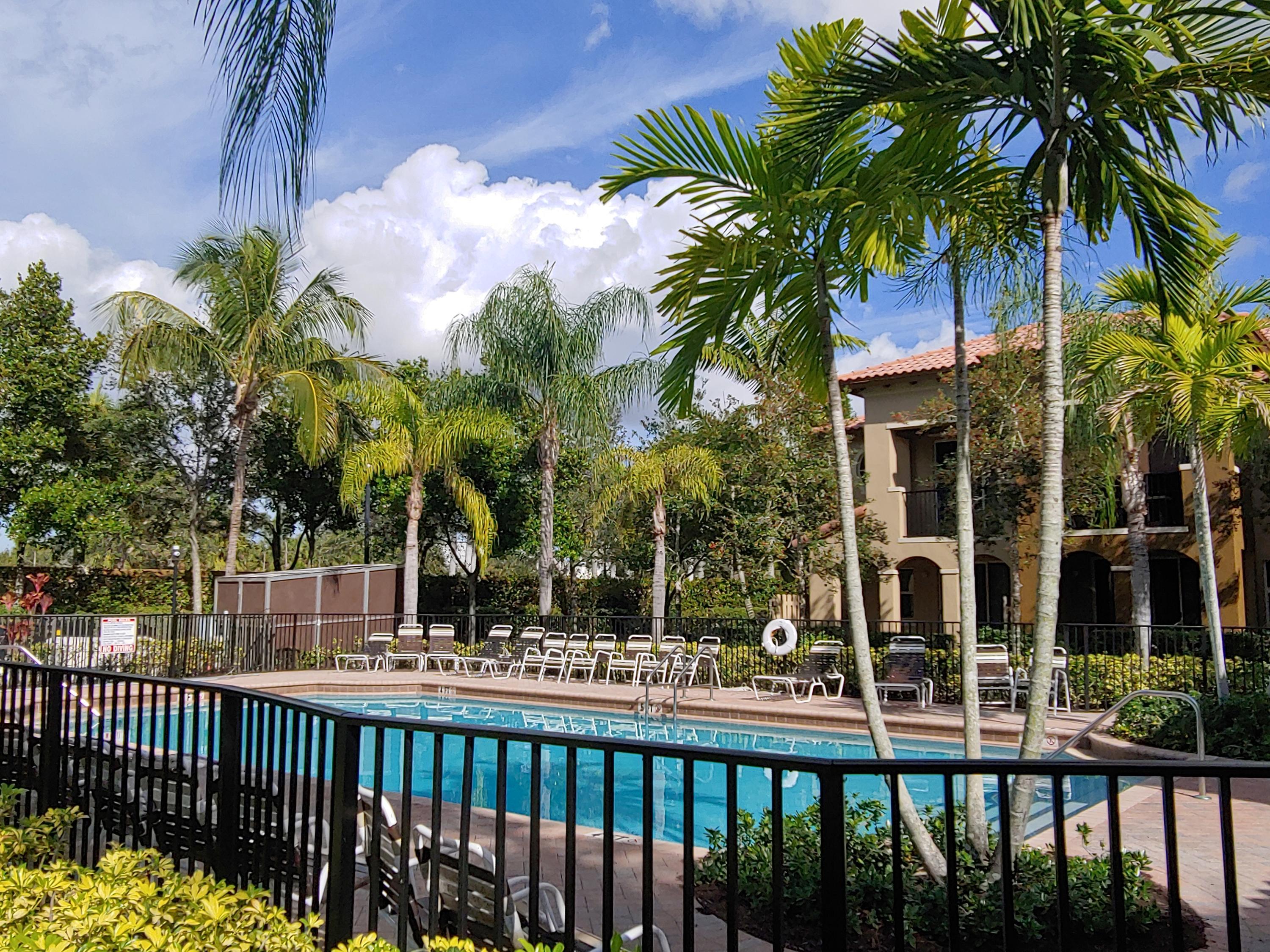 1ST & SECURITY TO MOVE IN! BEAUTIFUL TOWNHOME WITH PEACEFUL NATURAL PRESERVE AND GOLF VIEWS! THIS BRIGHT UNIT FEATURES NEWER LAMINATE FLOORS IN ALL BEDROOMS AND STAIRS, TILE IN LIVING AREAS. 2 YEARS OLD UPGRADED STAINLESS STEEL KITCHEN APPLIANCES, INC DOUBLE OVEN, FULL SIZE WASHER & DRYER. THIS FLOOR PLAN OFFERS ONE BEDROOM WITH A FULL BATHROOM DOWNSTAIRS & TWO OTHER BEDROOMS WITH ITS OWN BATHROOMS INSIDE THE BEDROOMS, UPSTAIRS. MASTER BEDROOM HAS A SPACIOUS BALCONY WITH WONDERFUL PRIVATE VIEWS OF THE PALM FOREST. UNIT COMES WITH TWO ASSIGNED PARKINGS.COMMUNITY OFFERS A SWIMMING POOL, CHILDREN'S PLAYGROUND, SECURITY ON PREMISES, GATED ACCESS & MORE. VERY CONVENIENT LOCATION CLOSE TO MAJOR HIGHWAYS, SHOPPING, PARKS, SCHOOLS, ENTERTAINMENT. IMPORTANT: HOA RESTRICTS TO 600+ CREDIT SCORES, REQUIRES PROOF OF INCOME, 2 CARS MAX - NO EXCEPTIONS! THERE IS NO WAY OF GETTING 3RD CAR PARKED AT GUEST SPOT OR BY ANY OTHER ARRANGEMENTS. PROFESSIONALLY MANAGED. OWNER ALREADY PLACED HOA SEC DEP OF $1000, SO TENANTS DON'T NEED TO PAY EXTRA DEPOSIT AT MOVE IN. THERE IS A MANDATORY $300 MOVE OUT CLEANING FEE DEDUCTED FROM DEPOSIT