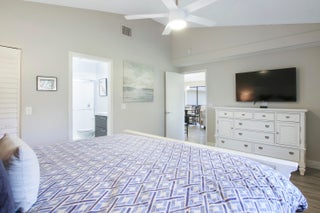 Escape to this immaculate cottage nestled in the heart of PGA National. This fully furnished & equipped retreat invites you to simply bring your suitcase & feel instantly at home. The master suite features a king-sized bed, flat screen TV, and ensuite bathroom. The guest room offers two full-sized beds, with a walk-in shower in the guest bathroom. The updated kitchen & bathrooms showcase elegant tile work & thoughtful appointments. Enjoy the patio, complete with a grill, & a fully equipped kitchen ready for all your culinary needs. This charming home comfortably hosts up to six guests, offering clean & fresh accommodations including linens, towels, cookware, dinnerware, WIFI, & cable. Ideally situated near the community pool & PGA National. Not available Jan - Mar 2026