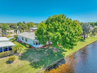 Waterfront! This former model home has 2 bedrooms, den, a custom kitchen with crown molding, island, granite counters and an interior laundry room with slop sink. The sunroom, overlooking the water view, has been updated with new flooring. You will enjoy the blend of comfort & leisure. And, in this 55+vibrant community, residents enjoy a wealth of amenities, including cafe, theatre, golf, tennis, pickle ball, swimming and clubs that cater to diverse interests. There's truly something for everyone in Savanna Club with its 3 clubhouses, pools, fitness centers and so many activities. Located on a cul-de-sac, wider driveway, hurricane panels, new roof 2018, HVAC 2024. Land Lease.