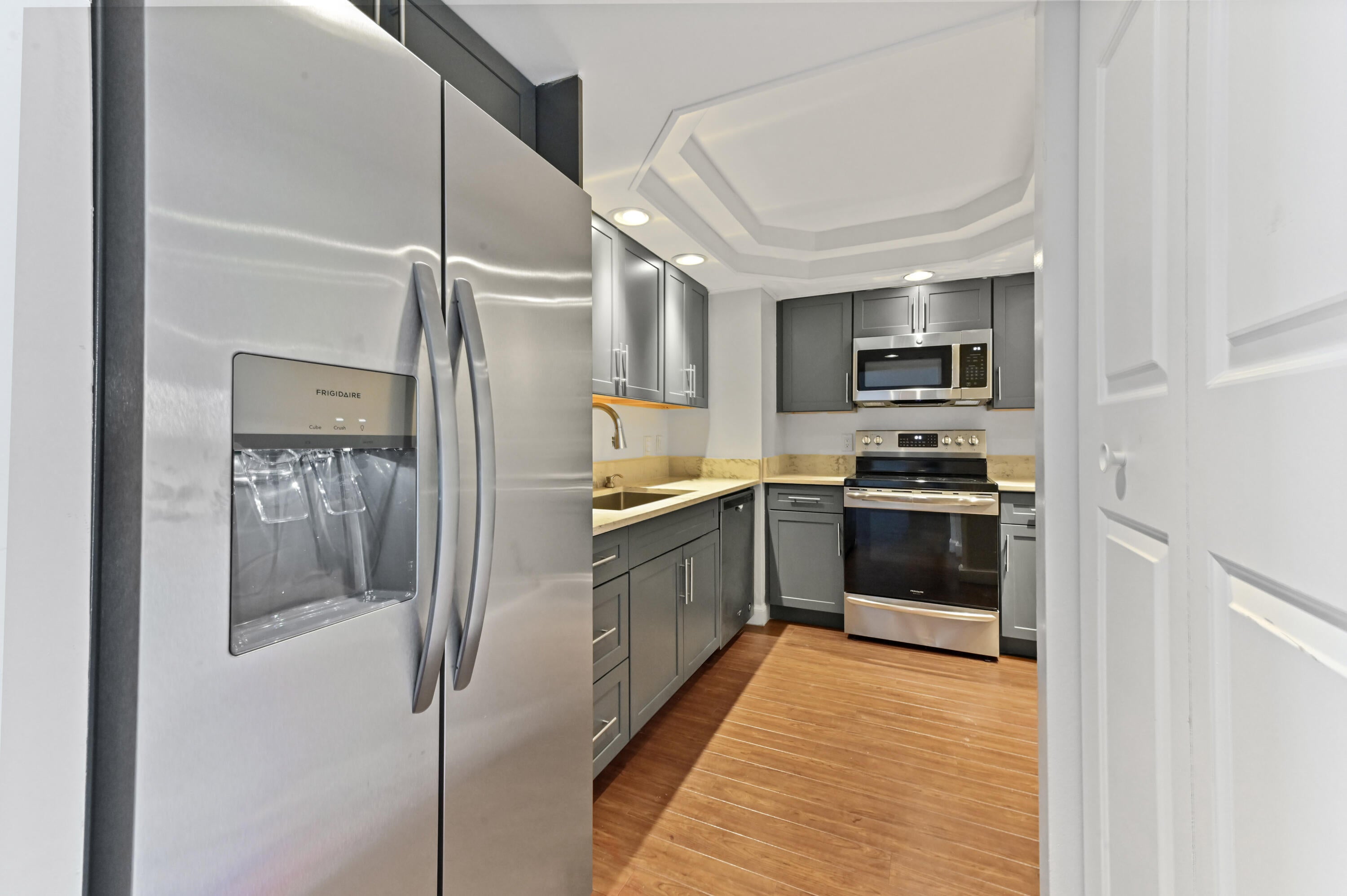 Enjoy breathtaking Intracoastal views from this spacious one-bedroom condo, perfectly designed for comfort and relaxation. The open-concept layout seamlessly blends the living, dining, and kitchen areas, creating an inviting space filled with natural light. A sliding glass door leads to a private balcony, where you can unwind and take in the stunning water views. The beautifully designed kitchen features a cove ceiling, sleek quartz countertops, and ample cabinetry, making it as functional as it is stylish.The serene master suite offers a peaceful retreat, complete with an ensuite bathroom and a spacious closet for all your storage needs. Step outside to experience resort-style living at its finestthis waterfront community boasts a newly renovated pool deck with a tropical ambiance reminiscent of the Florida Keys. Lounge by the heated pool, relax under the Tiki Hut, or take advantage of the private beach, perfect for kayaking or simply soaking up the sun. Located just two blocks from Manatee Lagoon and near the Palm Beach Sailing Club, this building offers an unbeatable lifestyle with endless amenities. Enjoy access to a fishing pier, a newly upgraded fitness center, and a sauna, all within a beautifully maintained waterfront setting. Whether you're looking for a full-time residence or a seasonal retreat, this condo offers the perfect blend of luxury, convenience, and coastal charm!