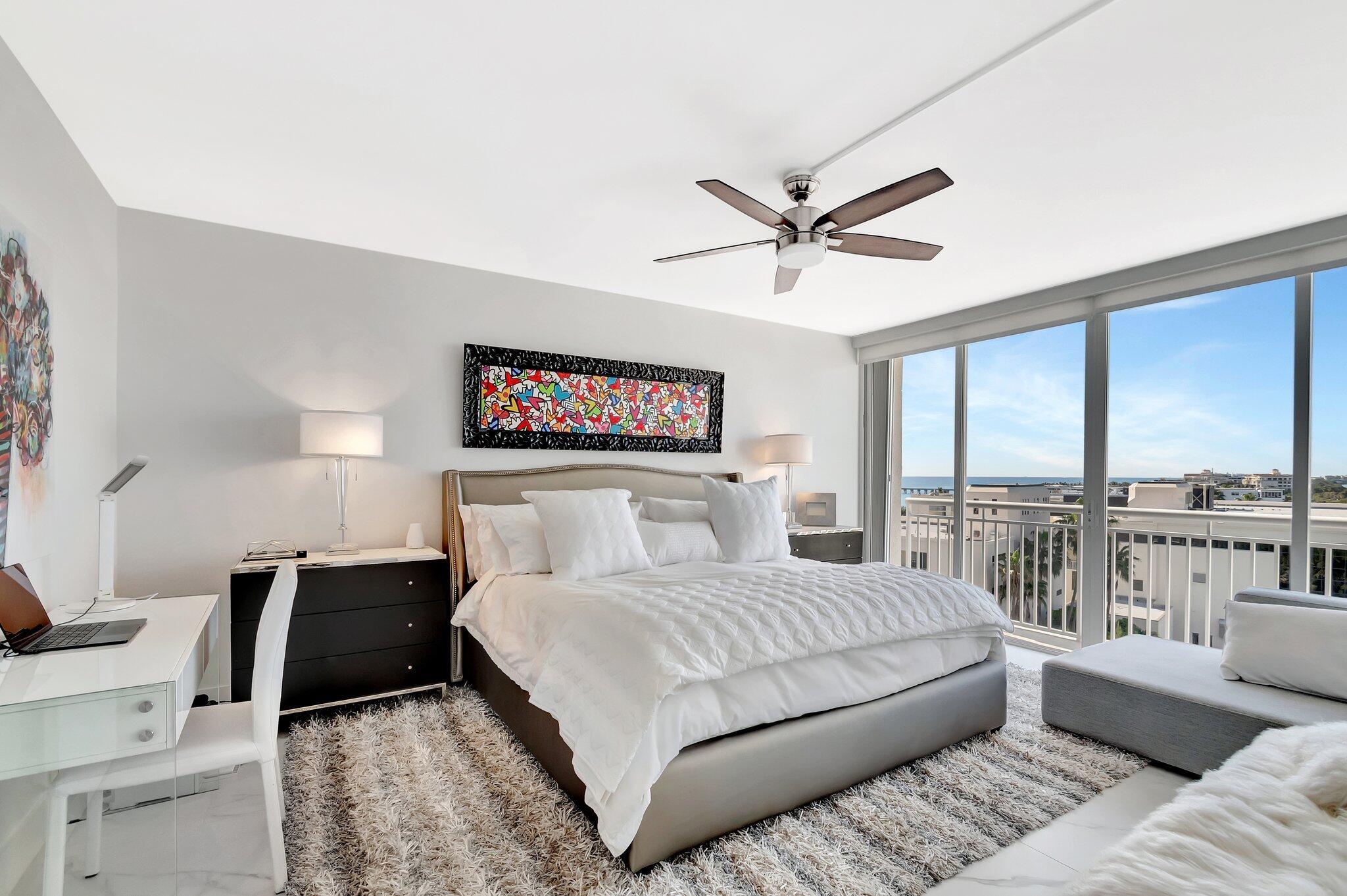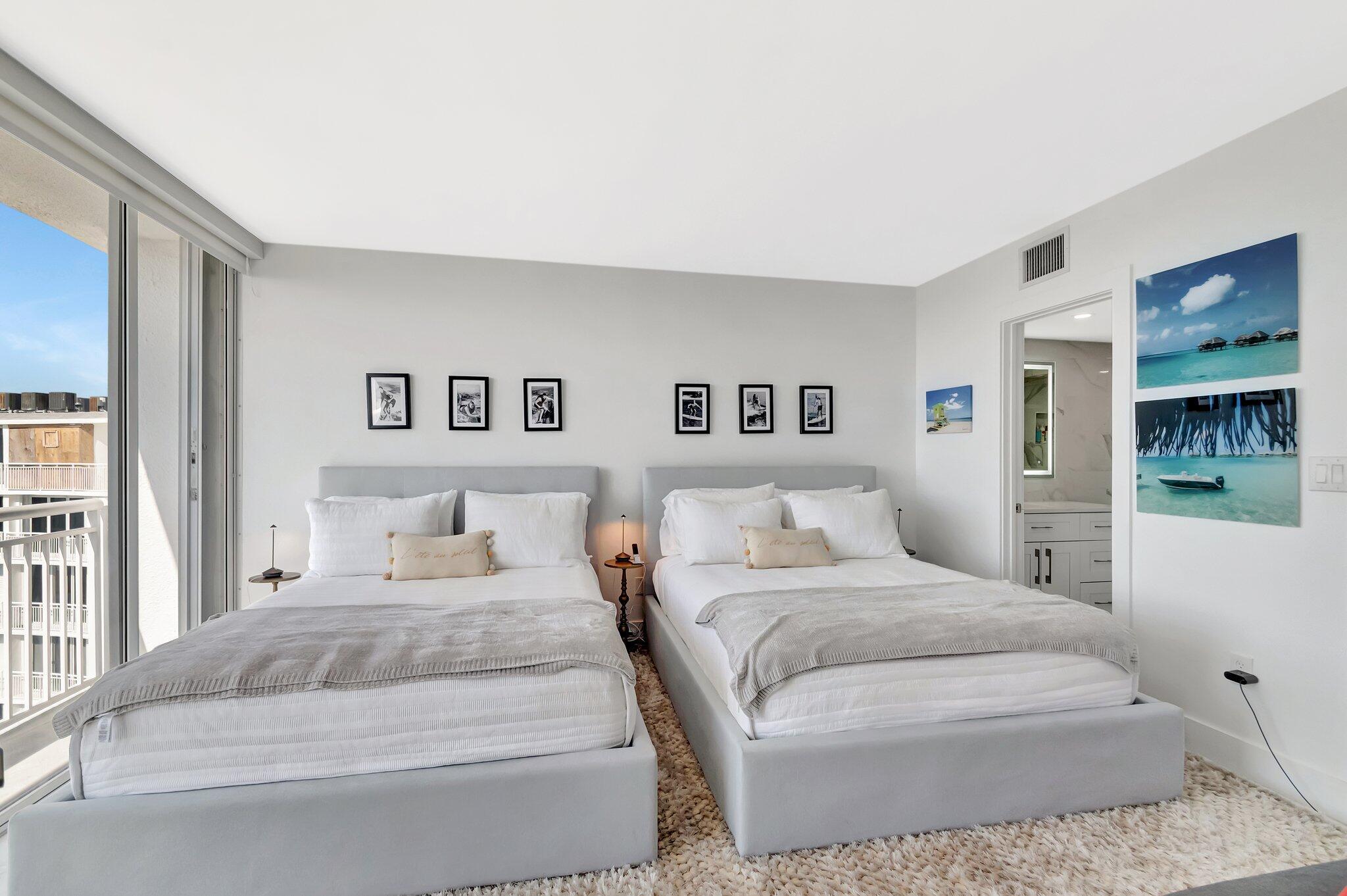 Fabulously updated 2BR/2BA with split en-suites and sweeping ocean, Intracoastal, and pool views. This residence showcases top-of-the-line finishes throughout, including solid wood doors and cabinetry, marble-look ceramic tile floors, and modern baths with glass walk-in showers, Toto commodes, and linear drains. The chef's kitchen features GE Profile stainless appliances, Maytag dishwasher, built-in microwave, plus Miele washer/dryer. Additional highlights: recessed lighting with dimmers, dry bar with wine cooler, and 2021 AC with Reme Halo purifier. Furniture negotiable. Gene Lawrence-designed building with on-site management, 24-hr doorman, gym, heated pool with windscreen, BBQ area, beach cabanas, and showers. Assessments paid--move right in and enjoy Palm Beach living it's finest.Maintenance agreement included in fees, repair or replace appliances and AC. One assigned parking space, secure storage on pool level. Function room, movie nights, and regular social events if you like. Gorgeous wide sandy beaches with protective dunes. 10 minutes to everything! Palm Beach Airport, Palm Beach Island for dining and shopping, Publix, restaurants, and right next door is the Four Seasons. Walk next door for lunch at the beach, a spa day and great for overflow guests. This property will sell quickly at this price, so make your offer today! Furnishing are negotiable. Artwork does NOT convey.