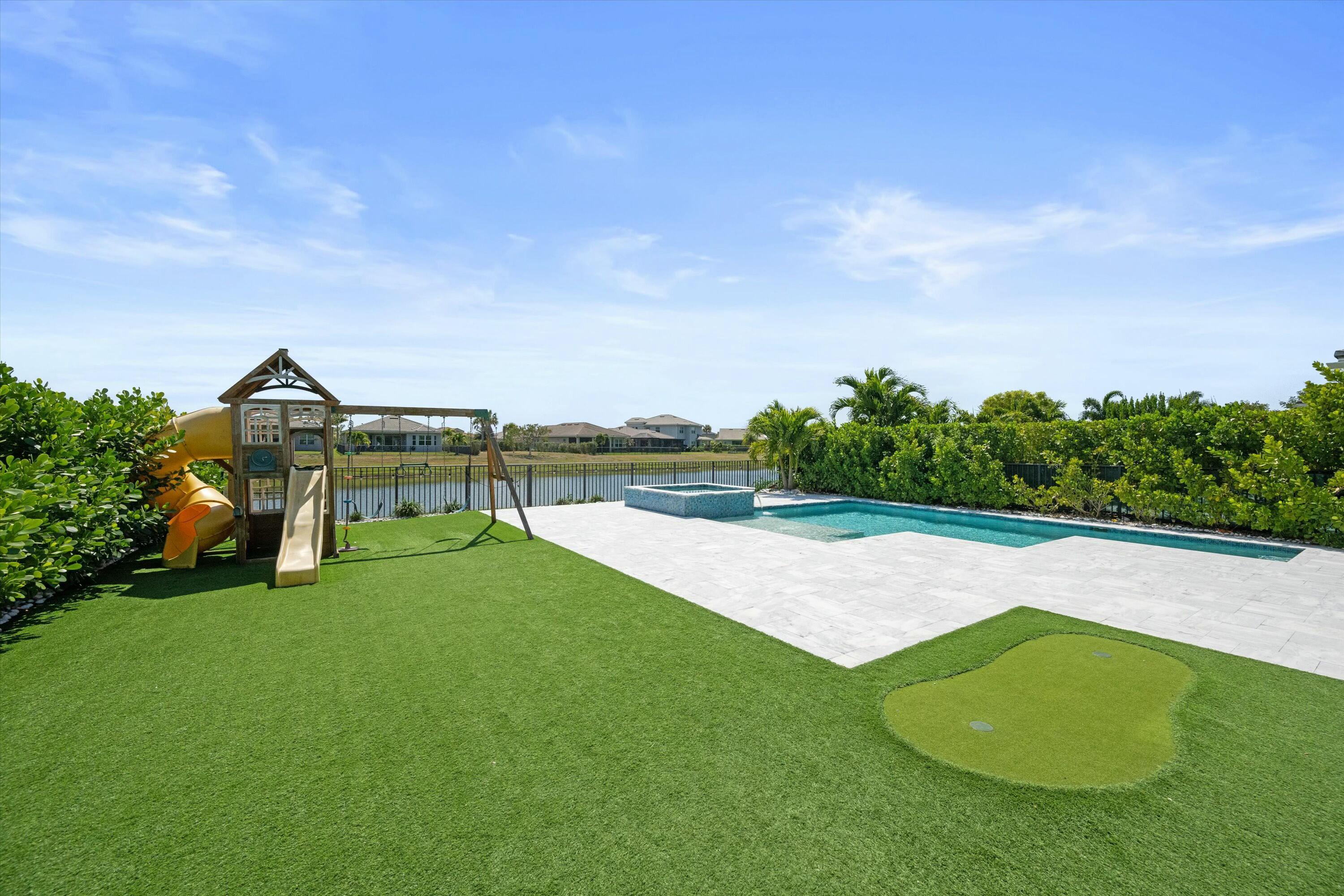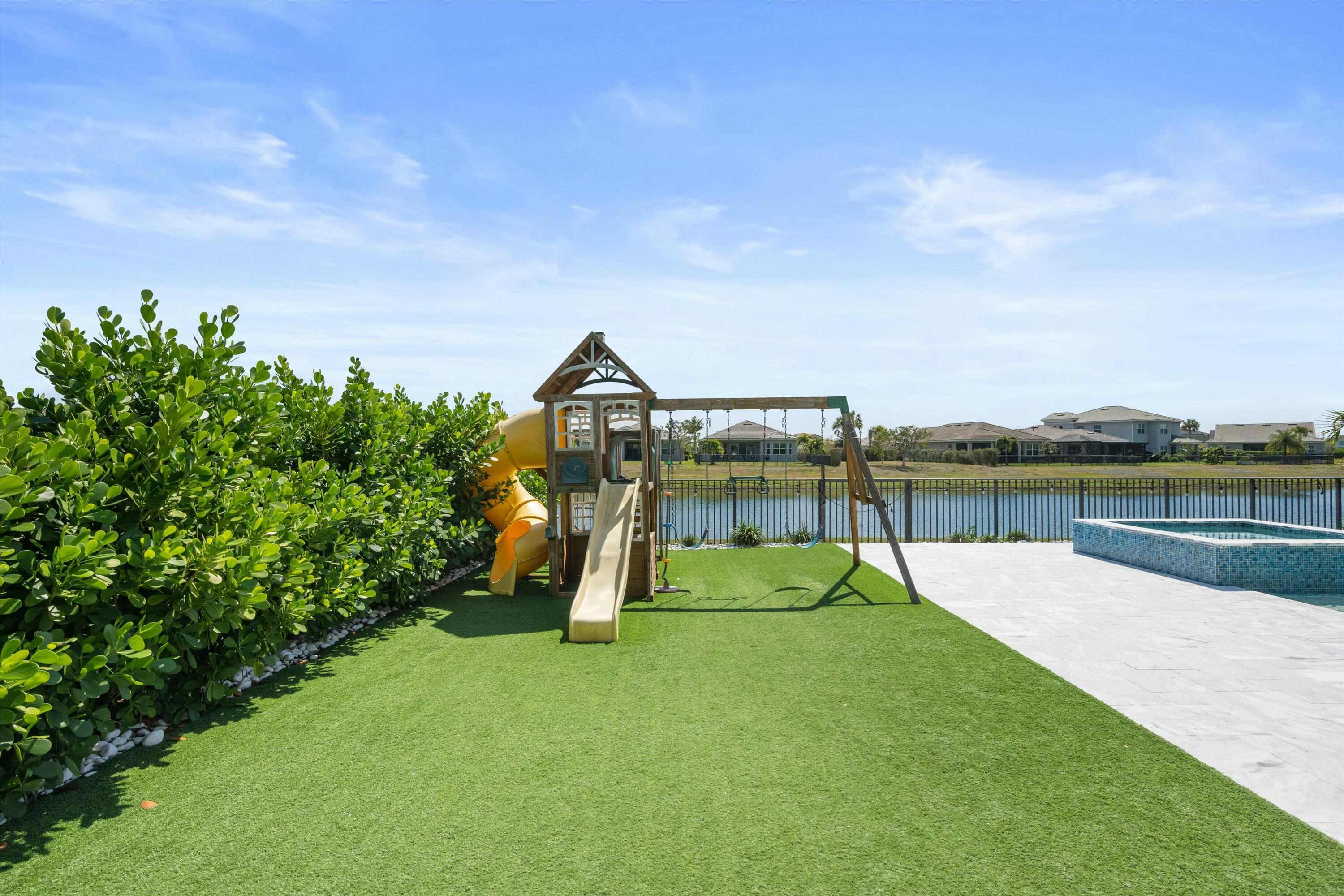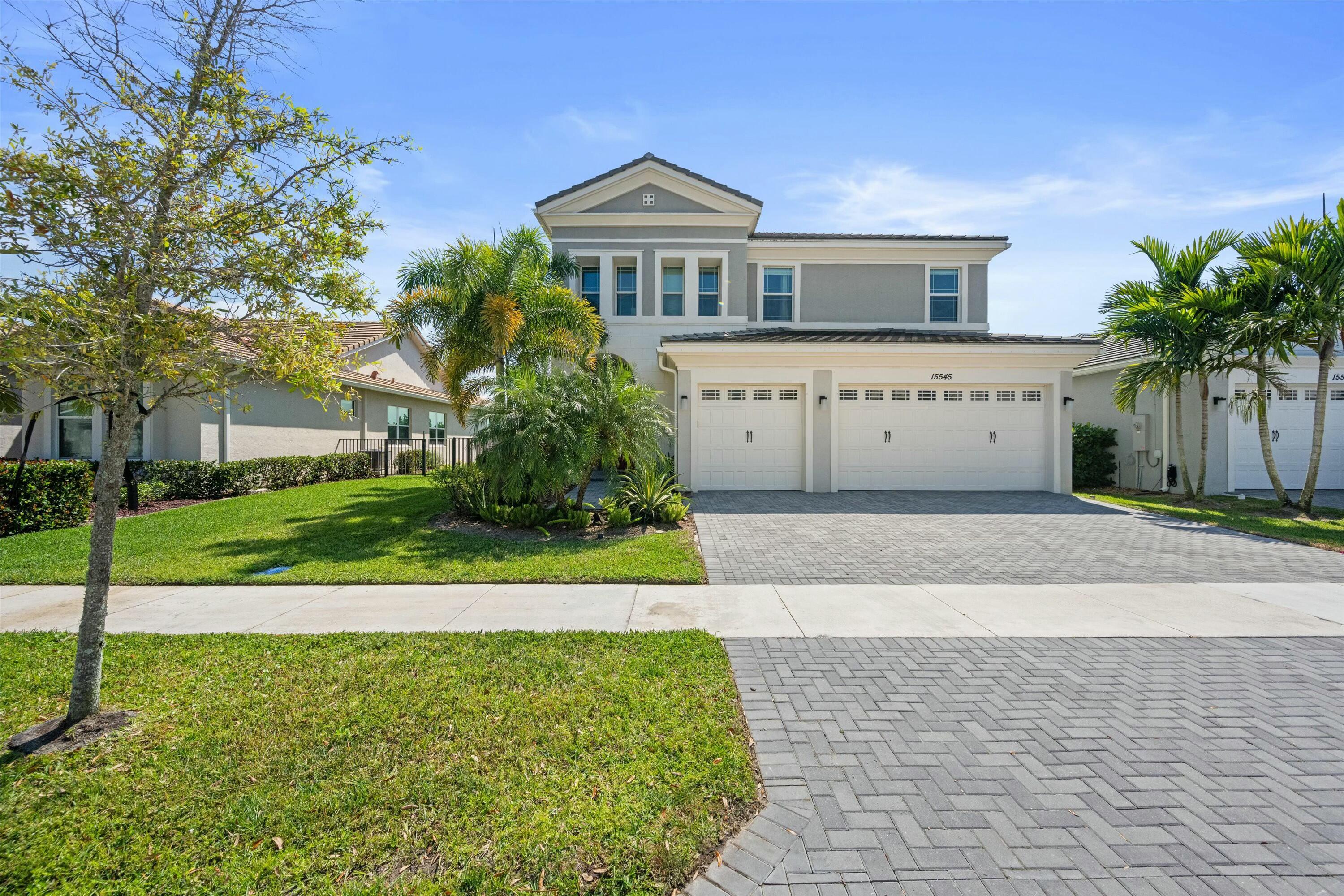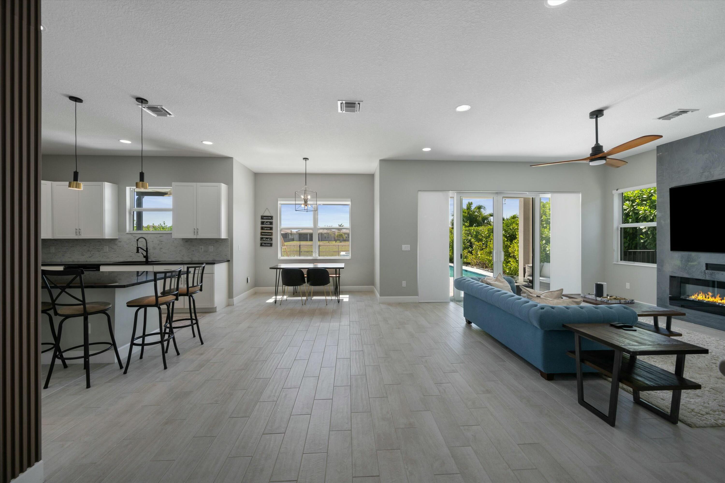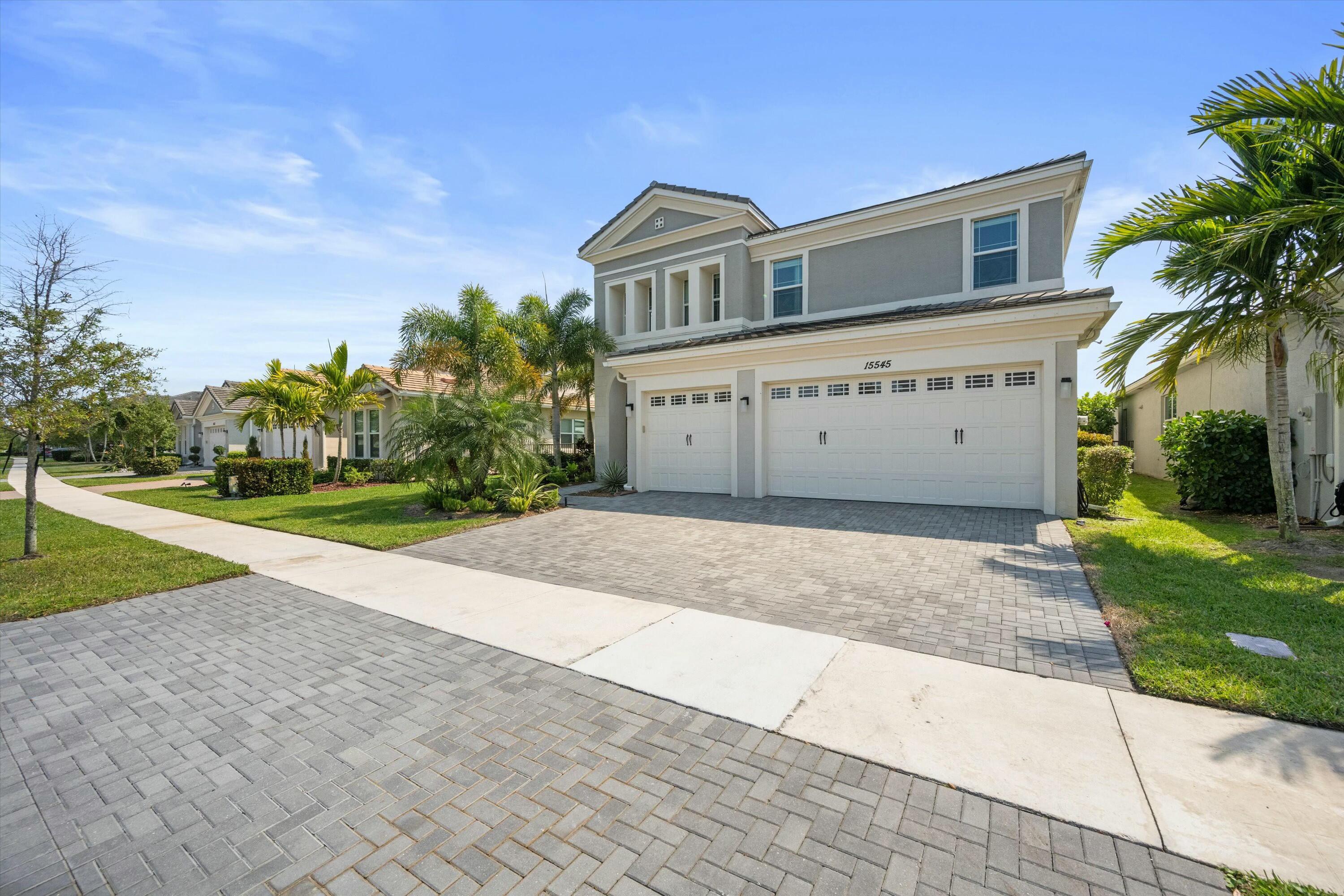 Experience luxury living in this stunning Laurel Model home, located in the prestigious Meadows community of Westlake, FL. This 5-bedroom, 3-bathroom, 2-story residence boasts impact windows throughout, ensuring safety and energy efficiency,complemented by 33 solar panels for exceptional sustainability and reduced energy costs. With 3,071 sq. ft. of living space, a 3-car garage, and a salted and heated pool and spa, this home offers an unparalleled blend of elegance and functionality. The backyard was meticulously designed to ensure maximum yard space, outdoor kitchen and still plenty of yard space for entertaining and playing.As you step inside, you're greeted by soaring ceilings, sleek porcelain tile flooring, and custom designer finishes. The heart of the home is the gourmet kitchen, which showcases black quartz countertops, white shaker-style cabinetry, and a striking marble mosaic backsplash. The oversized island with additional seating is perfect for entertaining, while modern pendant lighting enhances the space. Additional upgrades include a hood exhaust, upgraded refrigerator and dishwasher, and a hidden bookshelf door leading to a spacious pantry. The open-concept living area is anchored by a stunning faux feature wall with a built-in electric fireplace and TV, adding warmth and sophistication. Expansive sliding glass doors lead to the resort-style backyard, creating the ideal indoor-outdoor living experience. The sprawling master suite is a true retreat, complete with a separate sitting area, plush carpeting, and private access to the premium covered balcony overlooking the serene water views. The spa-inspired en-suite bathroom boasts dual granite vanities, espresso-toned cabinetry, a deep soaking tub, and a frameless glass-enclosed shower with floor-to-ceiling tiles. The massive walk-in closet provides ample storage. The additional bedrooms feature carpeted flooring and generous closet space, with one bedroom offering an en-suite bathroom. Step outside to the fully fenced backyard oasis, featuring approximately 1,000 sq. ft. of lush artificial turf, a playground, and stunning landscape enhancements such as backyard clusias, a palm tree, a critter fence, and white stone decor. Enjoy the salted and heated resort-style pool with a raised spa and sun shelf. The expansive travertine deck, stone pathway alongside the house, and breathtaking water views create an idyllic outdoor escape. The covered patio with a built-in gas fire pit and a spectacular custom outdoor kitchen, featuring an expensive infrared grill, custom U-shaped island with decor stones, multiple storage doors, drawer cabinet, sink provision, refrigerator, and bar area, makes outdoor dining a breeze. Additional highlights include concrete flooring between floors for noise reduction, garage floor epoxy, garage ceiling racks, ceiling fans, designer ceiling light fixtures, window shades, smart light switches, faux wall decors, solar panels (33 total), and a gas line. The laundry room boasts black granite counters, wood cabinetry, and a deep utility sink. Located in Westlake's premier community, The Meadows, residents enjoy resort-style amenities, parks, and top-rated schools. Don't miss this exceptional luxury homeschedule your private tour today!