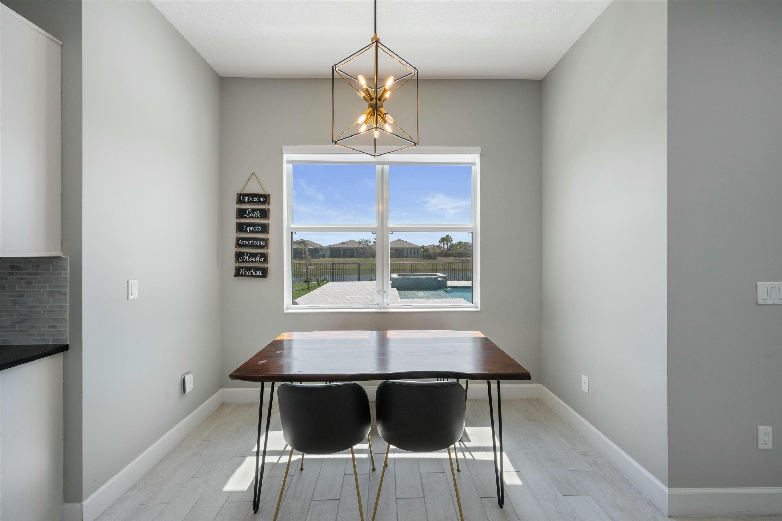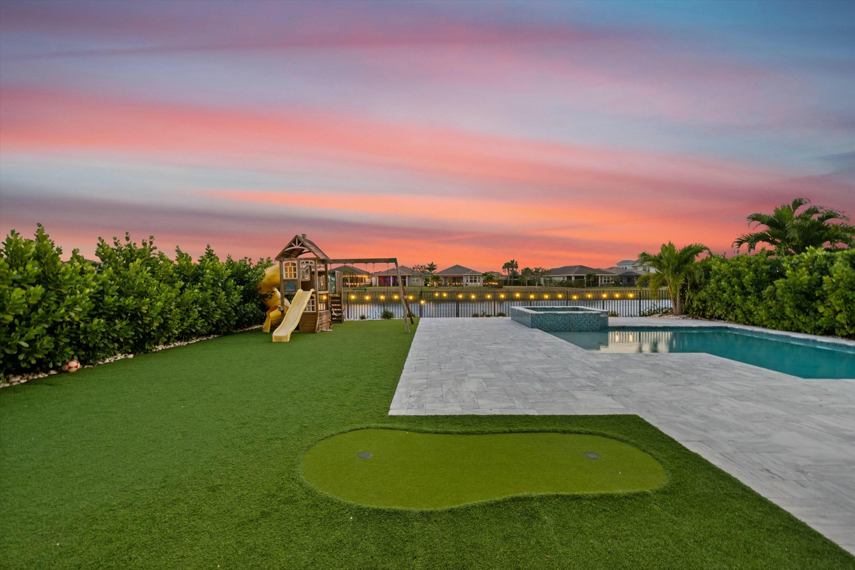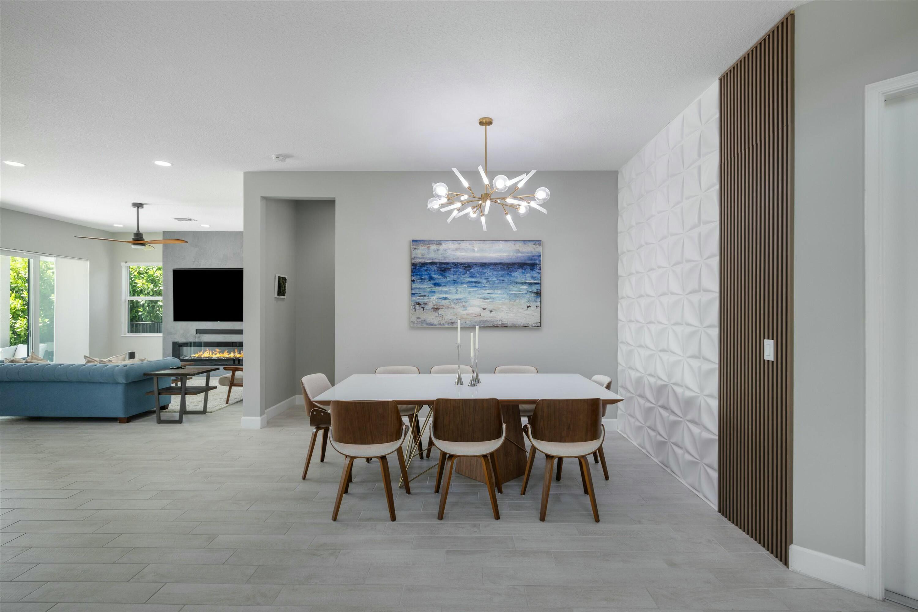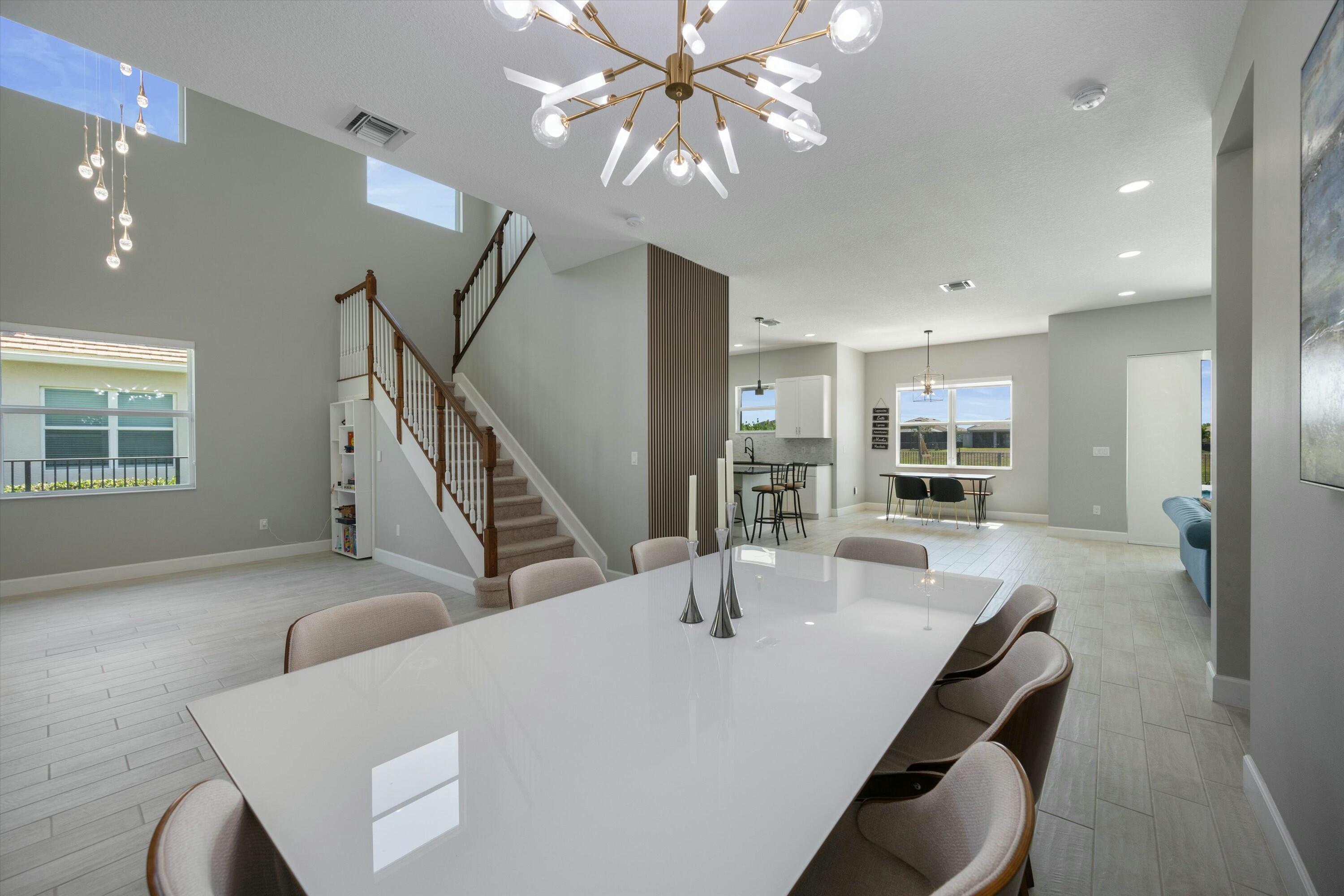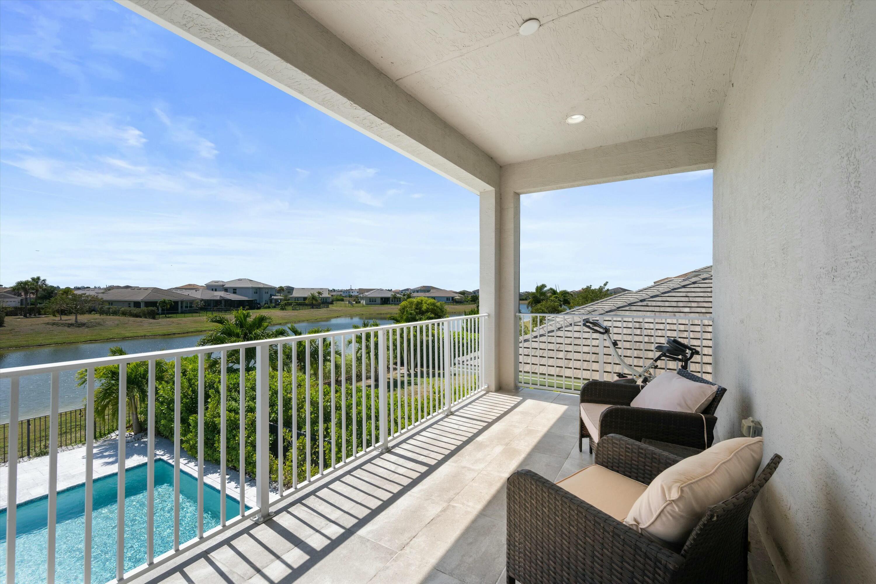 Experience luxury living in this stunning Laurel Model home, located in the prestigious Meadows community of Westlake, FL. This 5-bedroom, 3-bathroom, 2-story residence boasts impact windows throughout, ensuring safety and energy efficiency,complemented by 33 solar panels for exceptional sustainability and reduced energy costs. With 3,071 sq. ft. of living space, a 3-car garage, and a salted and heated pool and spa, this home offers an unparalleled blend of elegance and functionality. The backyard was meticulously designed to ensure maximum yard space, outdoor kitchen and still plenty of yard space for entertaining and playing.As you step inside, you're greeted by soaring ceilings, sleek porcelain tile flooring, and custom designer finishes. The heart of the home is the gourmet kitchen, which showcases black quartz countertops, white shaker-style cabinetry, and a striking marble mosaic backsplash. The oversized island with additional seating is perfect for entertaining, while modern pendant lighting enhances the space. Additional upgrades include a hood exhaust, upgraded refrigerator and dishwasher, and a hidden bookshelf door leading to a spacious pantry. The open-concept living area is anchored by a stunning faux feature wall with a built-in electric fireplace and TV, adding warmth and sophistication. Expansive sliding glass doors lead to the resort-style backyard, creating the ideal indoor-outdoor living experience. The sprawling master suite is a true retreat, complete with a separate sitting area, plush carpeting, and private access to the premium covered balcony overlooking the serene water views. The spa-inspired en-suite bathroom boasts dual granite vanities, espresso-toned cabinetry, a deep soaking tub, and a frameless glass-enclosed shower with floor-to-ceiling tiles. The massive walk-in closet provides ample storage. The additional bedrooms feature carpeted flooring and generous closet space, with one bedroom offering an en-suite bathroom. Step outside to the fully fenced backyard oasis, featuring approximately 1,000 sq. ft. of lush artificial turf, a playground, and stunning landscape enhancements such as backyard clusias, a palm tree, a critter fence, and white stone decor. Enjoy the salted and heated resort-style pool with a raised spa and sun shelf. The expansive travertine deck, stone pathway alongside the house, and breathtaking water views create an idyllic outdoor escape. The covered patio with a built-in gas fire pit and a spectacular custom outdoor kitchen, featuring an expensive infrared grill, custom U-shaped island with decor stones, multiple storage doors, drawer cabinet, sink provision, refrigerator, and bar area, makes outdoor dining a breeze. Additional highlights include concrete flooring between floors for noise reduction, garage floor epoxy, garage ceiling racks, ceiling fans, designer ceiling light fixtures, window shades, smart light switches, faux wall decors, solar panels (33 total), and a gas line. The laundry room boasts black granite counters, wood cabinetry, and a deep utility sink. Located in Westlake's premier community, The Meadows, residents enjoy resort-style amenities, parks, and top-rated schools. Don't miss this exceptional luxury homeschedule your private tour today!