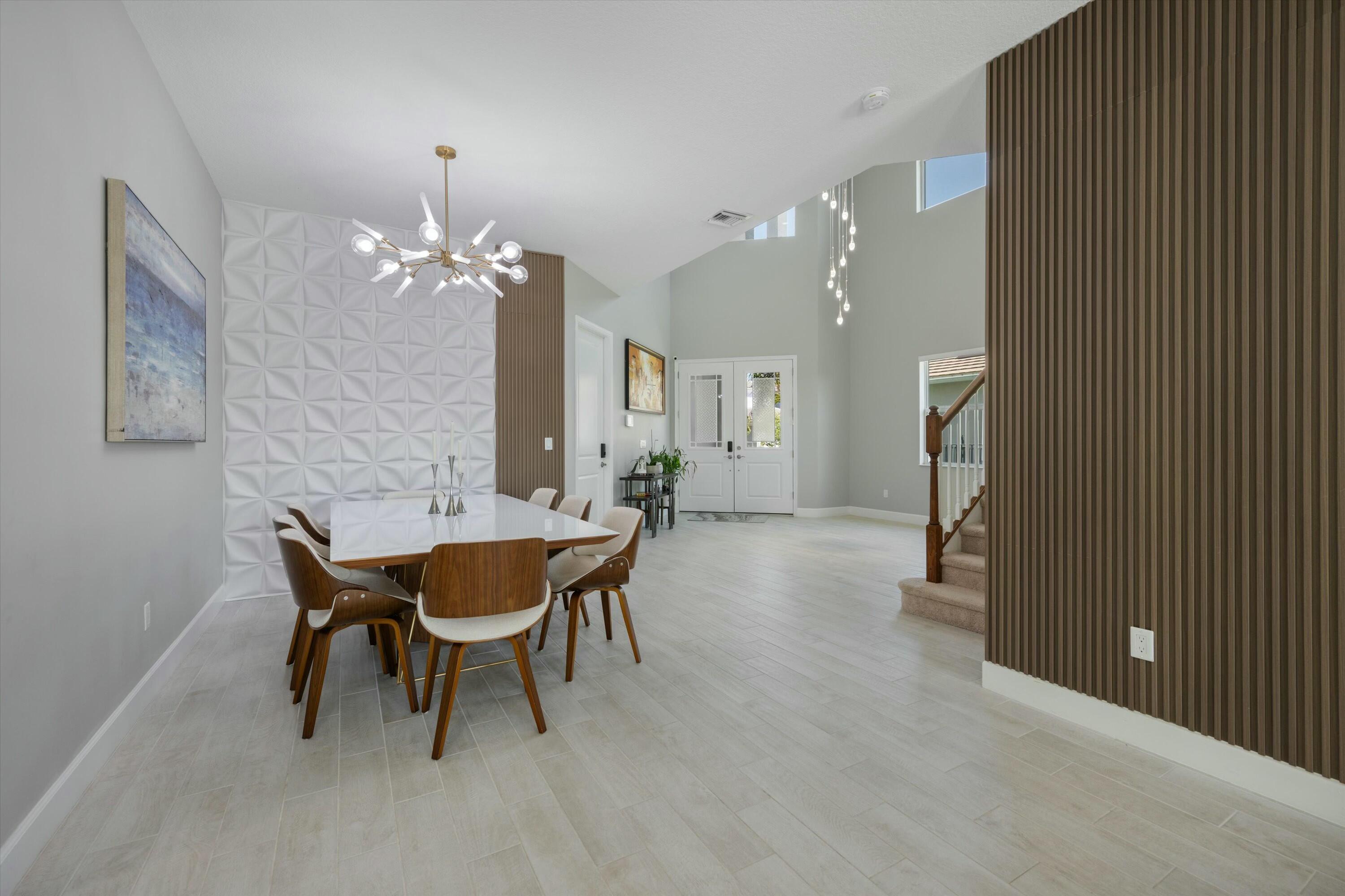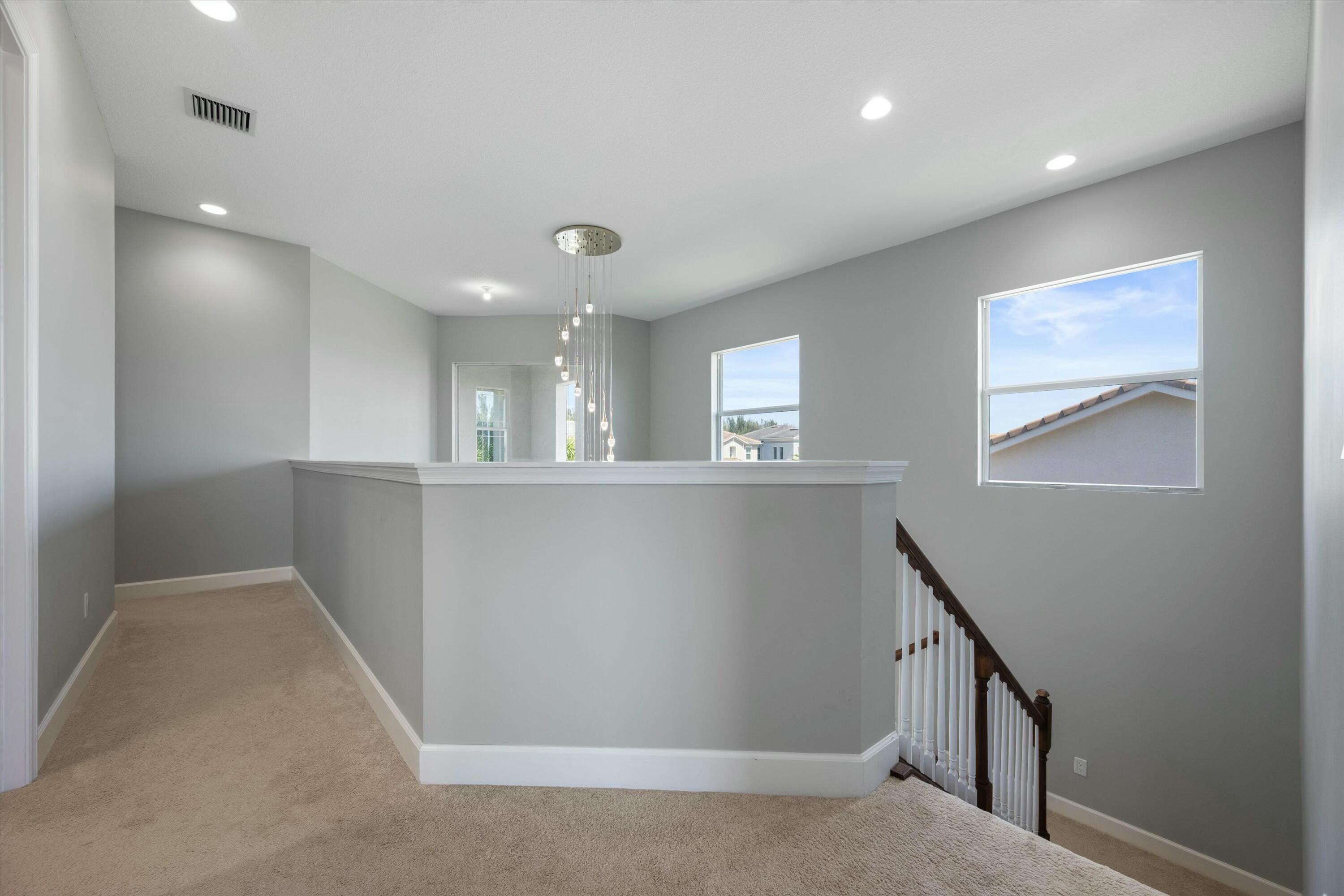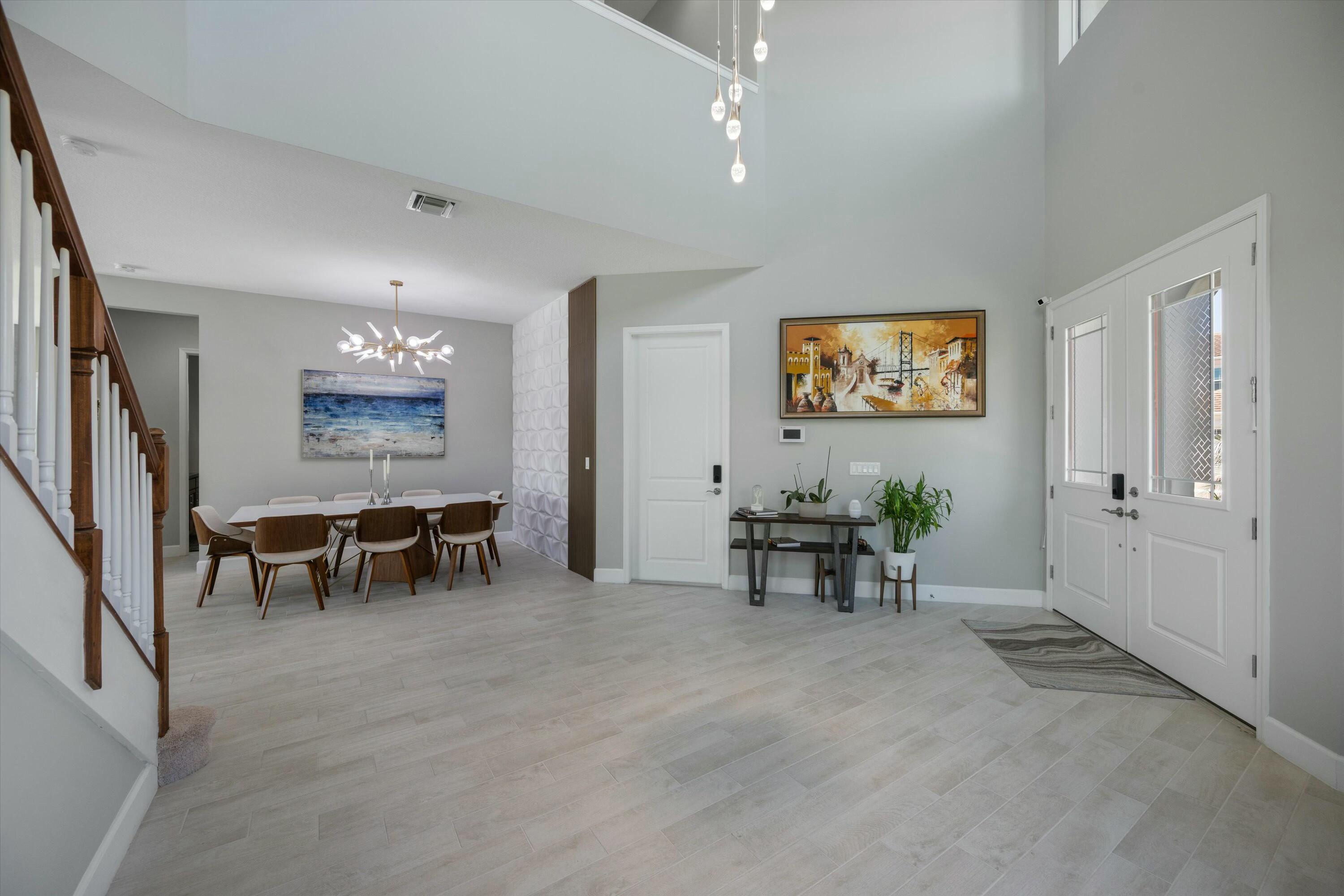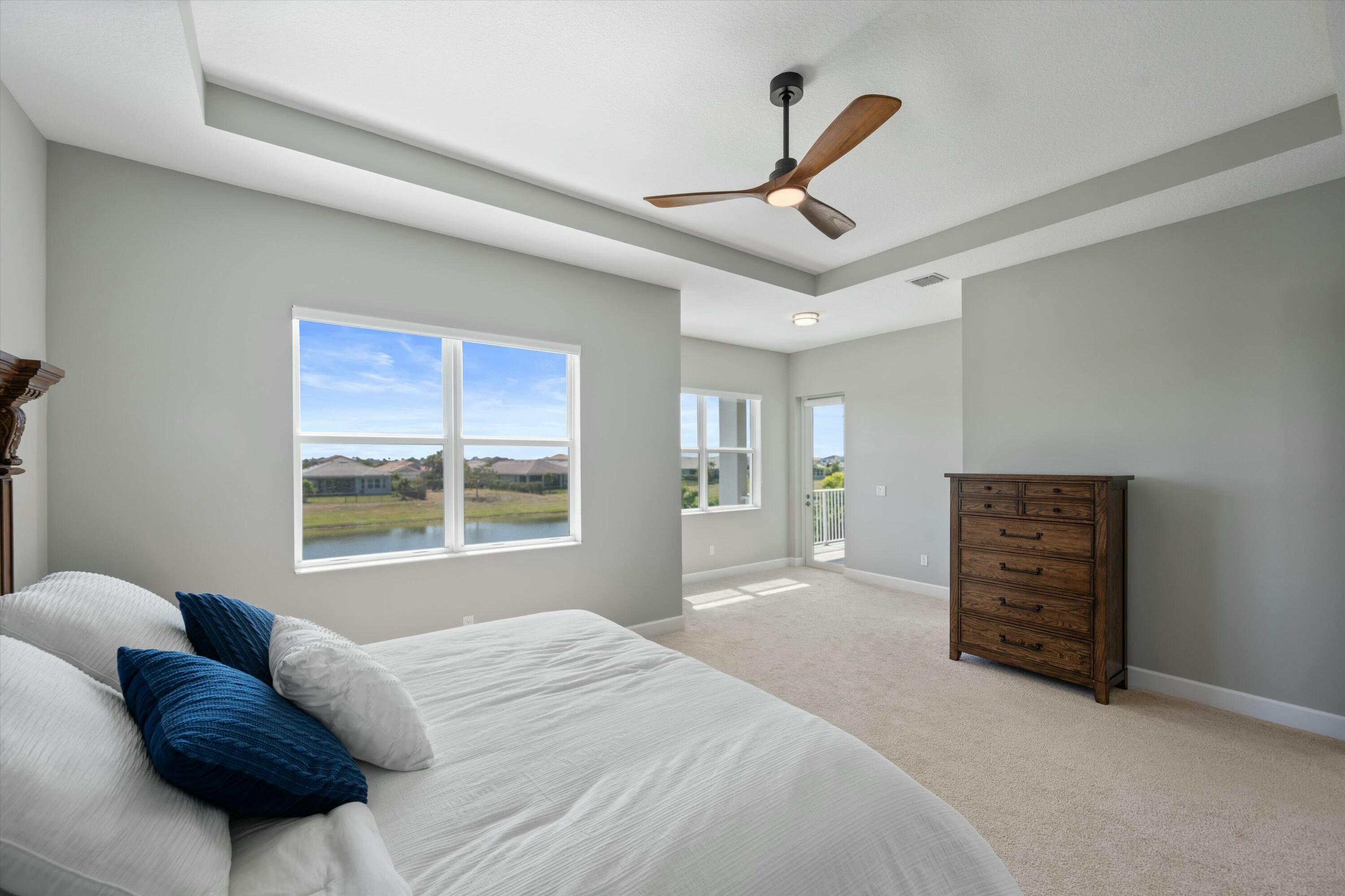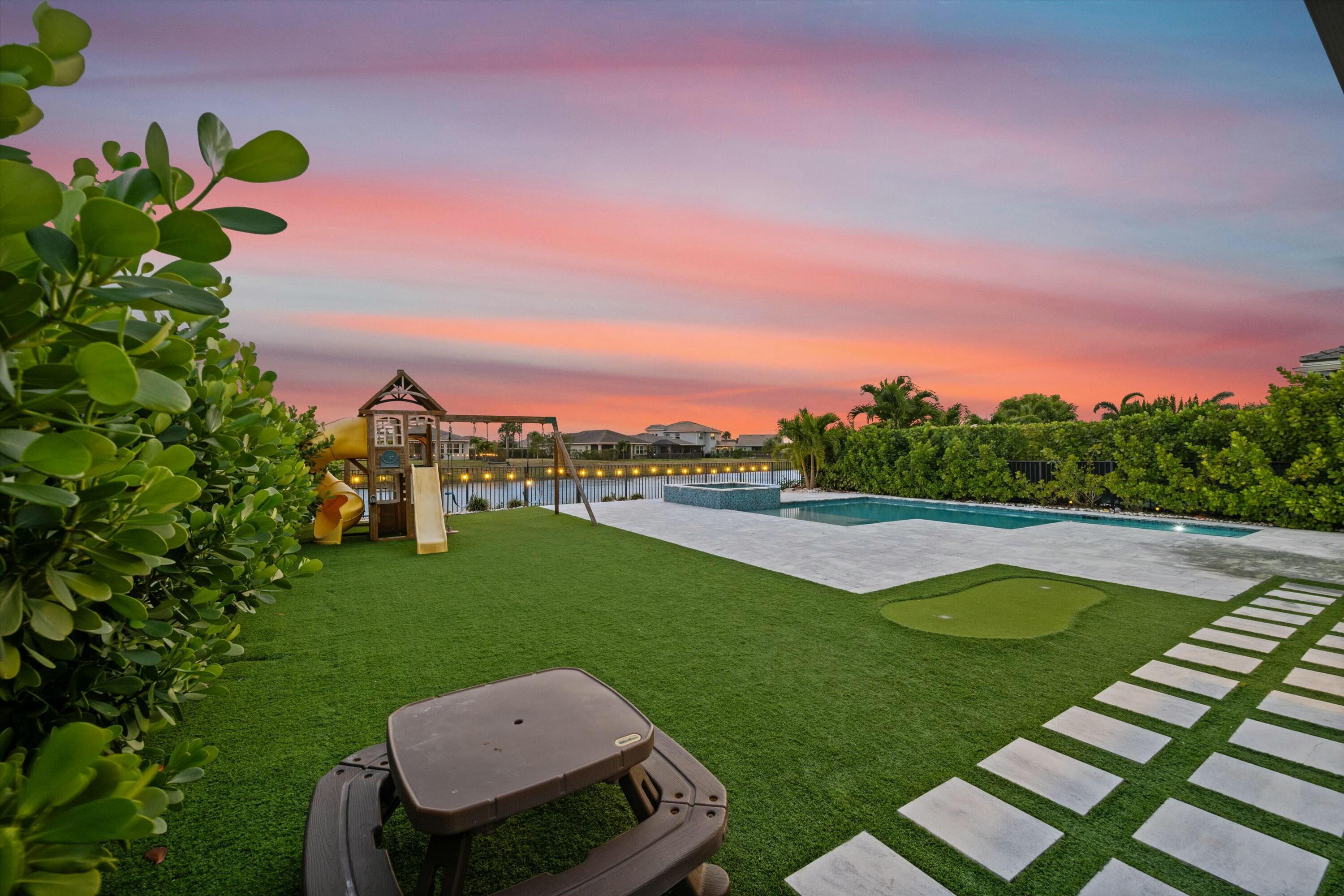 Experience luxury living in this stunning Laurel Model home, located in the prestigious Meadows community of Westlake, FL. This 5-bedroom, 3-bathroom, 2-story residence boasts impact windows throughout, ensuring safety and energy efficiency,complemented by 33 solar panels for exceptional sustainability and reduced energy costs. With 3,071 sq. ft. of living space, a 3-car garage, and a salted and heated pool and spa, this home offers an unparalleled blend of elegance and functionality. The backyard was meticulously designed to ensure maximum yard space, outdoor kitchen and still plenty of yard space for entertaining and playing.As you step inside, you're greeted by soaring ceilings, sleek porcelain tile flooring, and custom designer finishes. The heart of the home is the gourmet kitchen, which showcases black quartz countertops, white shaker-style cabinetry, and a striking marble mosaic backsplash. The oversized island with additional seating is perfect for entertaining, while modern pendant lighting enhances the space. Additional upgrades include a hood exhaust, upgraded refrigerator and dishwasher, and a hidden bookshelf door leading to a spacious pantry. The open-concept living area is anchored by a stunning faux feature wall with a built-in electric fireplace and TV, adding warmth and sophistication. Expansive sliding glass doors lead to the resort-style backyard, creating the ideal indoor-outdoor living experience. The sprawling master suite is a true retreat, complete with a separate sitting area, plush carpeting, and private access to the premium covered balcony overlooking the serene water views. The spa-inspired en-suite bathroom boasts dual granite vanities, espresso-toned cabinetry, a deep soaking tub, and a frameless glass-enclosed shower with floor-to-ceiling tiles. The massive walk-in closet provides ample storage. The additional bedrooms feature carpeted flooring and generous closet space, with one bedroom offering an en-suite bathroom. Step outside to the fully fenced backyard oasis, featuring approximately 1,000 sq. ft. of lush artificial turf, a playground, and stunning landscape enhancements such as backyard clusias, a palm tree, a critter fence, and white stone decor. Enjoy the salted and heated resort-style pool with a raised spa and sun shelf. The expansive travertine deck, stone pathway alongside the house, and breathtaking water views create an idyllic outdoor escape. The covered patio with a built-in gas fire pit and a spectacular custom outdoor kitchen, featuring an expensive infrared grill, custom U-shaped island with decor stones, multiple storage doors, drawer cabinet, sink provision, refrigerator, and bar area, makes outdoor dining a breeze. Additional highlights include concrete flooring between floors for noise reduction, garage floor epoxy, garage ceiling racks, ceiling fans, designer ceiling light fixtures, window shades, smart light switches, faux wall decors, solar panels (33 total), and a gas line. The laundry room boasts black granite counters, wood cabinetry, and a deep utility sink. Located in Westlake's premier community, The Meadows, residents enjoy resort-style amenities, parks, and top-rated schools. Don't miss this exceptional luxury homeschedule your private tour today!