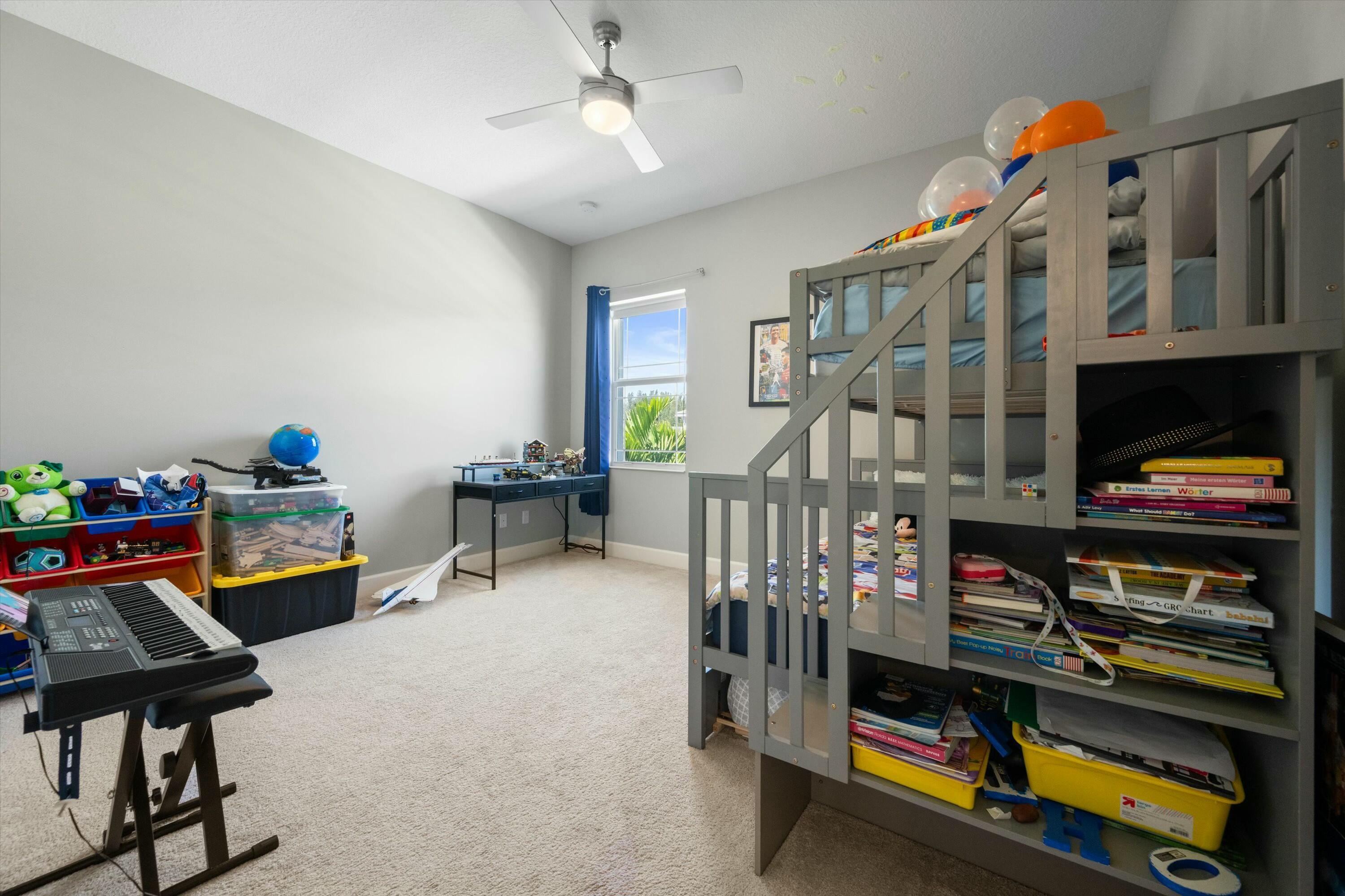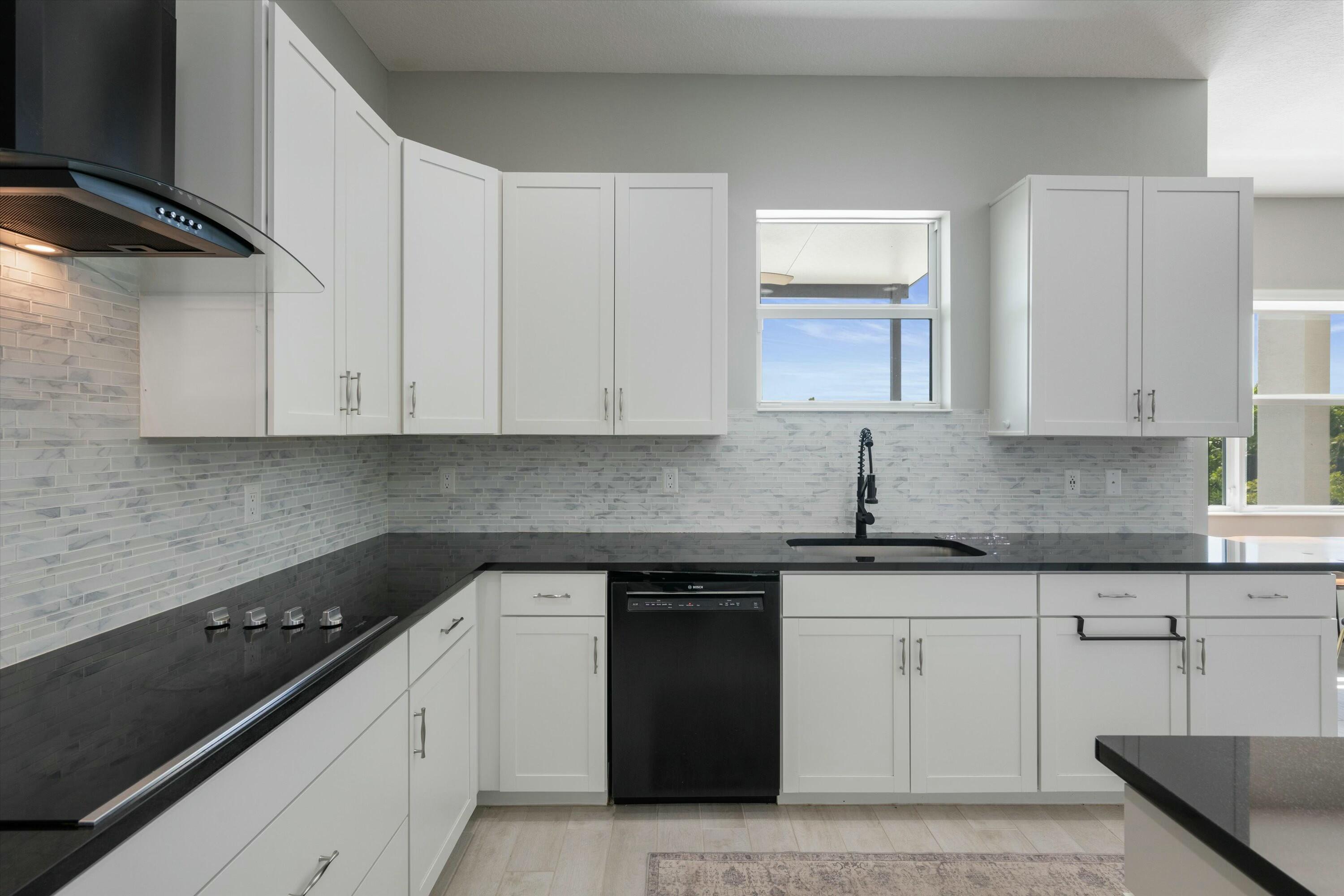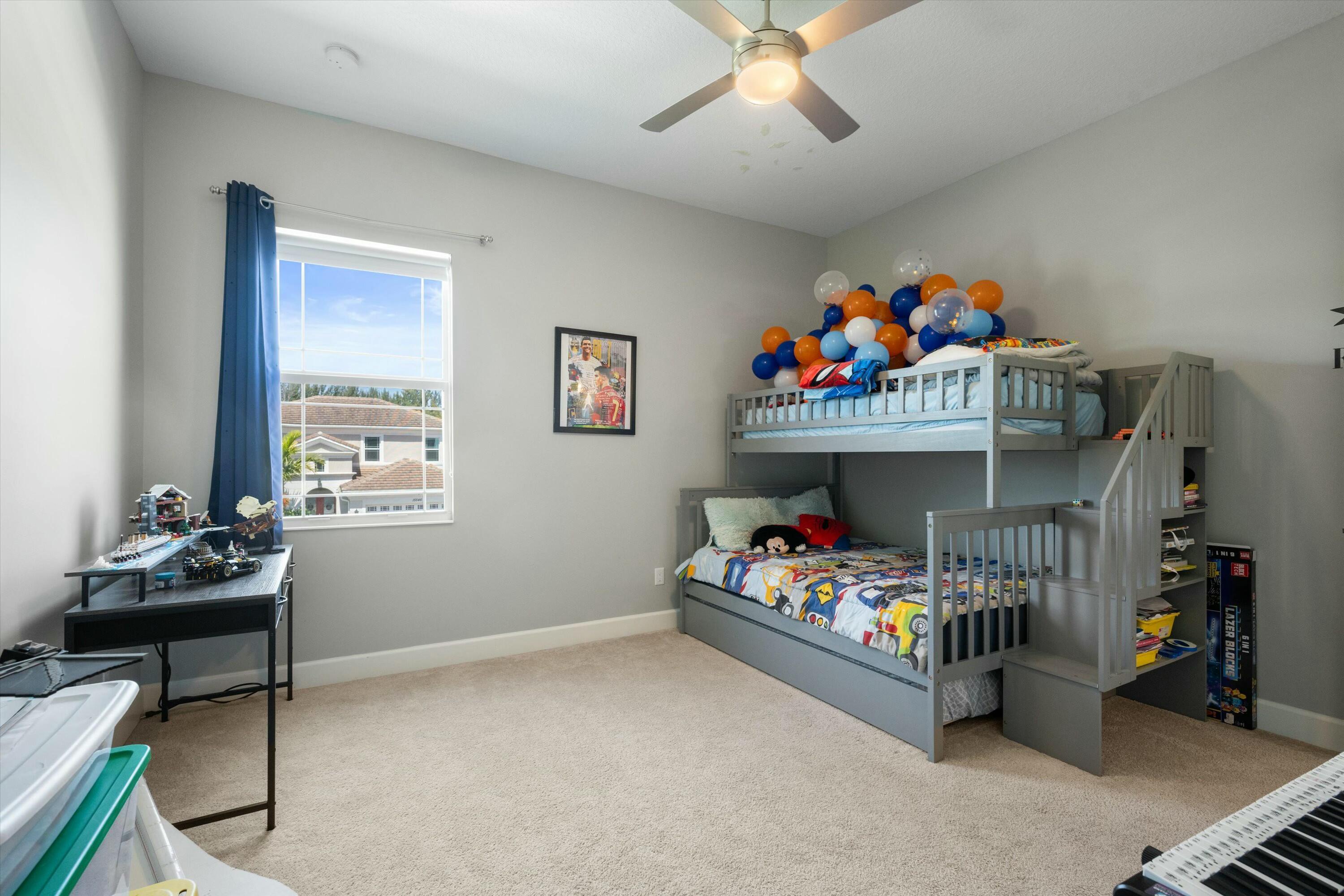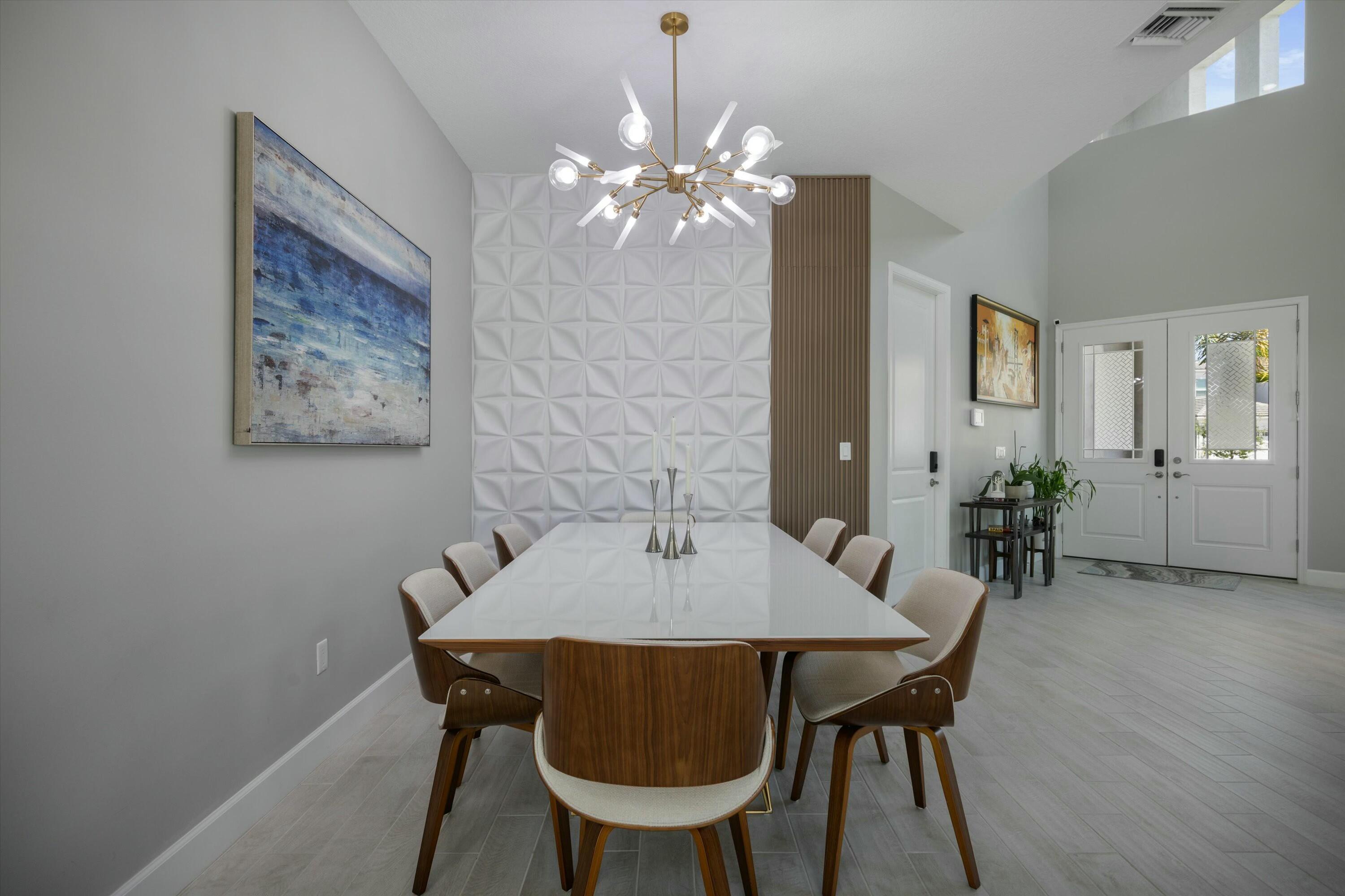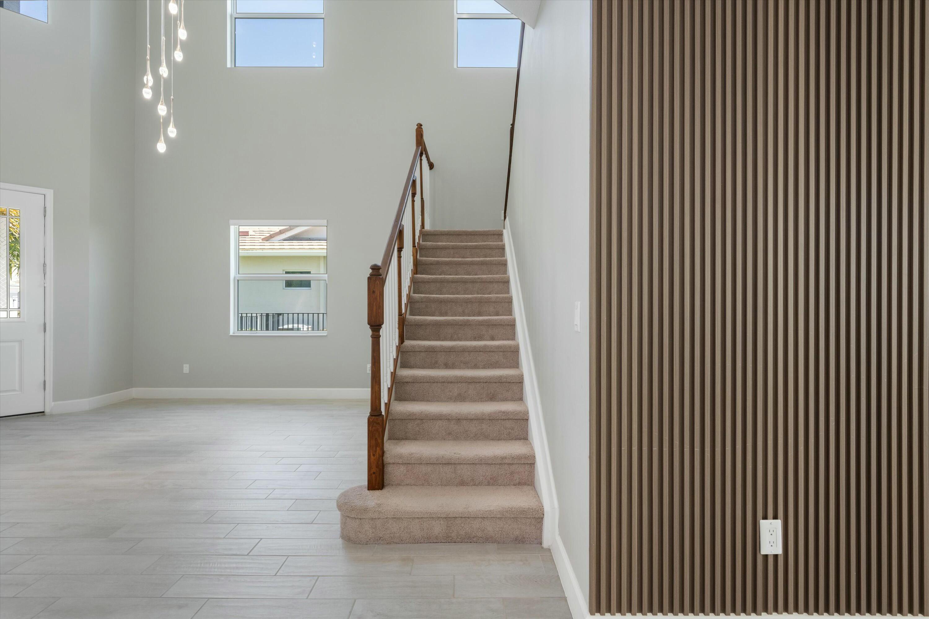 Experience luxury living in this stunning Laurel Model home, located in the prestigious Meadows community of Westlake, FL. This 5-bedroom, 3-bathroom, 2-story residence boasts impact windows throughout, ensuring safety and energy efficiency,complemented by 33 solar panels for exceptional sustainability and reduced energy costs. With 3,071 sq. ft. of living space, a 3-car garage, and a salted and heated pool and spa, this home offers an unparalleled blend of elegance and functionality. The backyard was meticulously designed to ensure maximum yard space, outdoor kitchen and still plenty of yard space for entertaining and playing.As you step inside, you're greeted by soaring ceilings, sleek porcelain tile flooring, and custom designer finishes. The heart of the home is the gourmet kitchen, which showcases black quartz countertops, white shaker-style cabinetry, and a striking marble mosaic backsplash. The oversized island with additional seating is perfect for entertaining, while modern pendant lighting enhances the space. Additional upgrades include a hood exhaust, upgraded refrigerator and dishwasher, and a hidden bookshelf door leading to a spacious pantry. The open-concept living area is anchored by a stunning faux feature wall with a built-in electric fireplace and TV, adding warmth and sophistication. Expansive sliding glass doors lead to the resort-style backyard, creating the ideal indoor-outdoor living experience. The sprawling master suite is a true retreat, complete with a separate sitting area, plush carpeting, and private access to the premium covered balcony overlooking the serene water views. The spa-inspired en-suite bathroom boasts dual granite vanities, espresso-toned cabinetry, a deep soaking tub, and a frameless glass-enclosed shower with floor-to-ceiling tiles. The massive walk-in closet provides ample storage. The additional bedrooms feature carpeted flooring and generous closet space, with one bedroom offering an en-suite bathroom. Step outside to the fully fenced backyard oasis, featuring approximately 1,000 sq. ft. of lush artificial turf, a playground, and stunning landscape enhancements such as backyard clusias, a palm tree, a critter fence, and white stone decor. Enjoy the salted and heated resort-style pool with a raised spa and sun shelf. The expansive travertine deck, stone pathway alongside the house, and breathtaking water views create an idyllic outdoor escape. The covered patio with a built-in gas fire pit and a spectacular custom outdoor kitchen, featuring an expensive infrared grill, custom U-shaped island with decor stones, multiple storage doors, drawer cabinet, sink provision, refrigerator, and bar area, makes outdoor dining a breeze. Additional highlights include concrete flooring between floors for noise reduction, garage floor epoxy, garage ceiling racks, ceiling fans, designer ceiling light fixtures, window shades, smart light switches, faux wall decors, solar panels (33 total), and a gas line. The laundry room boasts black granite counters, wood cabinetry, and a deep utility sink. Located in Westlake's premier community, The Meadows, residents enjoy resort-style amenities, parks, and top-rated schools. Don't miss this exceptional luxury homeschedule your private tour today!