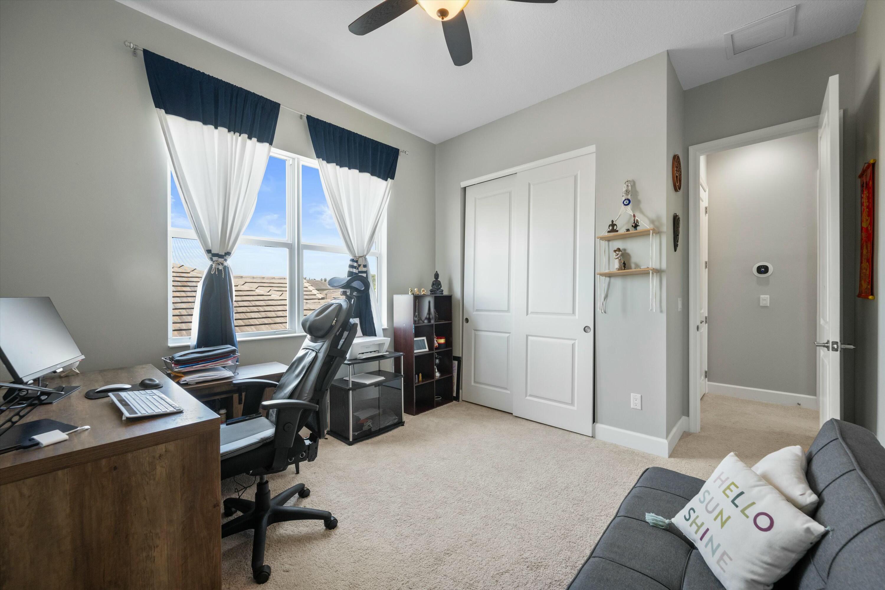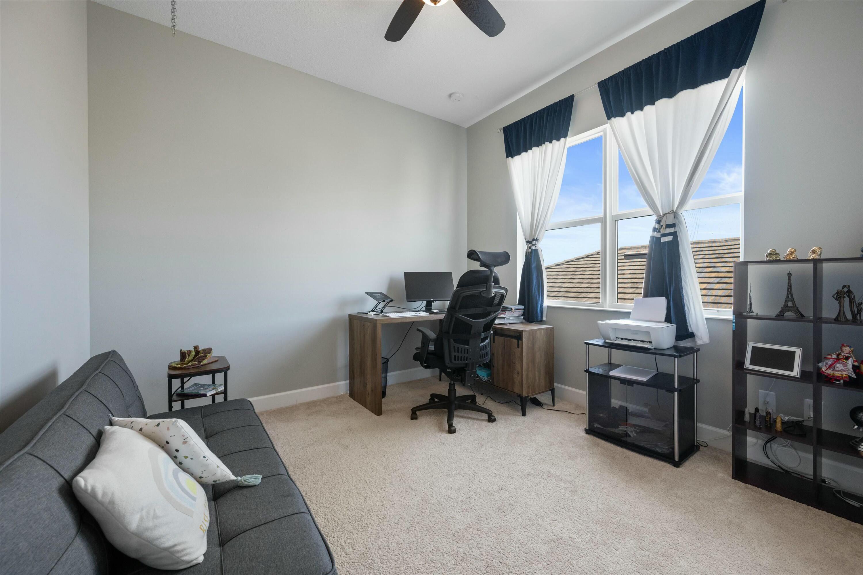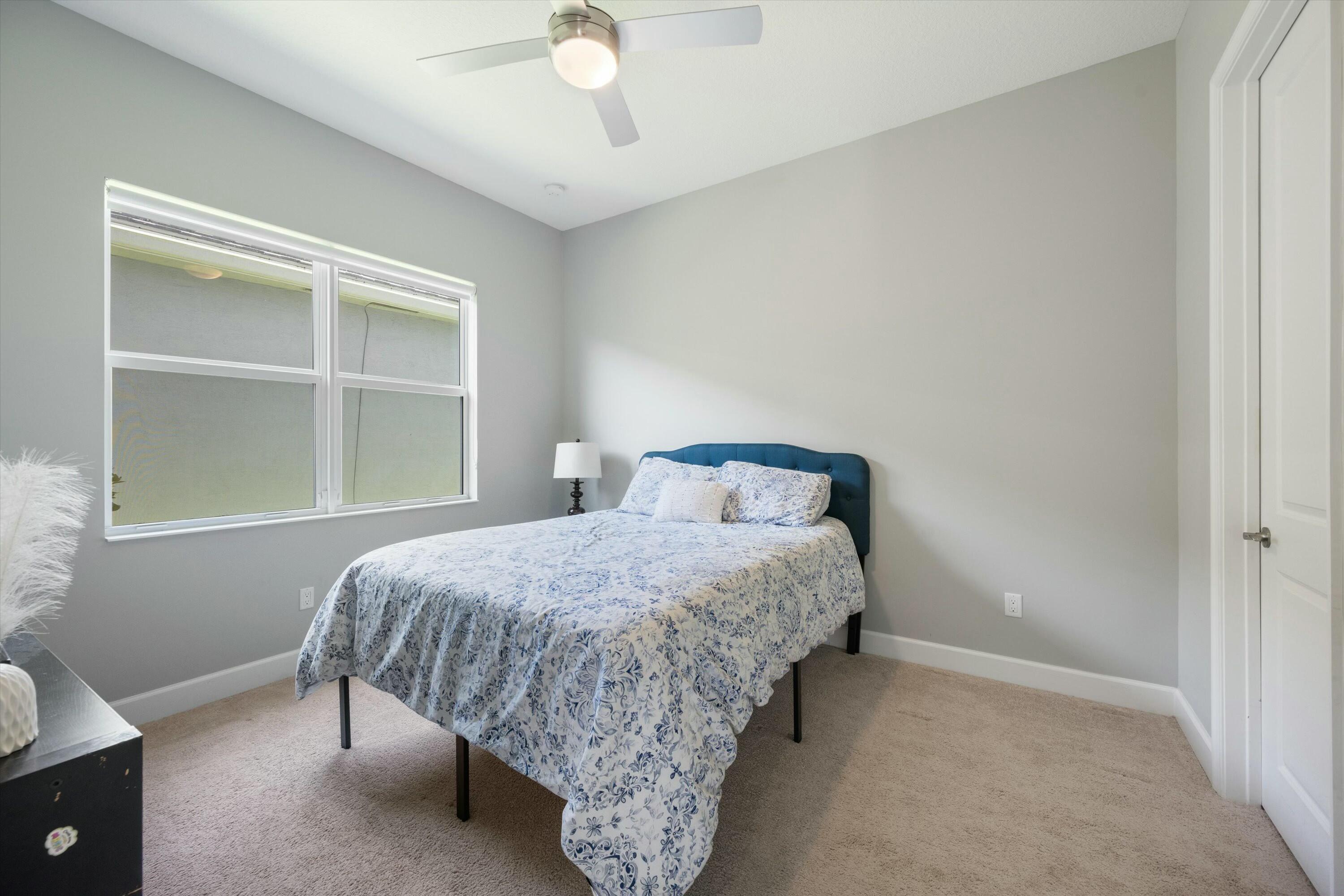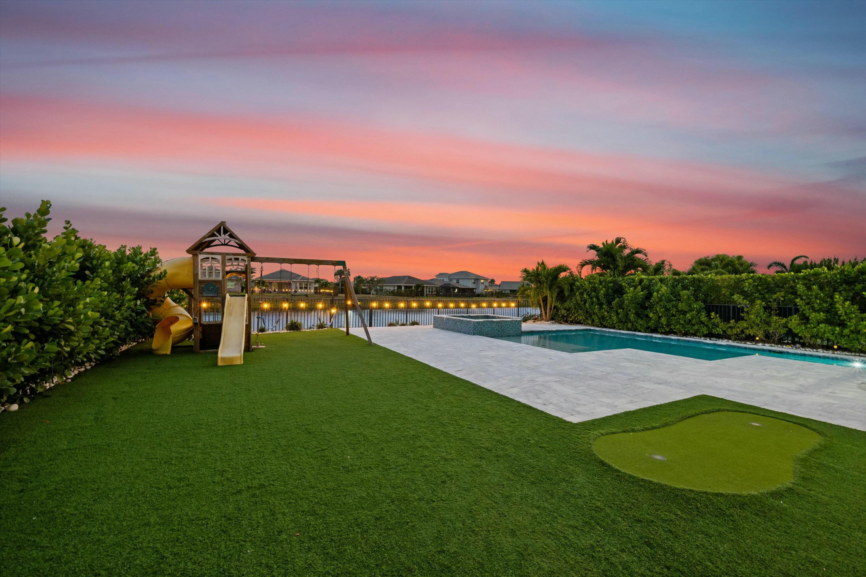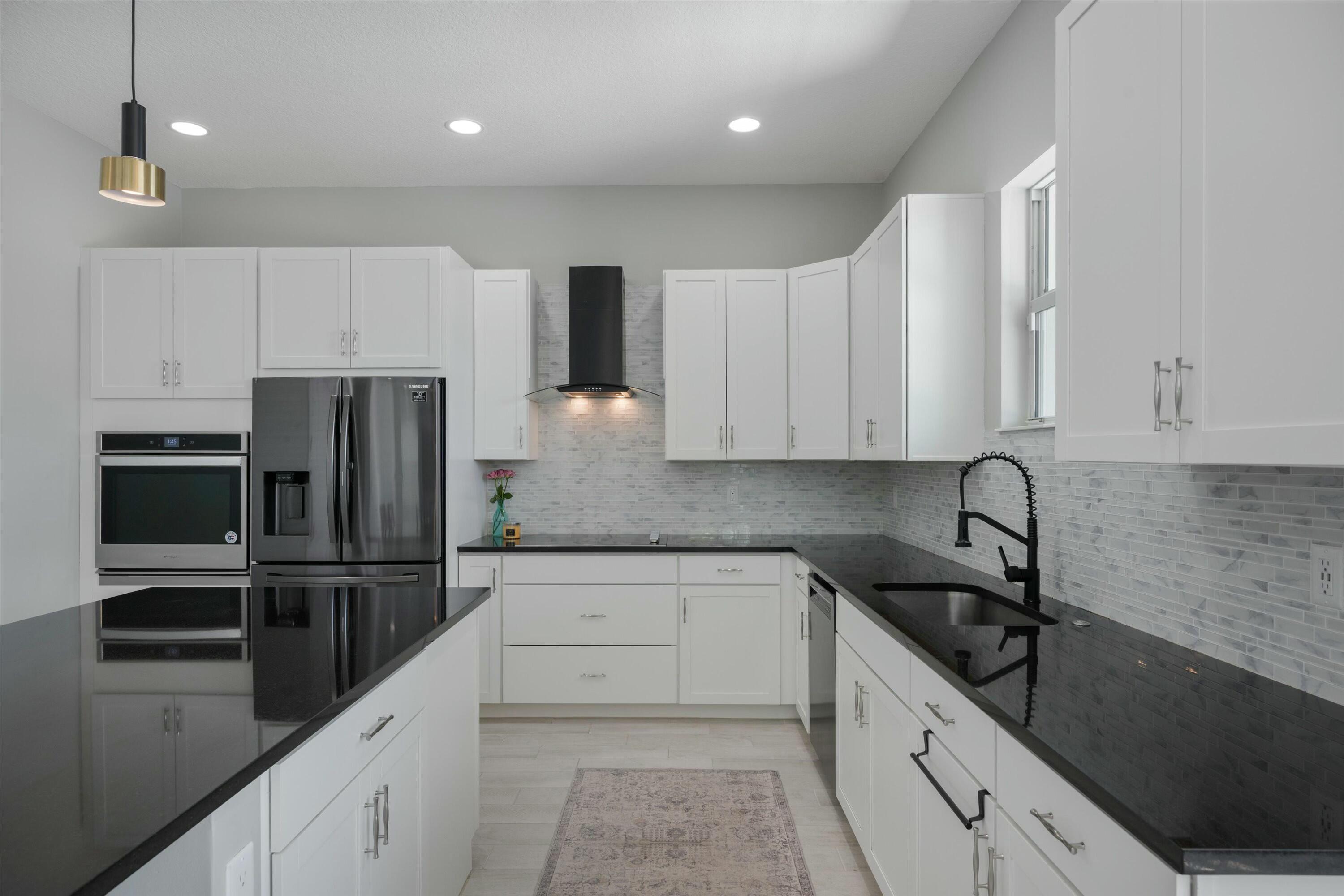 Experience luxury living in this stunning Laurel Model home, located in the prestigious Meadows community of Westlake, FL. This 5-bedroom, 3-bathroom, 2-story residence boasts impact windows throughout, ensuring safety and energy efficiency,complemented by 33 solar panels for exceptional sustainability and reduced energy costs. With 3,071 sq. ft. of living space, a 3-car garage, and a salted and heated pool and spa, this home offers an unparalleled blend of elegance and functionality. The backyard was meticulously designed to ensure maximum yard space, outdoor kitchen and still plenty of yard space for entertaining and playing.As you step inside, you're greeted by soaring ceilings, sleek porcelain tile flooring, and custom designer finishes. The heart of the home is the gourmet kitchen, which showcases black quartz countertops, white shaker-style cabinetry, and a striking marble mosaic backsplash. The oversized island with additional seating is perfect for entertaining, while modern pendant lighting enhances the space. Additional upgrades include a hood exhaust, upgraded refrigerator and dishwasher, and a hidden bookshelf door leading to a spacious pantry. The open-concept living area is anchored by a stunning faux feature wall with a built-in electric fireplace and TV, adding warmth and sophistication. Expansive sliding glass doors lead to the resort-style backyard, creating the ideal indoor-outdoor living experience. The sprawling master suite is a true retreat, complete with a separate sitting area, plush carpeting, and private access to the premium covered balcony overlooking the serene water views. The spa-inspired en-suite bathroom boasts dual granite vanities, espresso-toned cabinetry, a deep soaking tub, and a frameless glass-enclosed shower with floor-to-ceiling tiles. The massive walk-in closet provides ample storage. The additional bedrooms feature carpeted flooring and generous closet space, with one bedroom offering an en-suite bathroom. Step outside to the fully fenced backyard oasis, featuring approximately 1,000 sq. ft. of lush artificial turf, a playground, and stunning landscape enhancements such as backyard clusias, a palm tree, a critter fence, and white stone decor. Enjoy the salted and heated resort-style pool with a raised spa and sun shelf. The expansive travertine deck, stone pathway alongside the house, and breathtaking water views create an idyllic outdoor escape. The covered patio with a built-in gas fire pit and a spectacular custom outdoor kitchen, featuring an expensive infrared grill, custom U-shaped island with decor stones, multiple storage doors, drawer cabinet, sink provision, refrigerator, and bar area, makes outdoor dining a breeze. Additional highlights include concrete flooring between floors for noise reduction, garage floor epoxy, garage ceiling racks, ceiling fans, designer ceiling light fixtures, window shades, smart light switches, faux wall decors, solar panels (33 total), and a gas line. The laundry room boasts black granite counters, wood cabinetry, and a deep utility sink. Located in Westlake's premier community, The Meadows, residents enjoy resort-style amenities, parks, and top-rated schools. Don't miss this exceptional luxury homeschedule your private tour today!