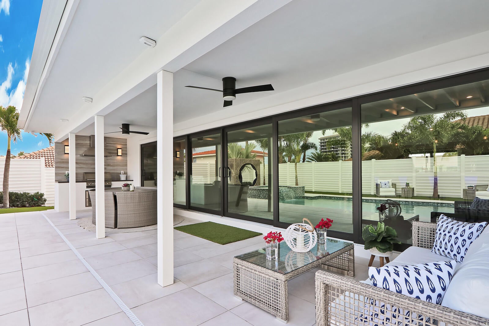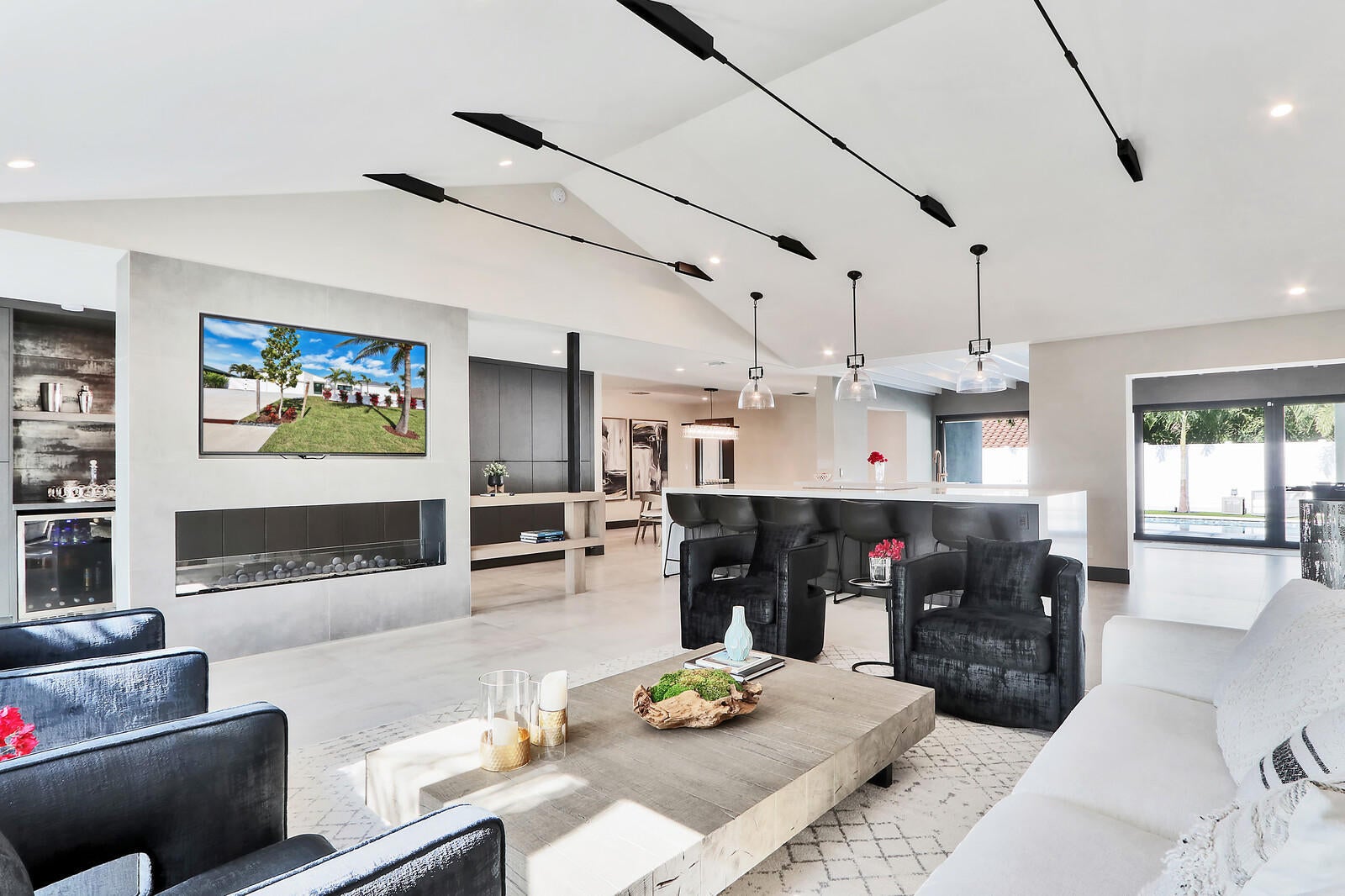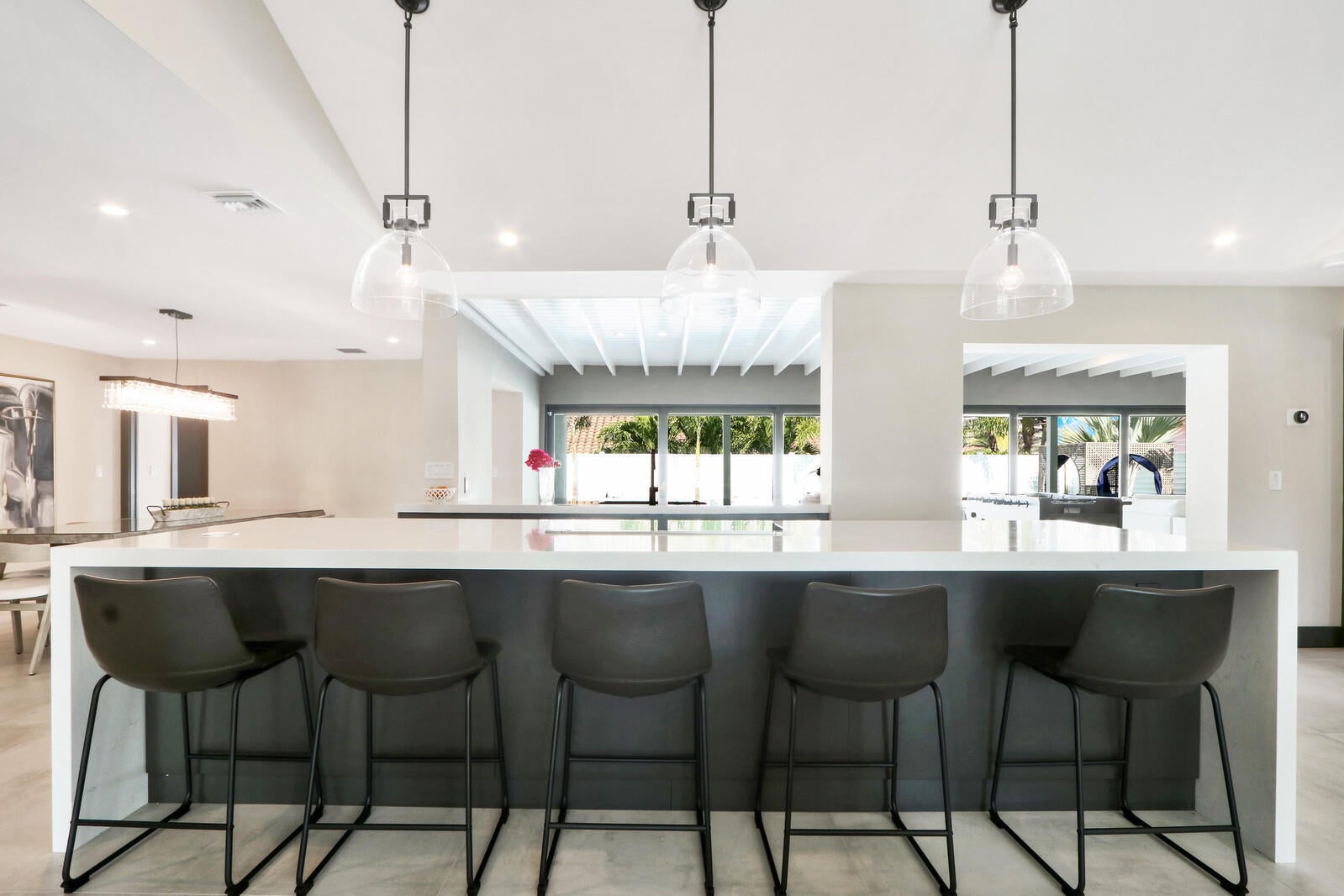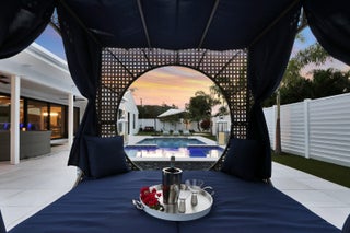 Welcome to your seaside retreat. Enjoy this professionally designed and decorated beachside paradise bringing the Northwest feel to the Juno seaside,.There is not a detail missed in this luxurious home.Sleeps 14, dining for 20. Restoration Hardware inspired decor throughout including furnishings, Italian imported porcelain concrete look flooring, and kitchen and bath appointments.The spacious and bright double living area is conducive to large gatherings featuring a double sided fireplace, entry wet bar and two separate bar top dining areas.. Entertainment room with 86'' tv and foosball table opens out into the fabulous covered outdoor living space. Kitchen features Thermadore Integrated appliances, quartz counter tops, ample custom cabinetry,printer/charger bar work station,built-in ovenand microwave and appliance pantry. Oversized master bedroom complete with walk in closet features black out window dressings for your perfect nights sleep and top of the line king size mattress with Premium W Hotel bedding. Awesome spa-like master bath has a glass enclosed wet room with soaking tub and rain shower with Kohler fixtures surrounded by special soft lighting. Enjoy the breezes off the Atlantic in your zen-like back yard with indoor/outdoor living areas complete with built in barbeque. Privacy is assured with clean white fencing surrounding palm tree lined tropically landscaped heated swimming pool and waterfall jacuzzi ,fire pit relaxation area and birds nest cabana, PUTTERS DREAM WITH 15X20 PUTTING GREEN DESIGNED WITH THE PROFESSIONAL GOLFER.IN MIND. You will be happy to come home to this hill top get away with an ocean view at your front door. Don't miss out! Reserve today. Six month minimum for 2025-2026 season. Off season and annual rates available.