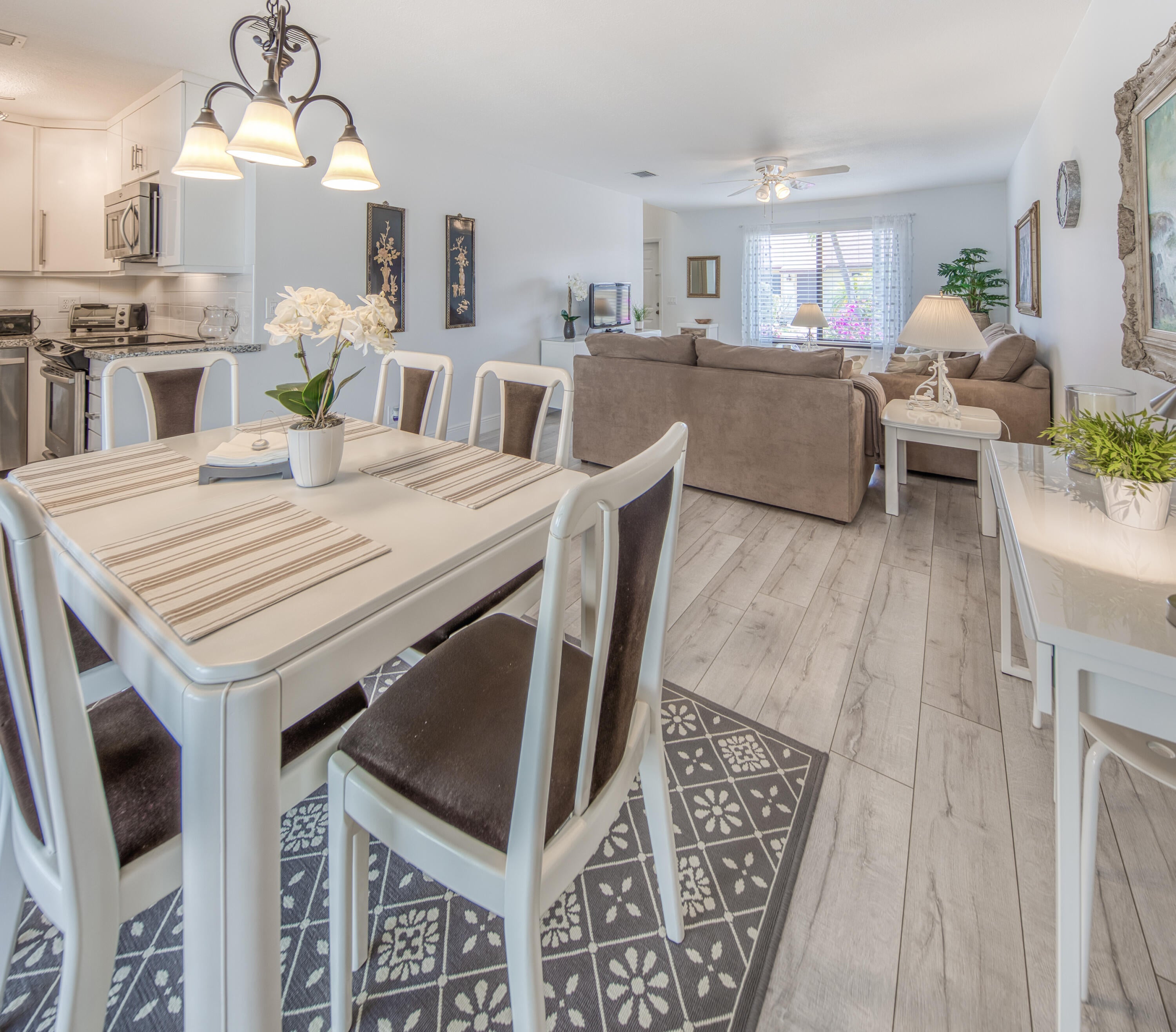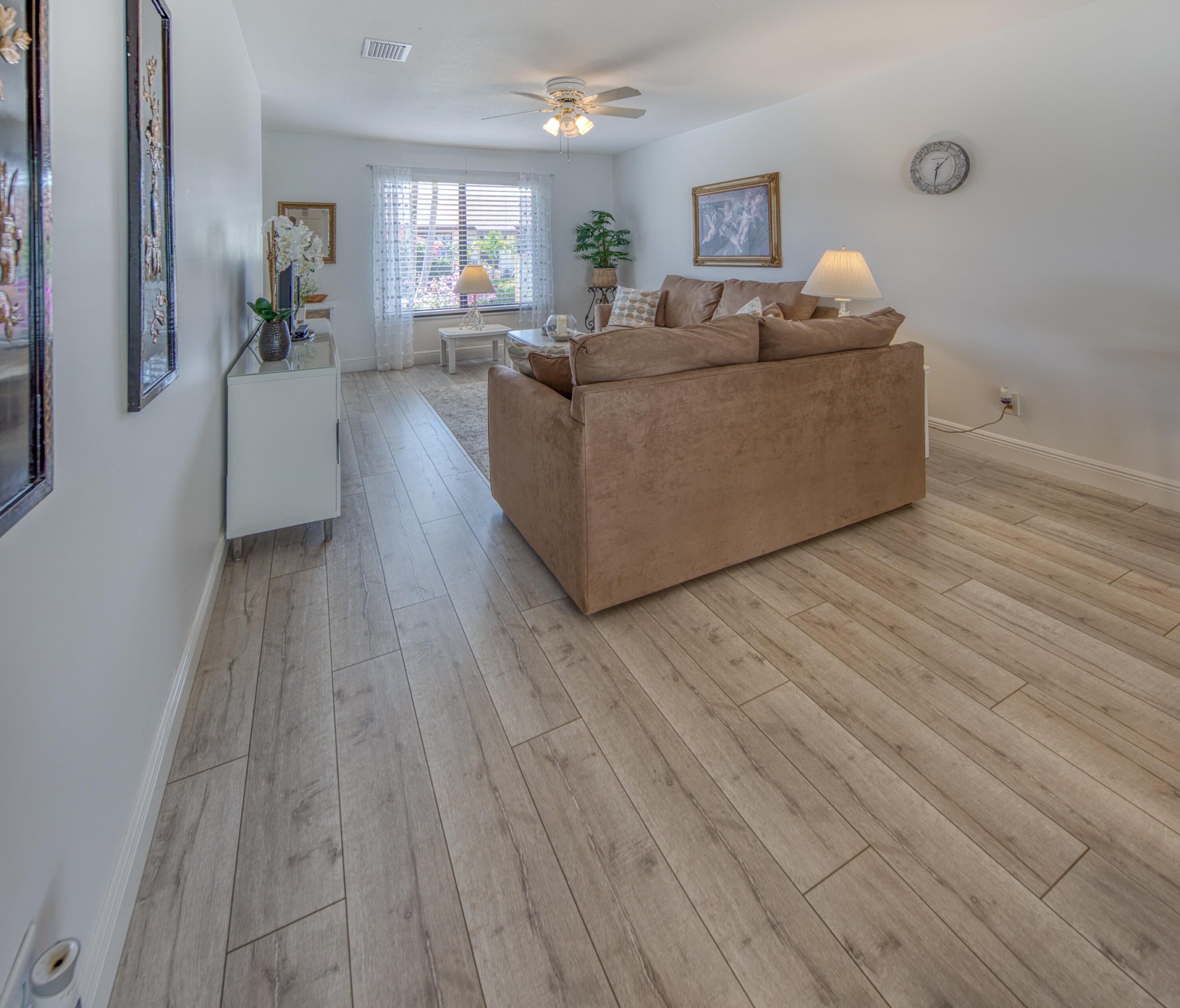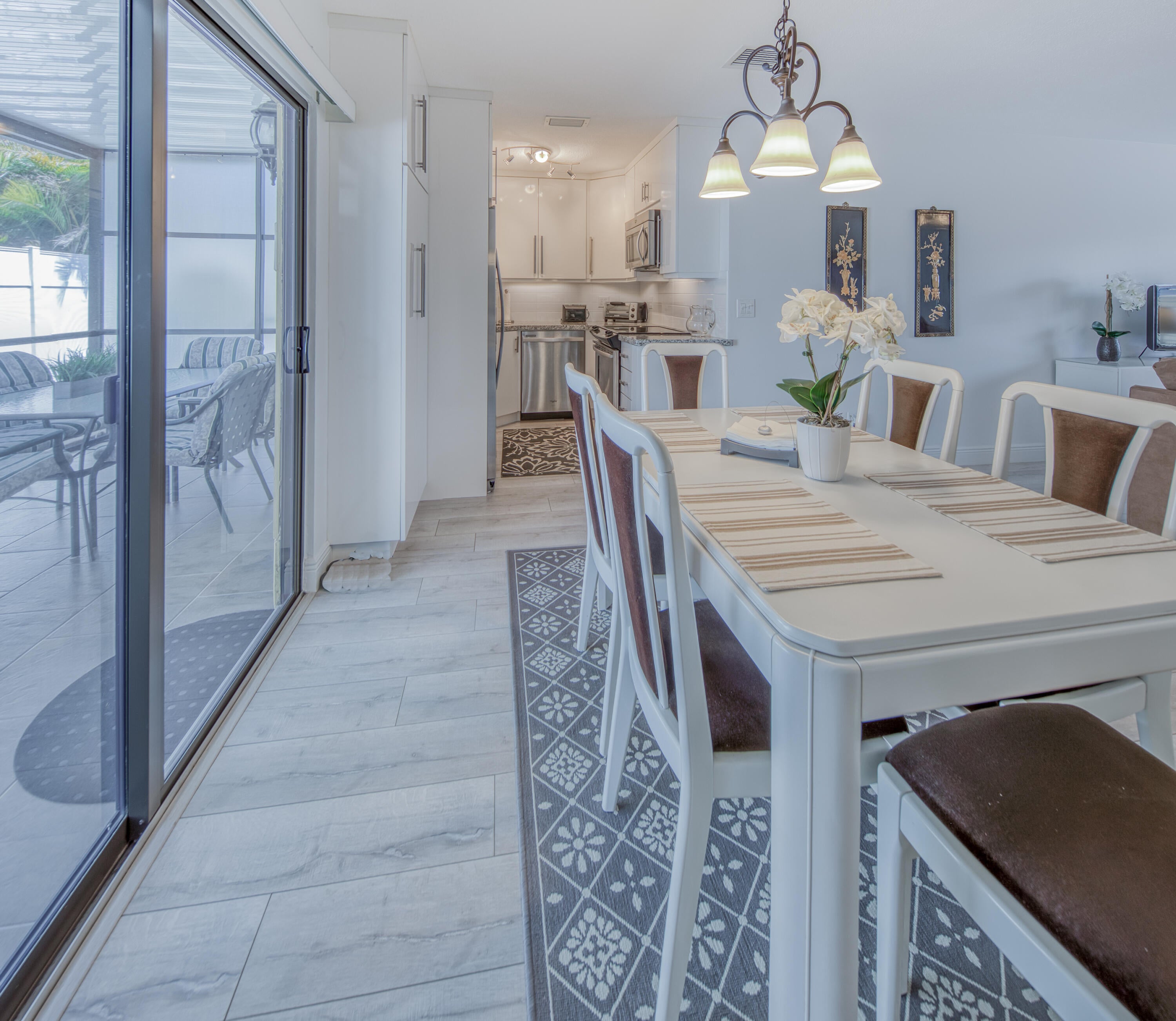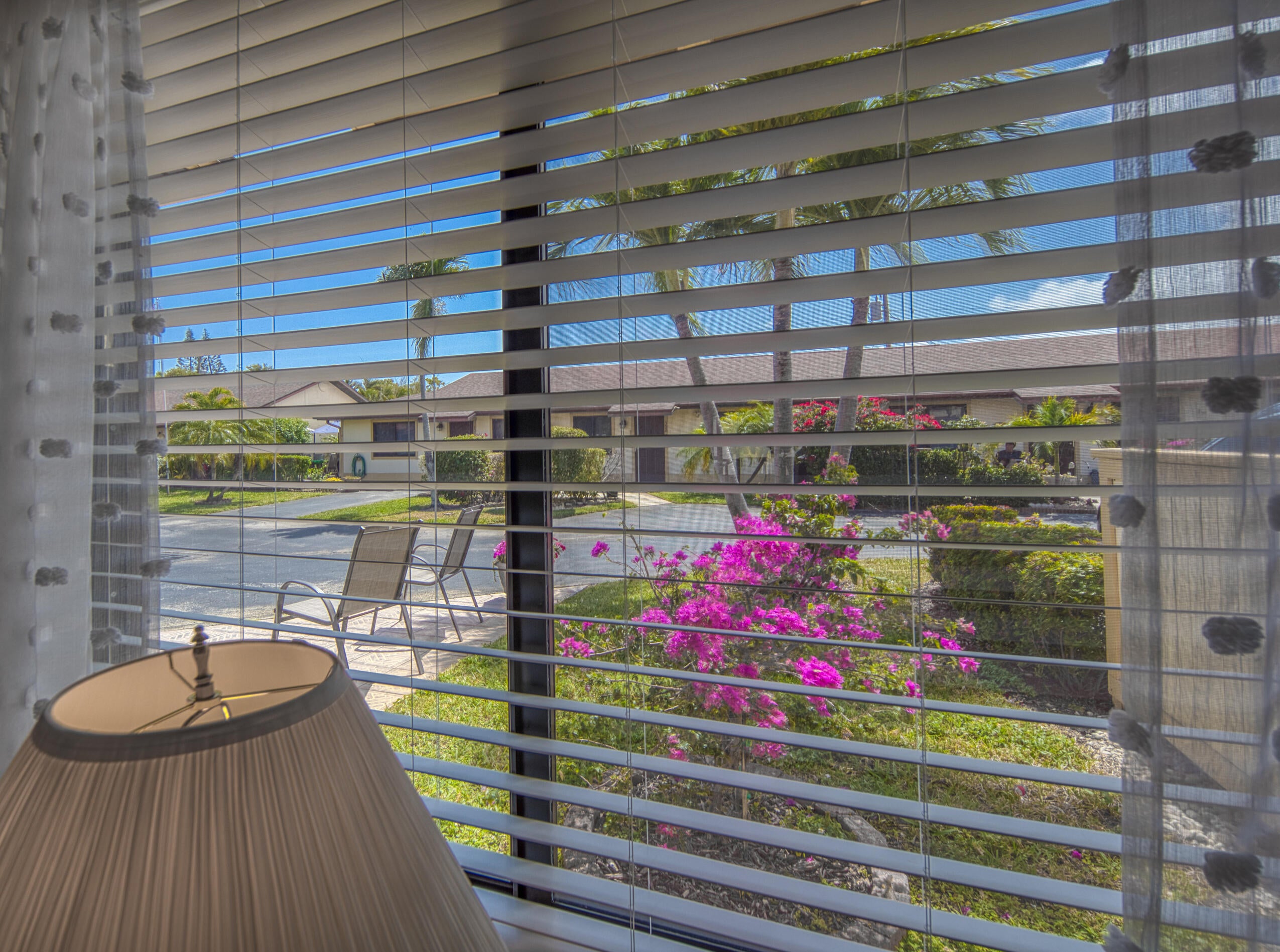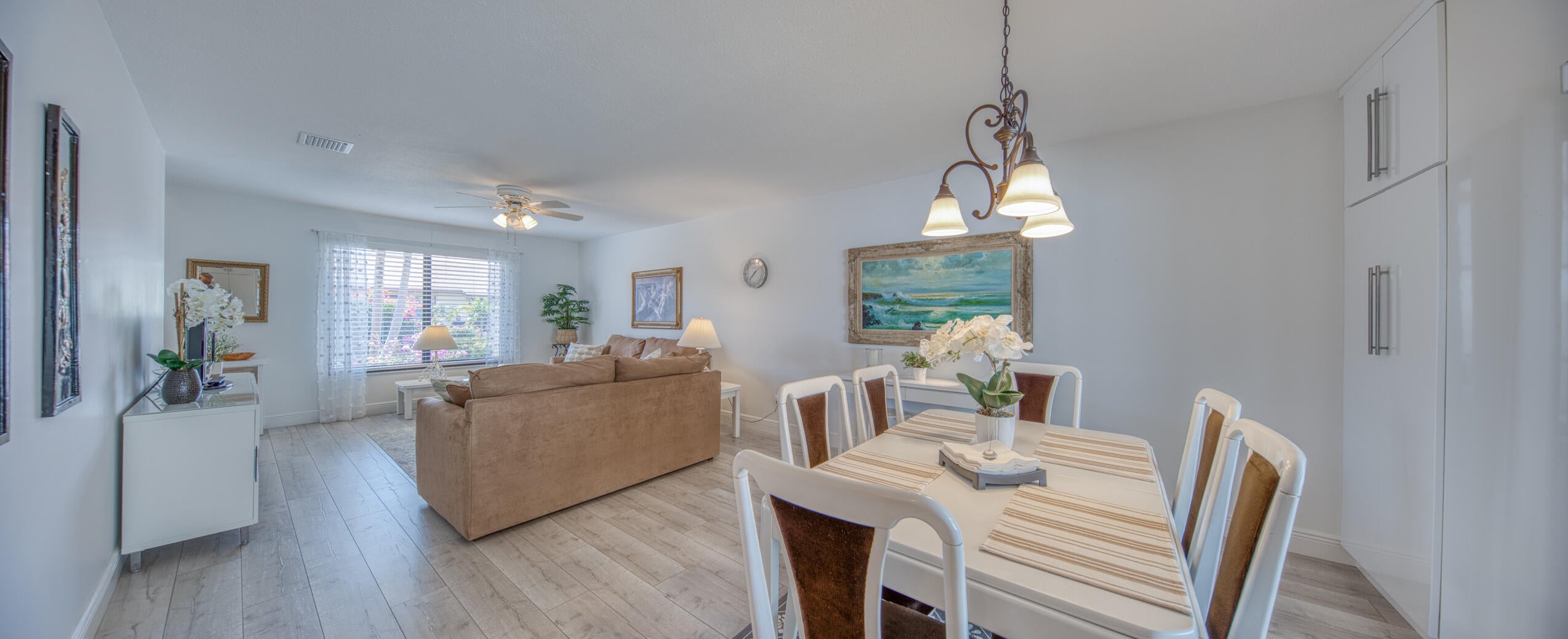 Your search is over! A rare opportunity to purchase a lovely home in this well-maintained and cozy townhouse complex. This end of building apartment has 2 BR and 1,5 BA and spacious living room and kitchen with sliding doors opening onto a good size covered patio. There is also a nice patio in front of the apartment. The ground floor was completely renovated in 2018 and upstairs master bathroom 2008. All impact windows. NEW ELECTRICAL PANEL 5/2025. Roof replaced 2024.AC unit about 3 years old. Nice swimming pool as well as community game room, laundry and small storage. Walking distance from Aldi and Publix. Close to the beaches. The apartment comes fully furnished. Welcome home!