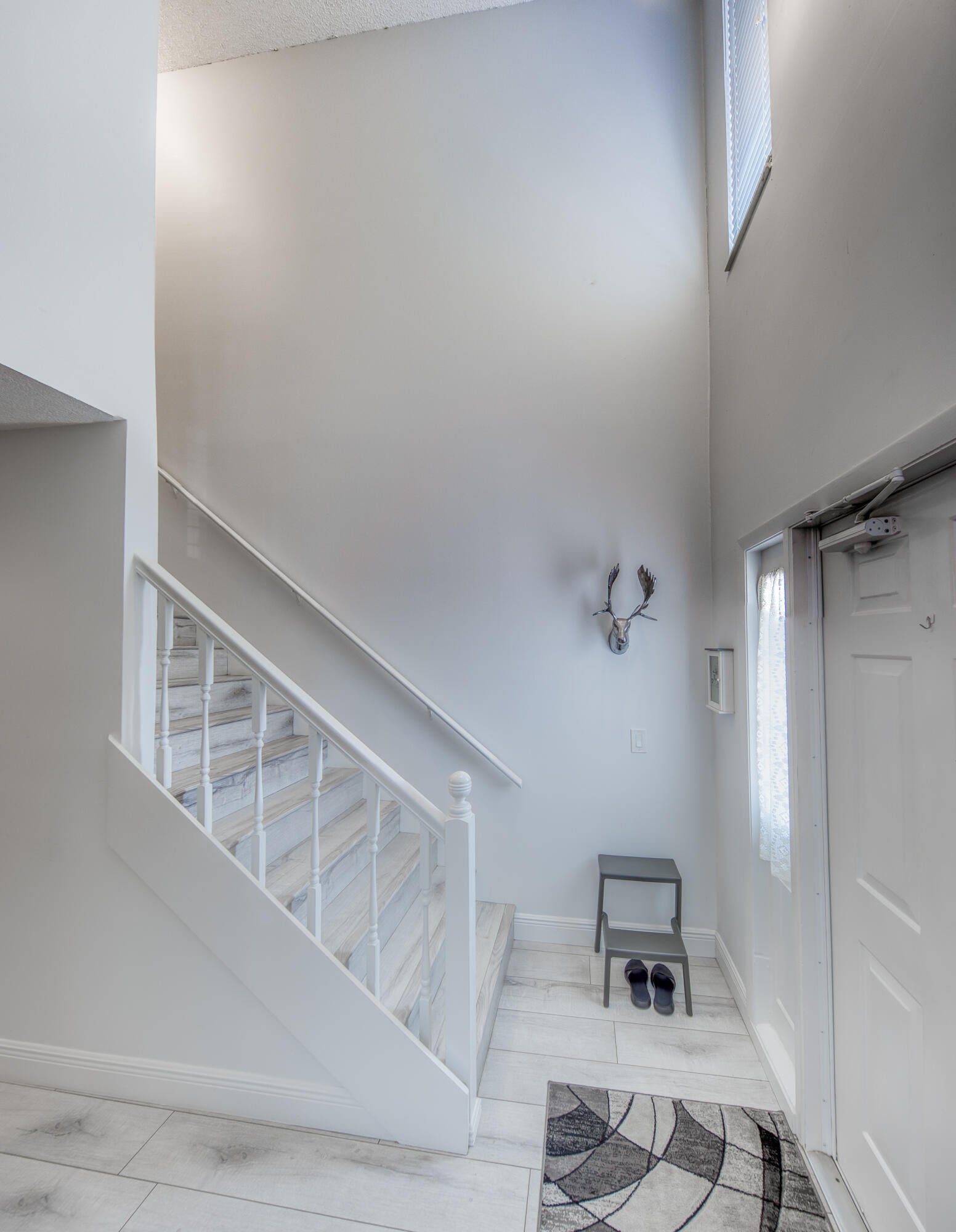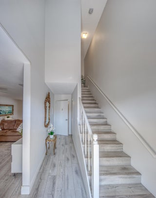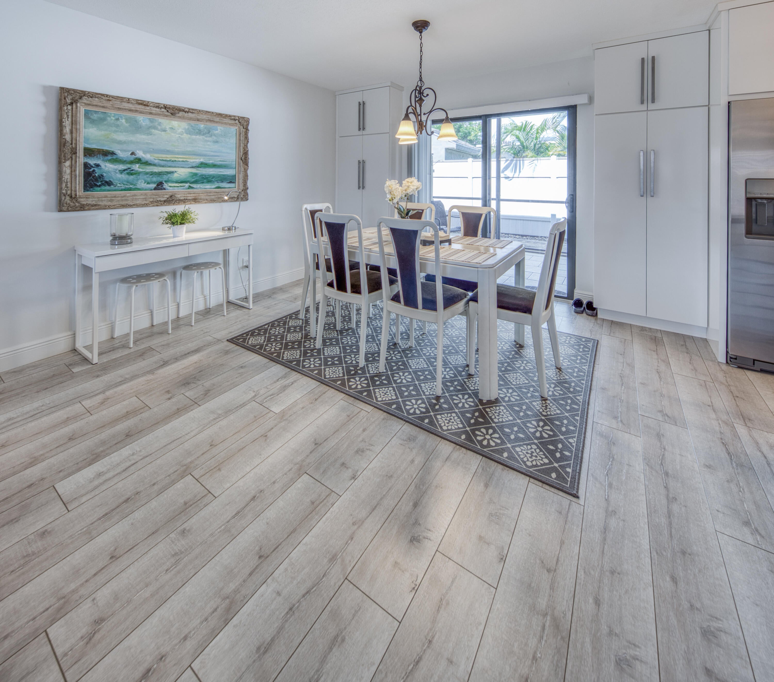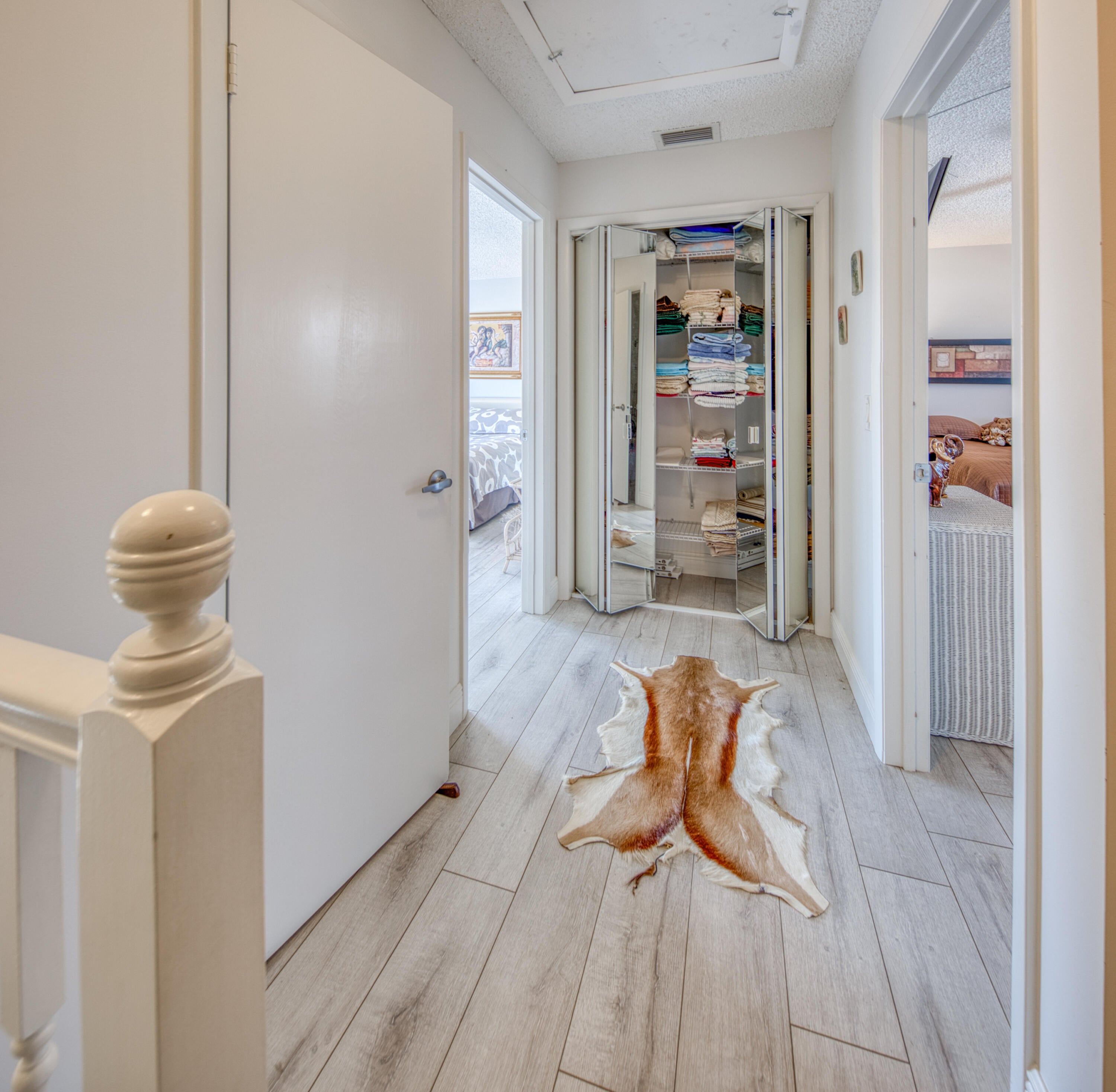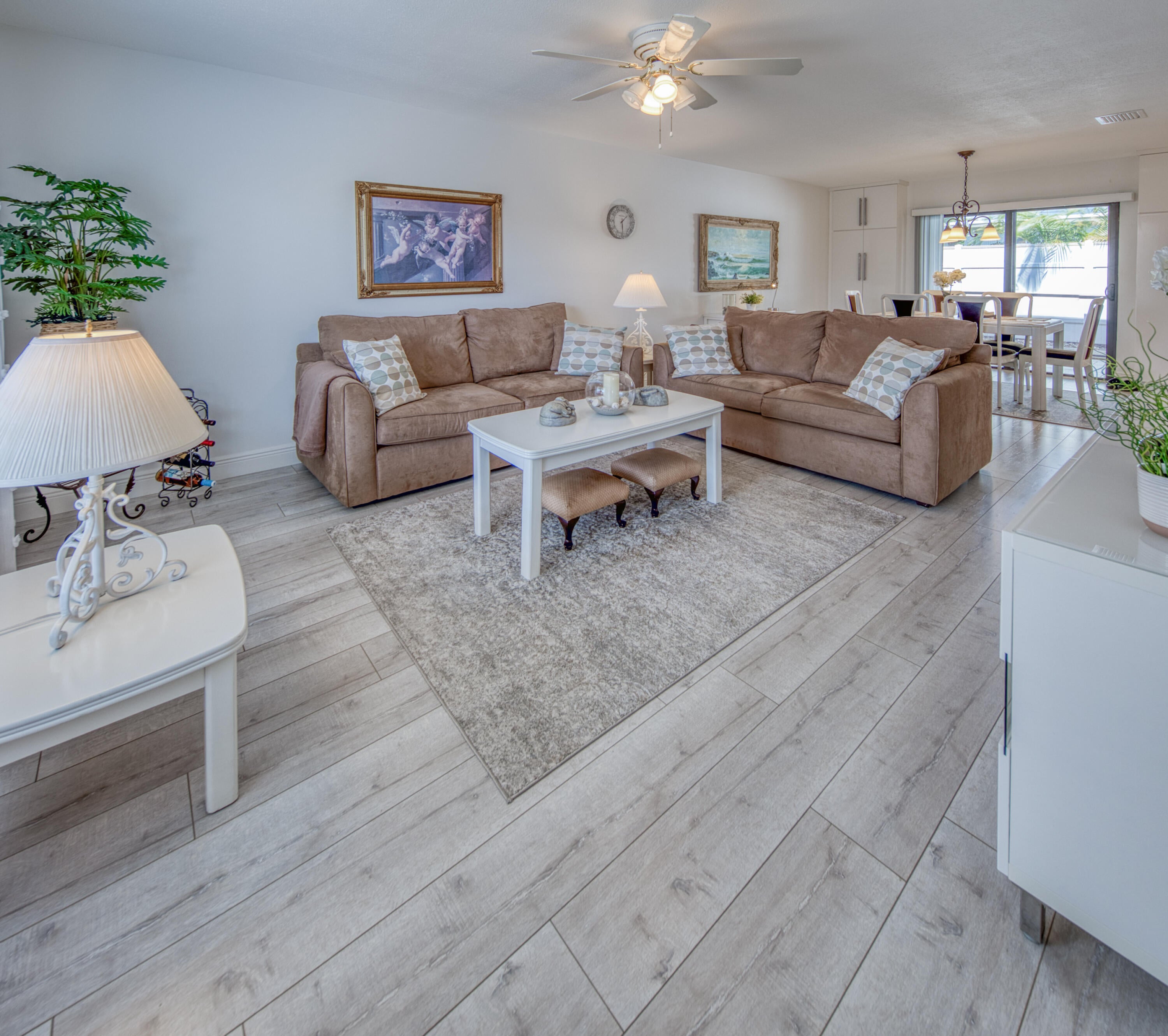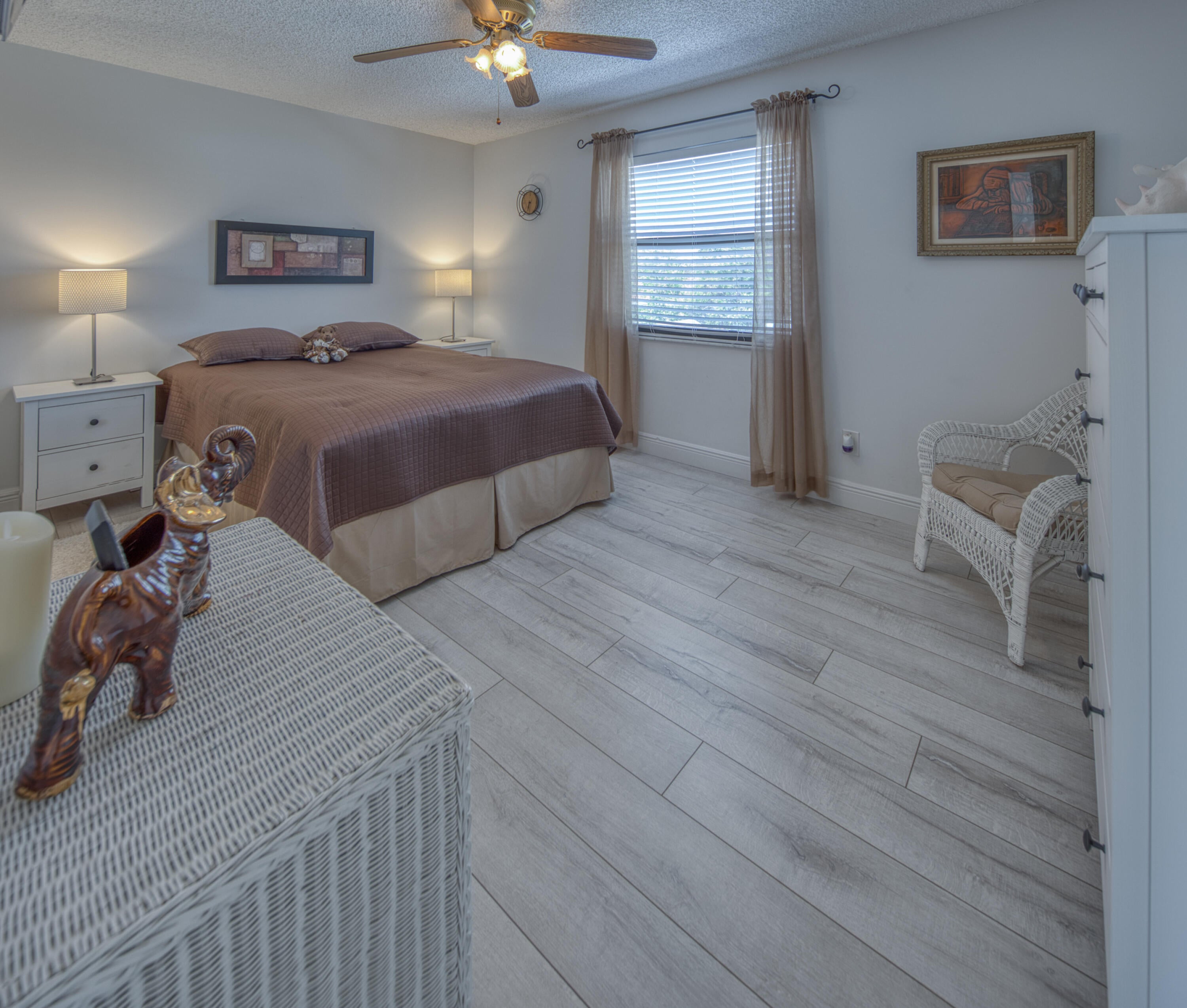 Your search is over! A rare opportunity to purchase a lovely home in this well-maintained and cozy townhouse complex. This end of building apartment has 2 BR and 1,5 BA and spacious living room and kitchen with sliding doors opening onto a good size covered patio. There is also a nice patio in front of the apartment. The ground floor was completely renovated in 2018 and upstairs master bathroom 2008. All impact windows. NEW ELECTRICAL PANEL 5/2025. Roof replaced 2024.AC unit about 3 years old. Nice swimming pool as well as community game room, laundry and small storage. Walking distance from Aldi and Publix. Close to the beaches. The apartment comes fully furnished. Welcome home!