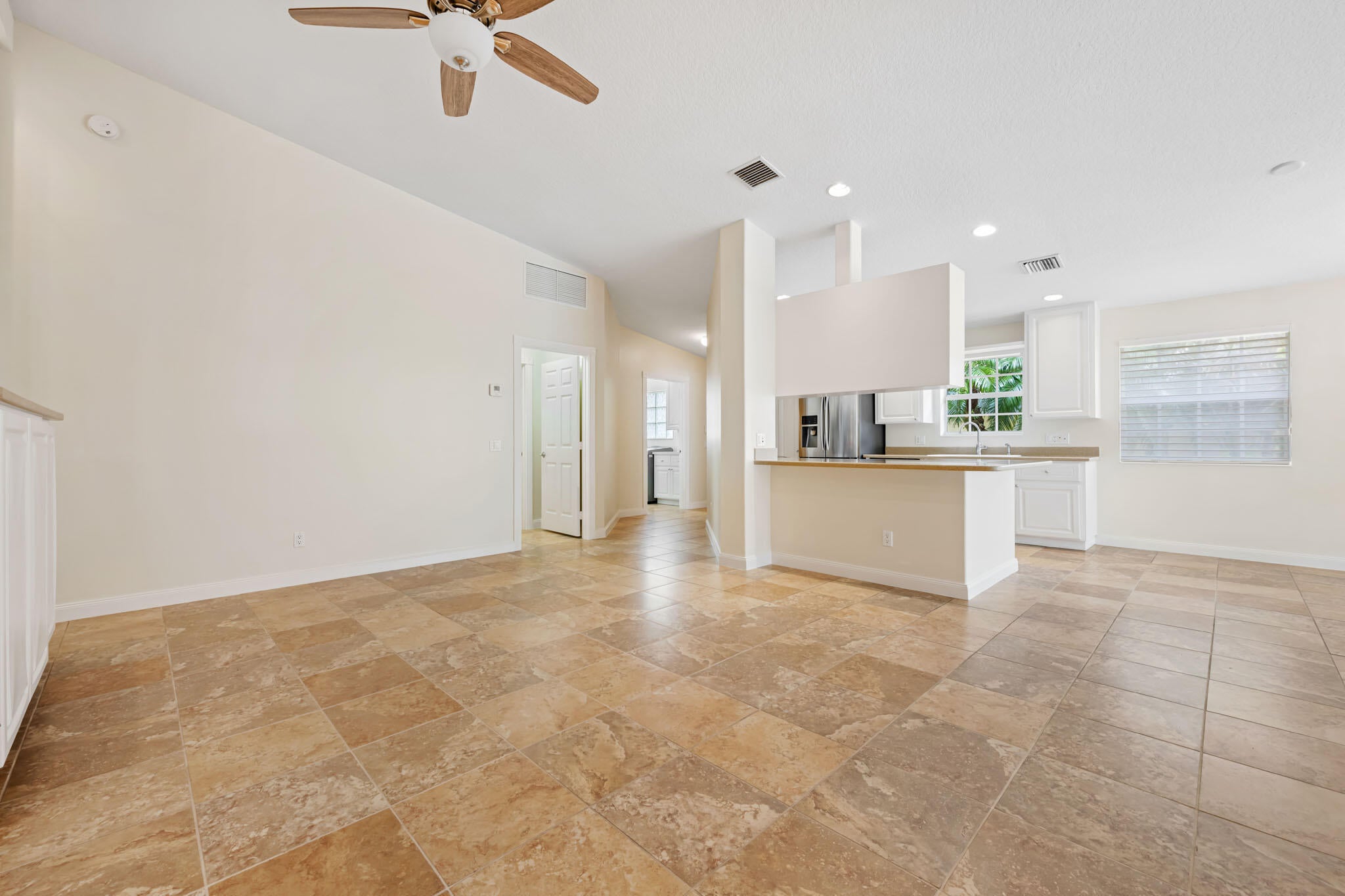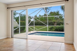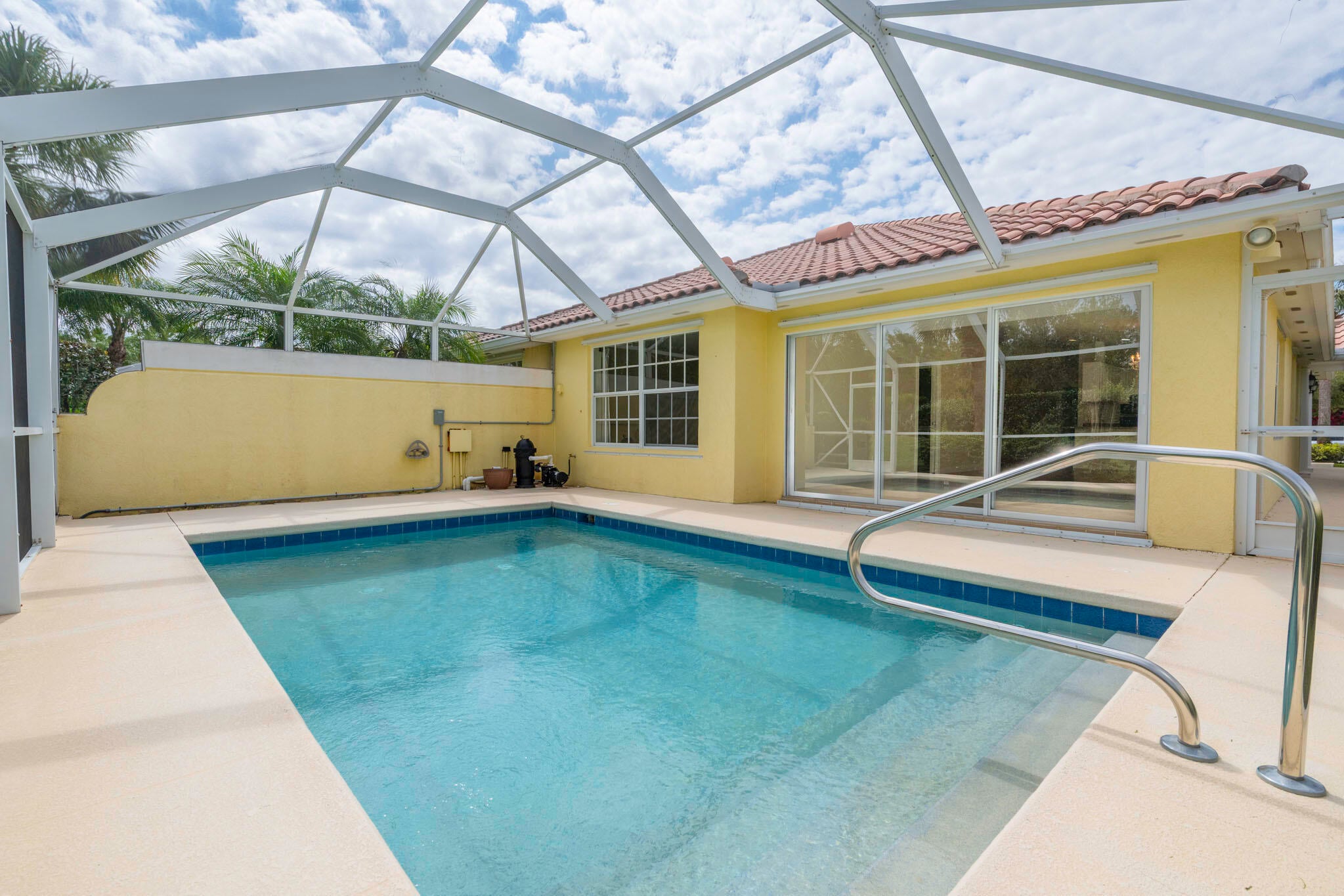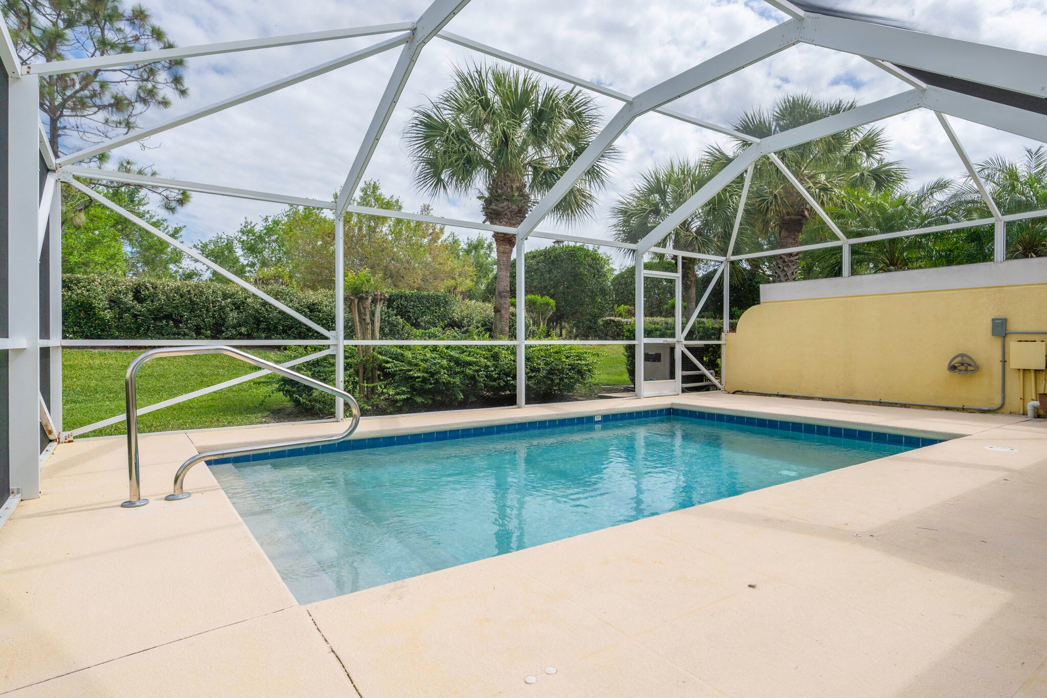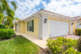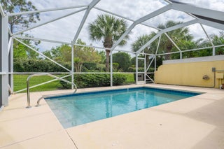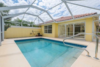 This extended floor plan villa offers 1,680 sq ft of spacious living! Located on a quiet cul-de-sac street within an all-ages community, this home is a short walk to the clubhouse to enjoy all the amenities offered! The immaculately kept villa has an open floor plan with plenty of natural light, and the kitchen features stainless steel appliances, and a new large composite sink and faucet. New cabinet doors coming for the great room and kitchen! The triple sliding glass doors lead to a private backyard with a screened-in heated pool, and freshly painted patio and sidewalk! The new AC system was installed in 2024, ensuring comfort during the warmer months! Other updates include replaced washer/dryer and water heater. The generously sized bedrooms both have spacious walkin closets and ensuien-suite bathrooms, providing a peaceful, private retreat. The property backs up to a landscaped berm and on the other side is a road that ends at a closed gate so is a great place to take a walk in peace and quiet. This is a vibrant, amenity-rich community that includes: pickleball, tennis, 2 heated pools, gym, bocce, basketball, playground, and a clubhouse with many social activities. The HOA fees cover internet, cable, landscaping, security, and exterior painting, so you can enjoy a low-maintenance lifestyle.