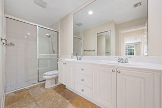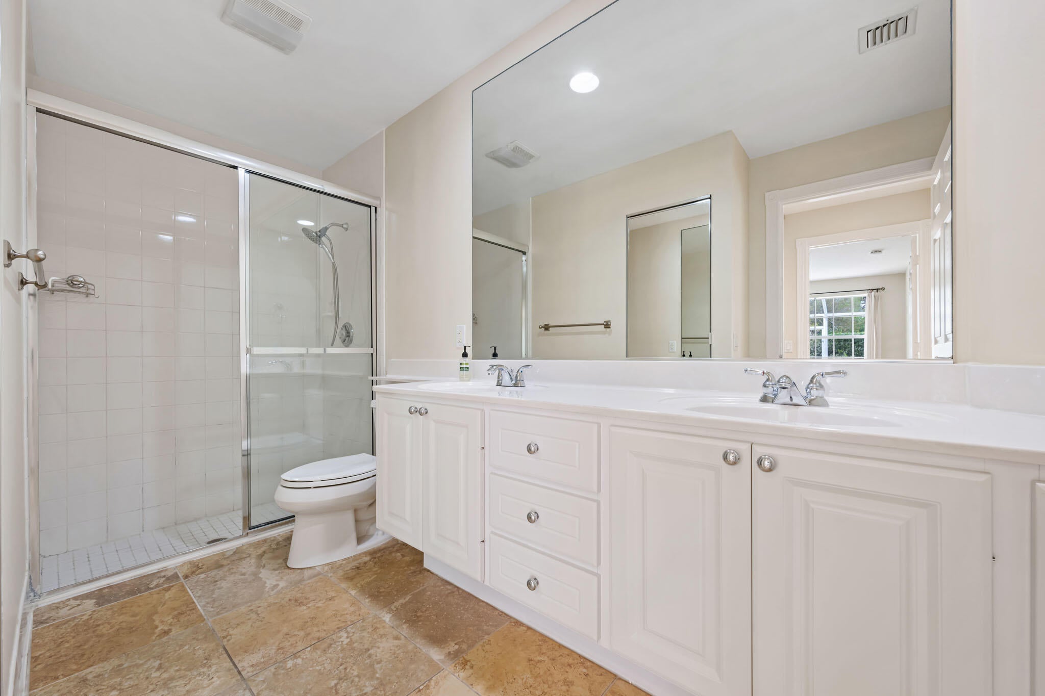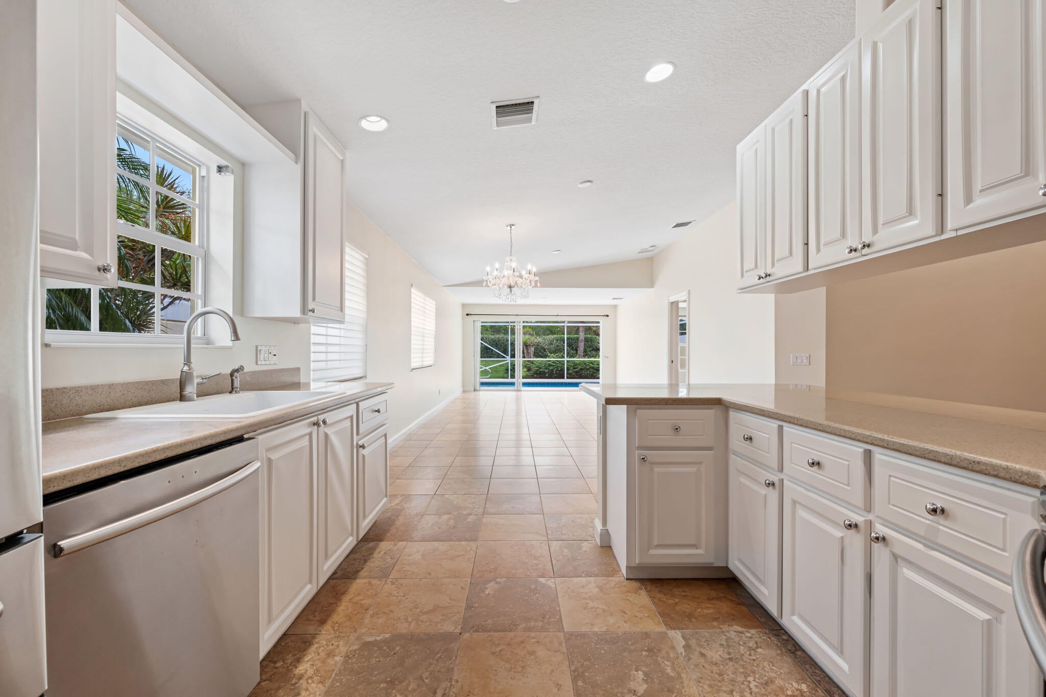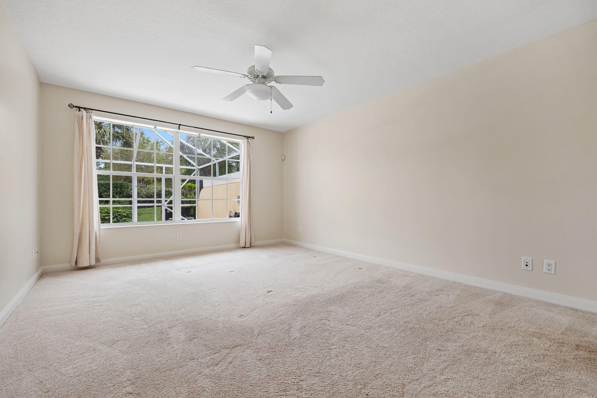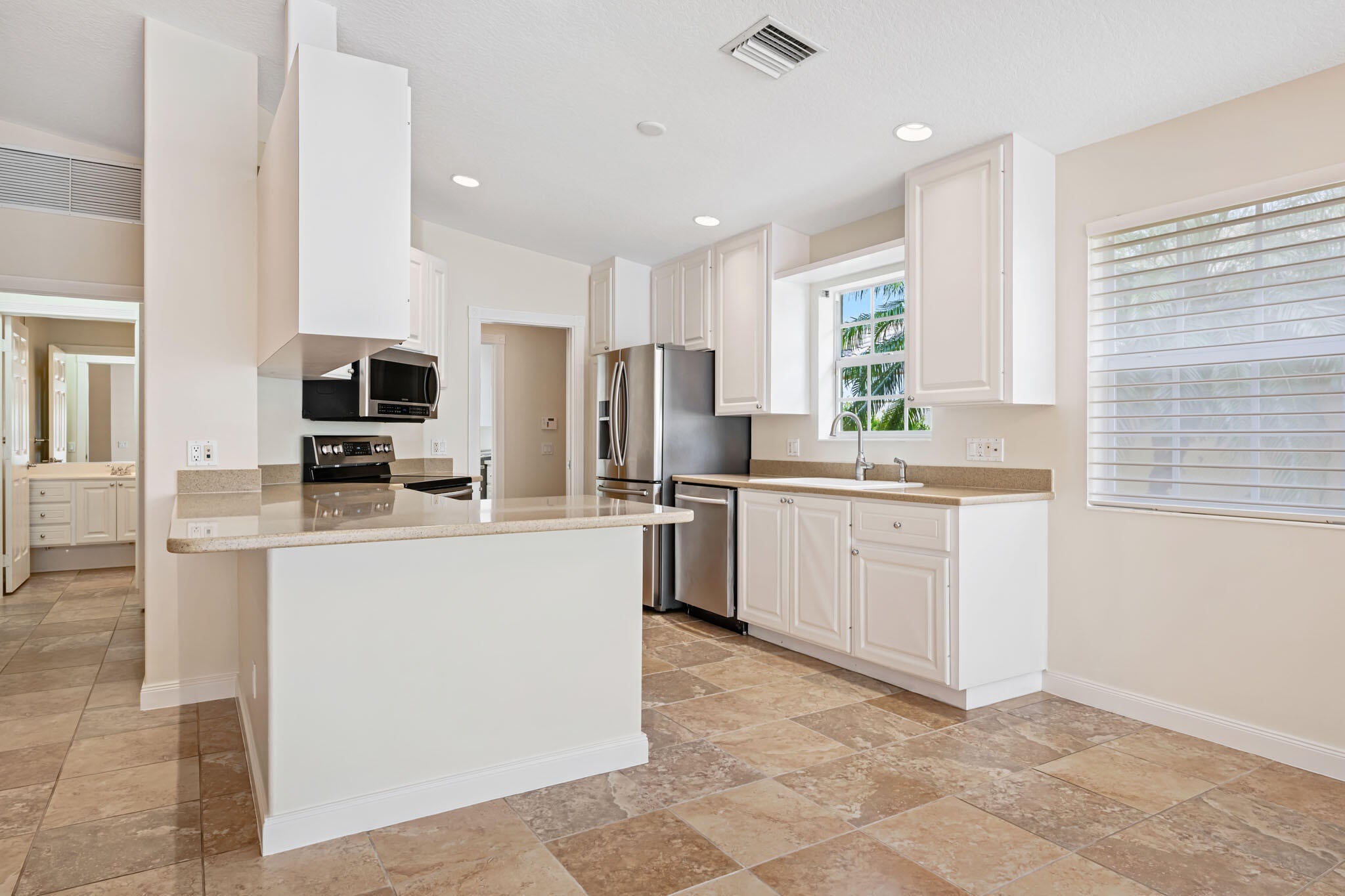 This extended floor plan villa offers 1,680 sq ft of spacious living! Located on a quiet cul-de-sac street within an all-ages community, this home is a short walk to the clubhouse to enjoy all the amenities offered! The immaculately kept villa has an open floor plan with plenty of natural light, and the kitchen features stainless steel appliances, and a new large composite sink and faucet. New cabinet doors coming for the great room and kitchen! The triple sliding glass doors lead to a private backyard with a screened-in heated pool, and freshly painted patio and sidewalk! The new AC system was installed in 2024, ensuring comfort during the warmer months! Other updates include replaced washer/dryer and water heater. The generously sized bedrooms both have spacious walkin closets and ensuien-suite bathrooms, providing a peaceful, private retreat. The property backs up to a landscaped berm and on the other side is a road that ends at a closed gate so is a great place to take a walk in peace and quiet. This is a vibrant, amenity-rich community that includes: pickleball, tennis, 2 heated pools, gym, bocce, basketball, playground, and a clubhouse with many social activities. The HOA fees cover internet, cable, landscaping, security, and exterior painting, so you can enjoy a low-maintenance lifestyle.